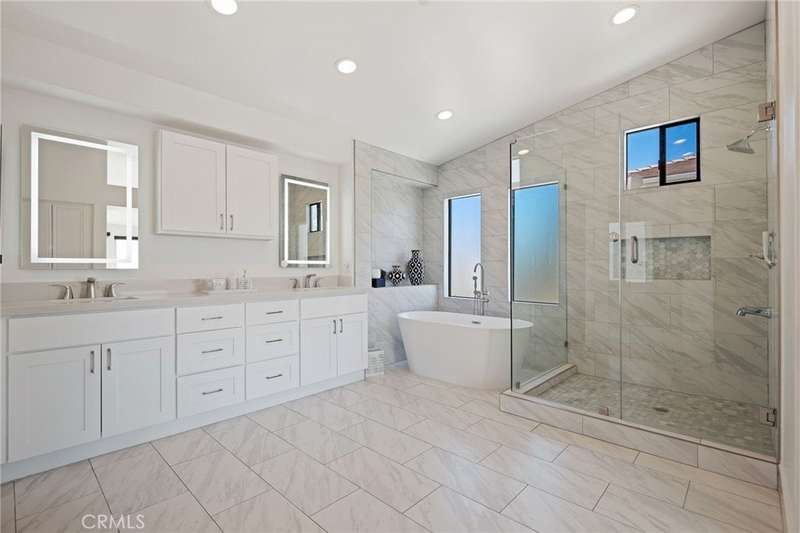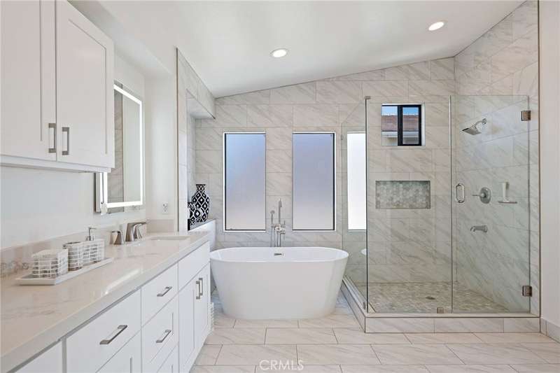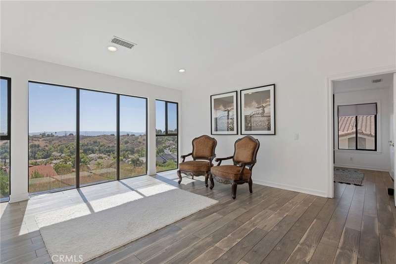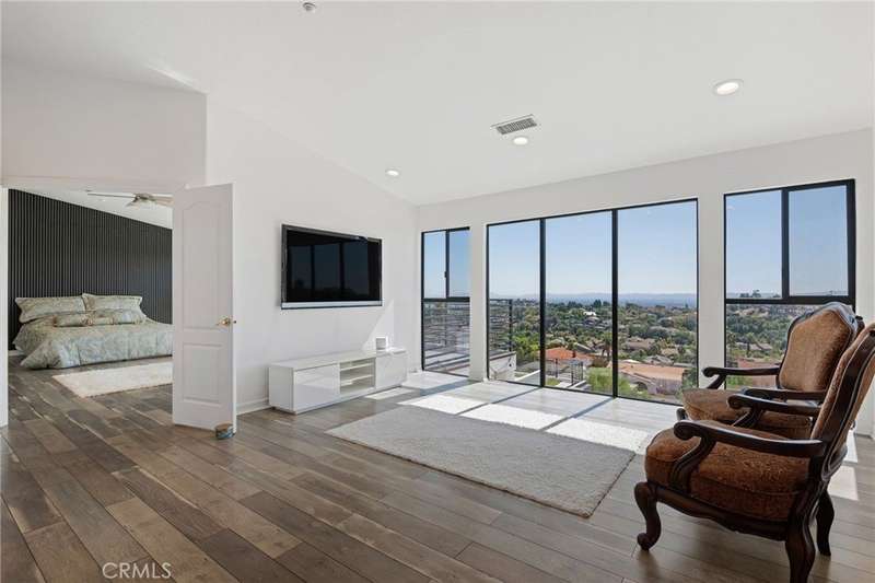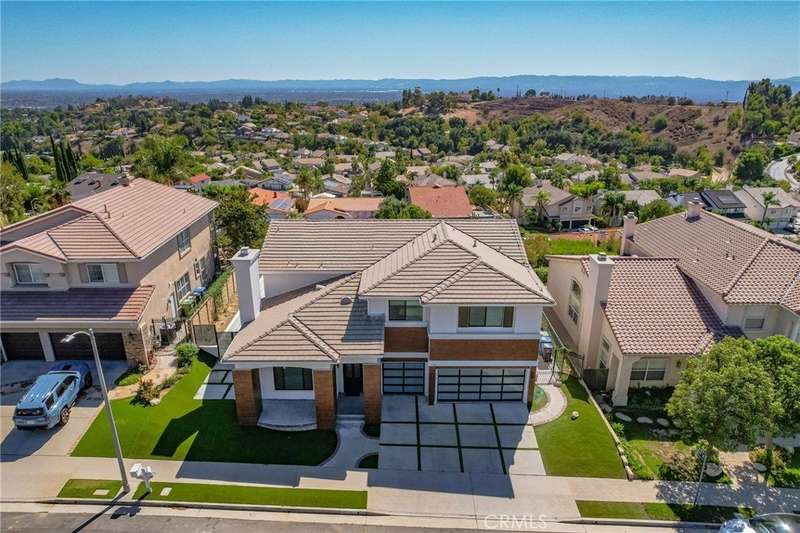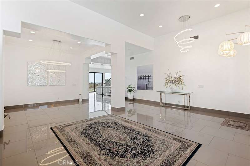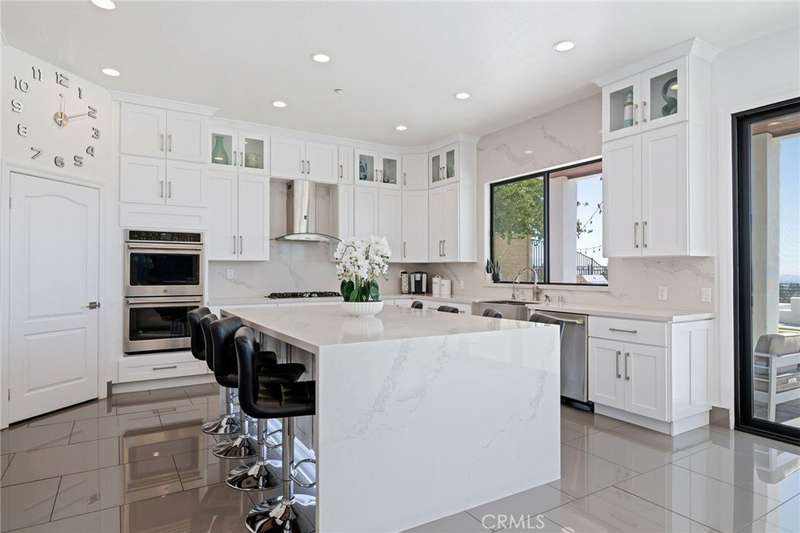 Masterpiece of Modern Luxury and Timeless Elegance! Step into a world of refined sophistication and breathtaking beauty at this exquisitely remodeled estate, perfectly situated to capture panoramic views of the San Fernando Valley and beyond. From the moment you enter through the custom front door, the grand entrance sets the tone for the luxury that awaits. The opulent living room greets you with custom stone flooring and a striking stone fireplace, offering a warm and elegant ambiance. Adjacent, the formal dining room seamlessly connects for effortless entertaining, making every gathering a special occasion. At the heart of the home lies a true chef’s kitchen – a culinary dream outfitted with top-of-the-line stainless steel appliances, double ovens, a built-in microwave, and quartz countertops with a waterfall edge. The oversized island is ideal for casual dining or hosting, while a walk-in pantry and window showcasing mountain and city light views complete the space. The spacious family room features soaring ceilings, recessed lighting, and a custom stone accent wall with a built-in fireplace. A sleek custom slider opens to your private backyard oasis, blurring the line between indoor and outdoor living. On the main level, a full bathroom with a custom shower adds both convenience and luxury. Ascend the custom wood staircase, accented by a stunning marble wall, to discover the primary suite – a true sanctuary. Enjoy your own private balcony with sweeping, floor-to-ceiling views of the valley and city below. The spa-inspired en-suite bathroom has been fully reimagined with a soaking tub, luxurious stone finishes, and a serene atmosphere perfect for unwinding. The upper level also offers an expansive loft with uninterrupted panoramic views, ideal for a media space, home office, or additional lounge. A downstairs indoor laundry room and energy-efficient solar panels add practical comfort to the home’s abundant style. Show-stopping backyard is an entertainer’s dream. Dive into the custom infinity pool and spa, gather around the fire pit, or prepare a meal in the custom outdoor kitchen. Multiple sitting areas, additional fire features, and lush landscaping complete this ultimate resort-style retreat. This home is a private escape where luxury, design, and natural beauty converge. Experience the pinnacle of Southern California living in this one-of-a-kind estate that delivers elegance, comfort, and unmatched views in every direction.