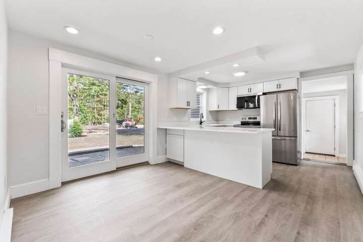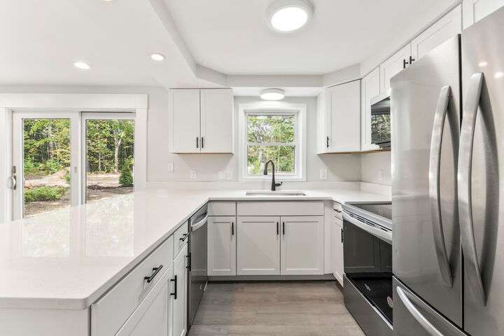 * Seller concessions being offered! Reach out today for more info! Outstanding 4-bedroom 2 bath Cape with large direct entry 2 garage. Ideally located, in-town and within walking distance or short bike ride to most area amenities. Newly renovated to include a highly efficient 4 head heat pump system. This system provides both heating and cooling. Electrical service is provided by Kennebunk Light & Power, so it'll be extremely cost effective to run these even in the coldest of days. Brand new kitchen with quartz counters, white shaker cabinets, and stainless-steel appliances. Flooring has been replaced with vinyl planks in the common areas, carpet in the bedrooms, and tile in the bathrooms. Freshly painted throughout to include the doors and trim. This newly renovated home is in a small cozy new subdivision with architecturally pleasing homes, streetlights, and sidewalks. To complete this outstanding property, the landscaping was replaced and upgraded to include new trees, fencing, and shrubs. It also has an expansive natural stone patio perfect for that early morning coffee time or late afternoon grilling. The driveway was just upgraded and paved to include the front door walkway. As an added bonus, it's on public water and sewer! Centrally located close to area Beaches (less than 4 miles), Restaurants, Turnpike Exit(2.9 miles) , and Dock Square(6 miles). This is a must-see property!