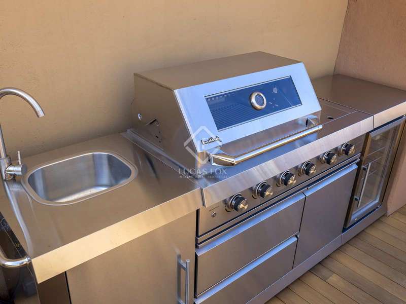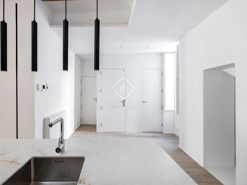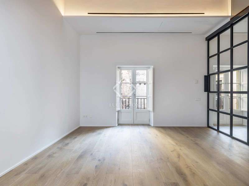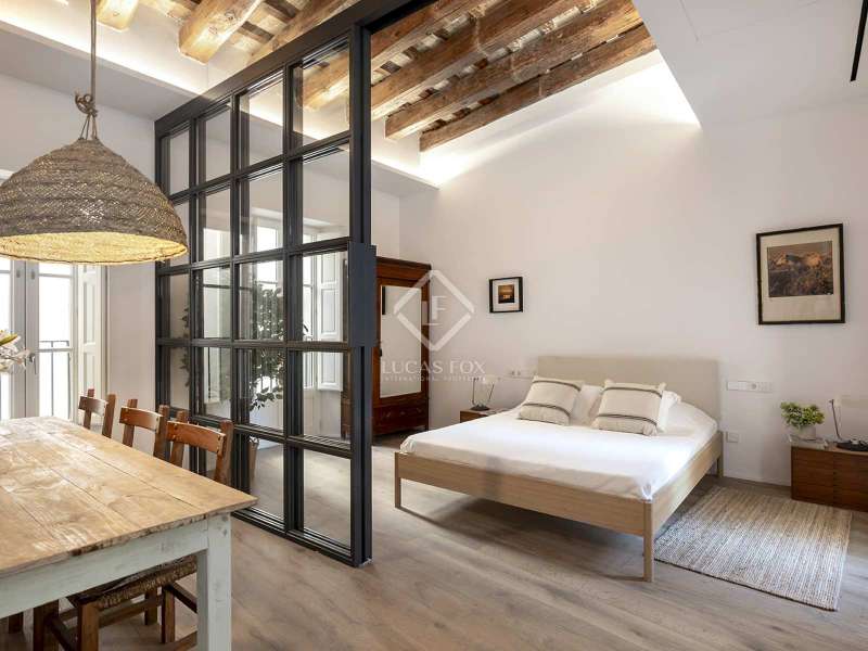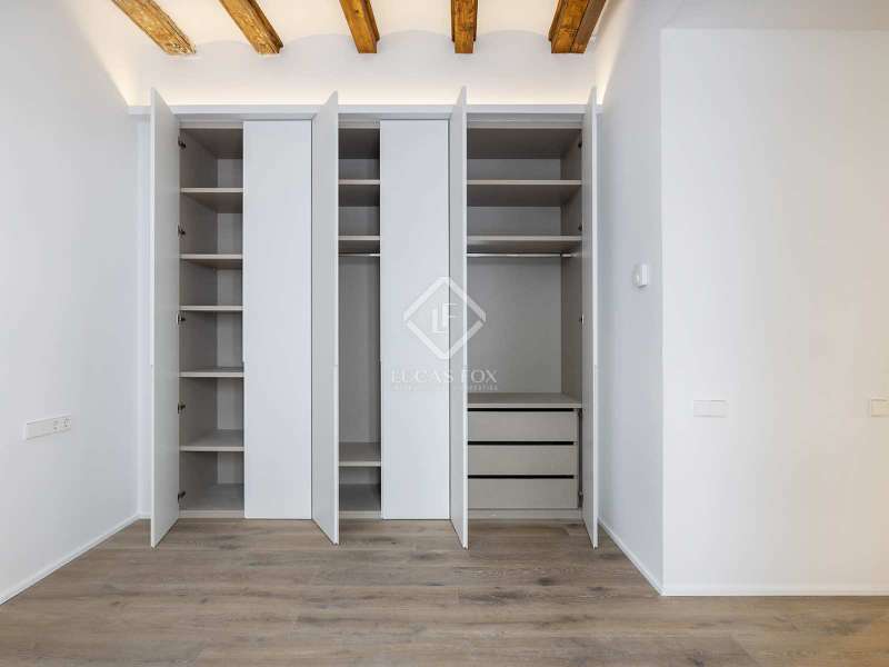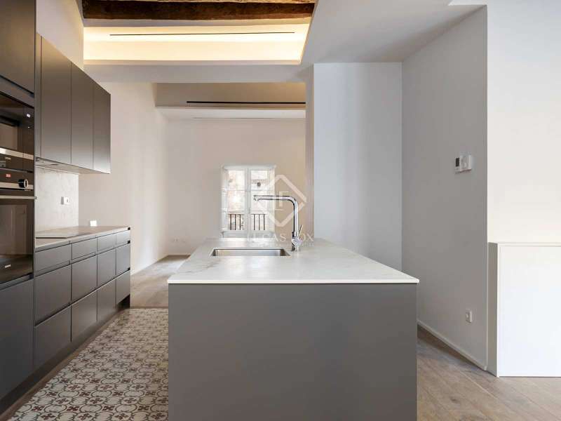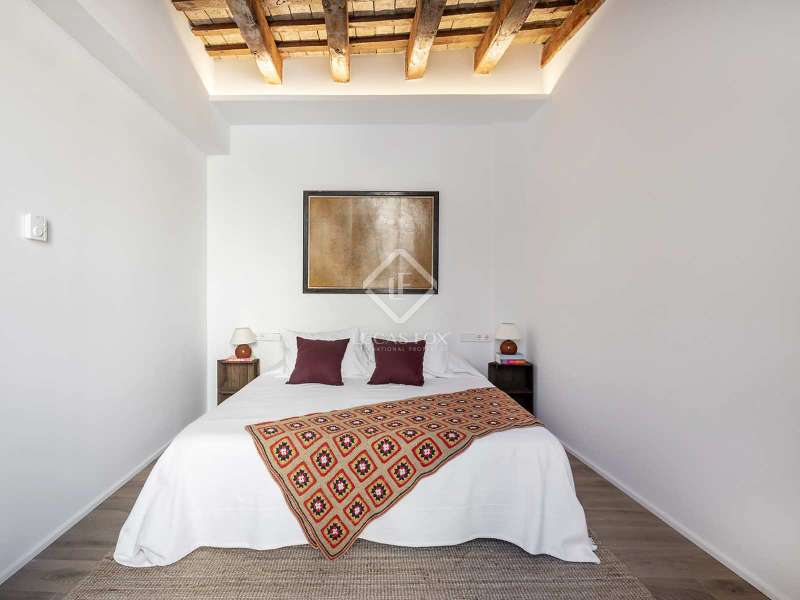 Lucas Fox presents the new build development Banys Vells, in a remodeled listed building located in the Born neighbourhood of Barcelona. The building is located in the walls of the old medieval baths, which is where it gets its name. The development has only five elegant apartments, as well as two commercial premises, so it enjoys great privacy. This 114 m² attic apartment is very spacious and could be joined to the second floor of the floor, if desired, making it even larger. The day area is presented in an open-plan space, with the living-dining room with the open-plan kitchen, with a total of about 52 m². The kitchen has a central island and comes equipped with appliances. The night area includes two bedrooms: a double bedroom and the main bedroom with a private bathroom with shower and built-in wardrobe . The property is completed with a second bathroom with a shower. During the remodeling, the most representative period elements have been maintained or restored such as exposed wooden beam ceilings, hydraulic tiles, brick walls and frescoes. All this gives an atmosphere of nobility to the property. However, these period elements have been combined, for total comfort, with modern equipment, such as a kitchen from the German brand Nolte with Siemens appliances , white Neolith Abu Dhabi countertops; and seamless bathrooms in matte light gray microcement, matte black ceramics, furniture and taps from Duravit. On the other hand, the property includes wooden windows and balconies with double glazing and shutters and underfloor heating powered by aerothermics. The development offers its residents a magnificent roof terrace for communal use, which comes equipped with a swimming pool, exterior kitchen, chill-out space, exterior shower with hot and cold water and a bathroom. From here, you can see the views of the old town of Barcelona, more specifically, some of the most beautiful churches in the area, such as Santa María del Mar. Finally, the development offers a lift that connects all floors and a lobby spacious with bicycle parking. Get in touch for more information.
