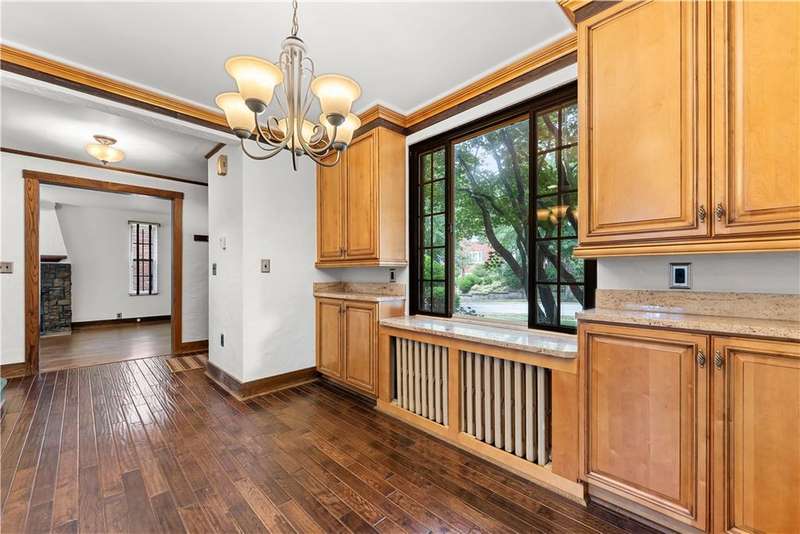 Charming four bedroom Tudor with two and half baths. Home features new kitchen open to dining area. New flooring cabinets,granite countertops. Bonus large pantry for storage. Freshly painted throughout. Oversized living room with gas fireplace. Bright sunroom in front of house off living room. First floor powder room. Second floor has a primary bedroom with bathroom. Third floor is a large bedroom with bonus room that could be an office or walk in closet. Two car tandem garage. Large back deck off kitchen perfect for grilling. Quiet street and close to Lincoln Elementary, Beverly Road Shops and zip right into downtown Pittsburgh.