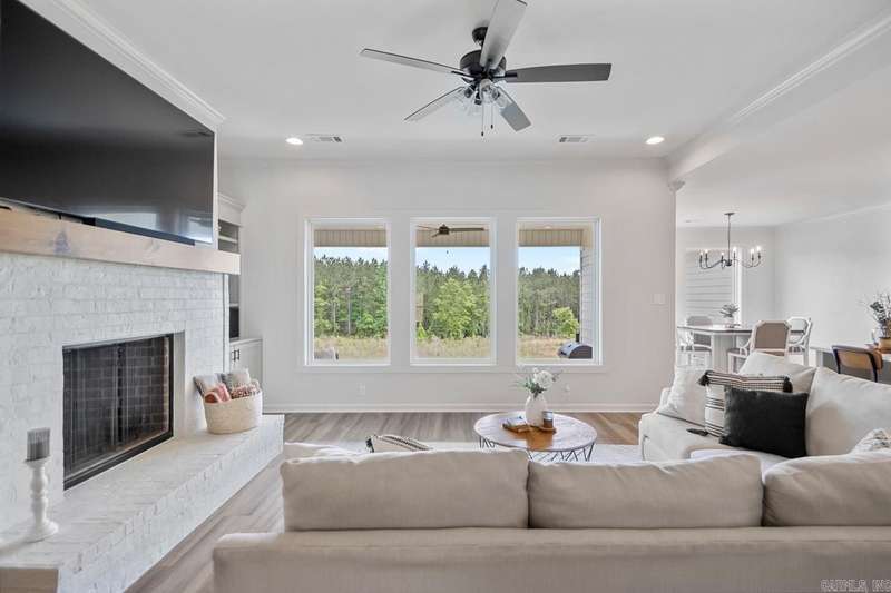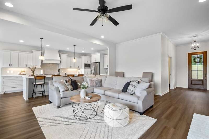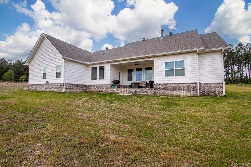WELCOME HOME! This Beauty is Move IN READY! As you walk into the foyer off of the covered porch, which is a perfect spot to sit on your porch swing, check out the welcoming floorpan this home has to offer. The Office/flex space right off the foyer has many uses. Split plan with 3 bedrooms and a full bath on one side of the home, and the Primary Suite tucked away on the opposite side with a HUGE WALK IN CLOSET, trey ceilings and large bathroom. The living space is perfect for entertaining 2 to 22! Or just relaxing with your family after a long day. Large island, tons of cabinets, oversized walk in pantry with even more storage options! Expansive windows overlooking your 1.5 acres of land! Great mud room area off of garage and half bath. Side entry garage and Extra parking pad