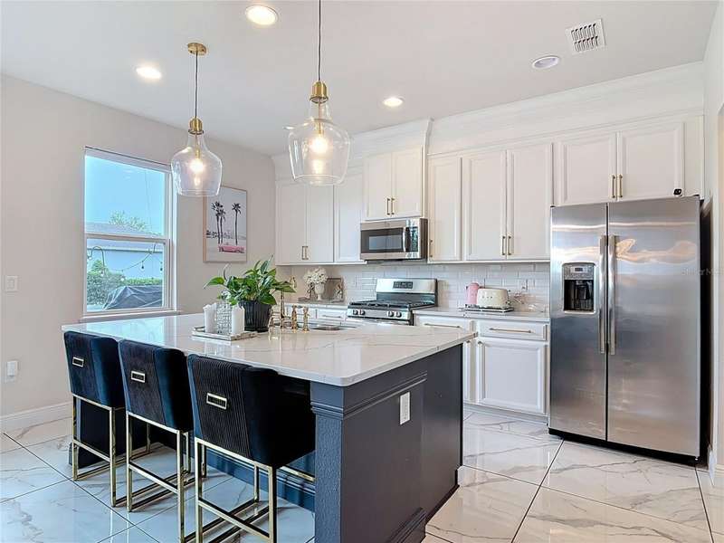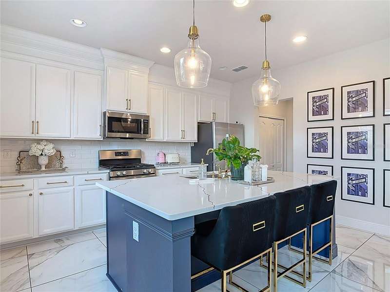 Under contract-accepting backup offers. *Please WALK THROUGH with video 2 and Experience Elevated Living in this STUNNING LUXURY 3-bedroom and 2.5 bath residence on an outstanding OVERSIZED CORNER LOT in the highly sought after Victoria Trails! Step into a world of refined luxury with this exquisitely REMODELED residence, originally built in 2019, offering 2,370 square feet of impeccably curated living space. Designed with both elegance and modern sophistication in mind, this home is a true sanctuary for those who appreciate the finer things in life. Upon entry, you're welcomed by gleaming oversized porcelain marble tile floors that echo the opulence of a high-end resort. Every design element, from the dramatic European-style light fixtures to the antique-inspired faucets, has been carefully selected to elevate the home's aesthetics. The heart of the home is a chef's dream-an open-concept gourmet kitchen outfitted with custom white cabinetry, connected to the ceiling with custom crown molding, showcasing a sprawling quartz island perfect for entertaining, and matching porcelain marble floors that add seamless flow and sophistication. Adjacent formal living and dining areas feature rich hardwood floors, lending warmth and grandeur to your gatherings. The open layout of the living room allows for an abundance of natural light through the many windows, creating a true lounging experience with family and friends. Retreat to the expansive primary suite and enjoy a luxurious bathroom with a private spa-like experience, including an oversized walk-in shower and dual vanities. The massive walk-in closet is every Fashionista's dream! The guest bedrooms are generously sized, offering comfort and convenience for family and guests. A dedicated family room provides the perfect space for movie or game nights. Every inch of this home whispers craftsmanship and intention, with no detail overlooked. Set on one of the community's most coveted oversized corner lots, the outdoor living space is equally impressive. Enjoy Florida's sunshine with your custom brick outdoor kitchen with granite countertops or gather around the fire pit under the stars on cool evenings. A paver patio and manicured privacy hedges complete this lush backyard oasis-perfect for both relaxation and entertainment. A charming front porch for morning espressos or evening martinis awaits you.Victoria Trails offers an exceptional lifestyle with amenities that include resort-style pools, clubhouse, playground, fitness center, tennis and pickleball courts. Golf carts are welcome throughout the community, adding charm and ease while touring the area. Golf lovers will appreciate optional membership access to the renowned 18-hole Victoria Golf Club. Just minutes away, historic Downtown DeLand enchants with its award-winning small-town charm, boutique shopping, dining, and the prestigious Stetson University campus. With easy access to major roadways, this home offers the best of both worlds: LUXURY & LOCATION. This isn't just a home-it's a destination. A rare blend of international flair and Florida lifestyle, this stunning property promises a life well-lived and luxuriously enjoyed. Walk through this European-inspired beauty! Schedule your viewing and experience this stunning property in person! Please note that information and measurements are intended to be accurate but are not guaranteed. Buyers and their agents should verify all property details, including zoning, schools, HOA rules, pet policies, and other potential uses.