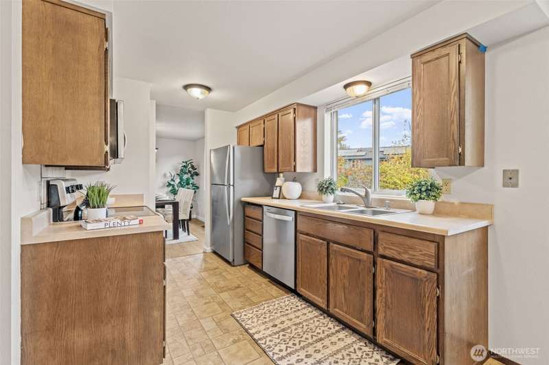 Move-In Ready Charm in a peaceful cul-de-sac! This beautifully maintained home offers fresh paint, laminate hardwoods, and abundant natural light throughout. The classic kitchen features hard-surface counters, newer stainless appliances, and a breakfast nook overlooking the spacious, level backyard. Open living and dining areas flow seamlessly for gatherings or everyday comfort. Upstairs, the primary suite includes a private bath and walk-in closet alongside two additional bedrooms. Enjoy a large, fully fenced lot with room to garden, play, or relax. Level walking to nearby parks and schools—close enough for convenience yet tucked away for privacy.