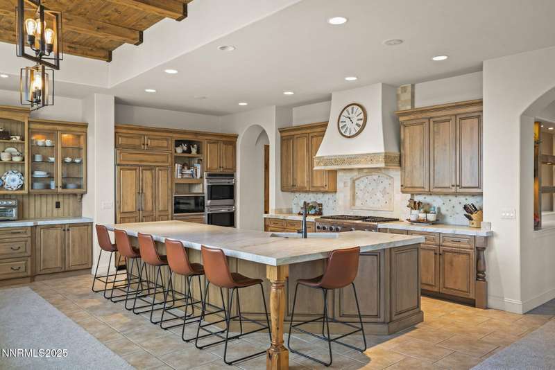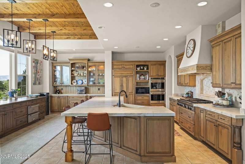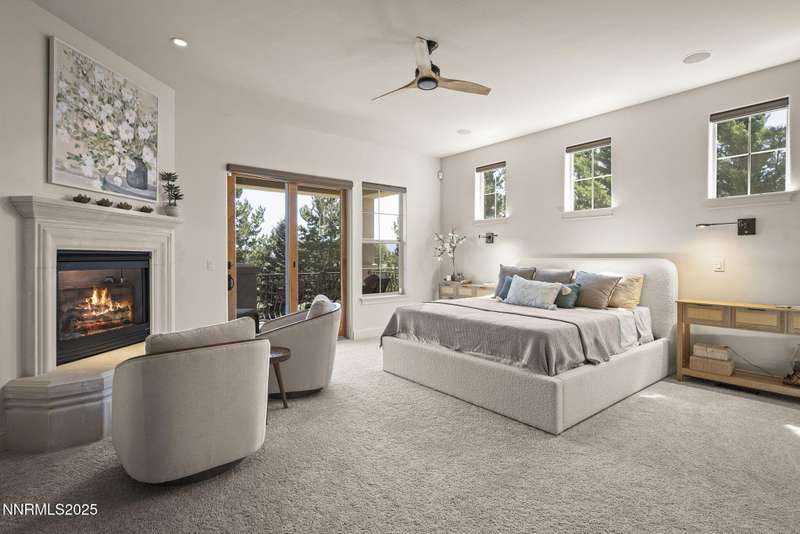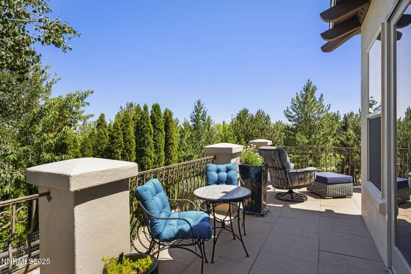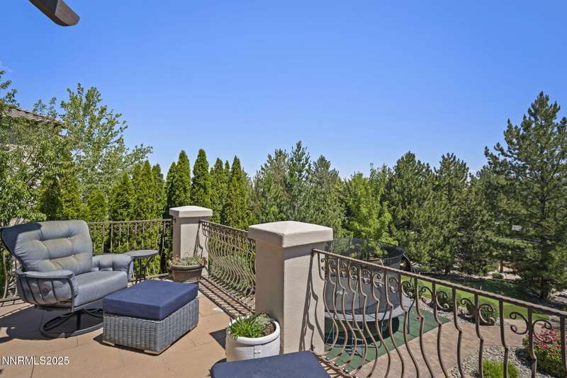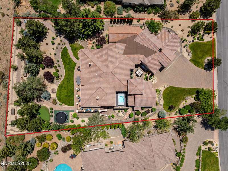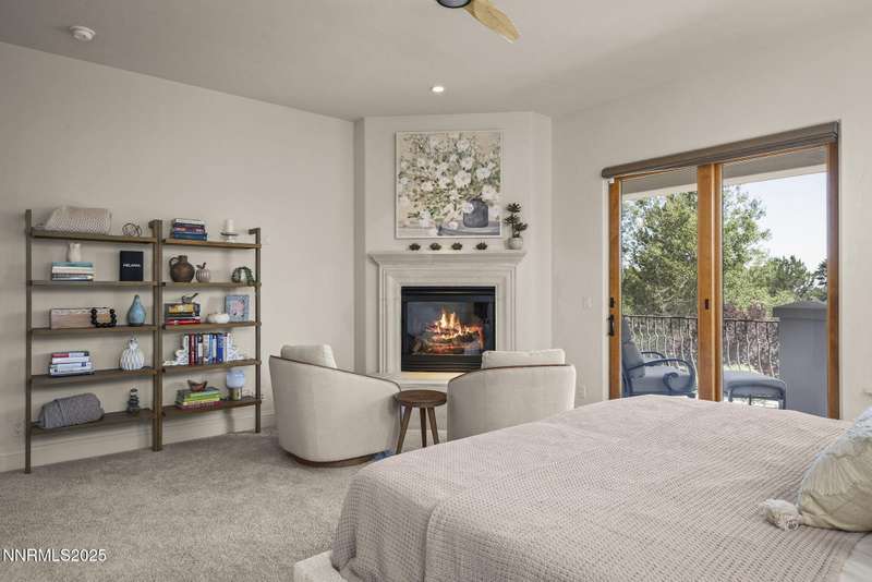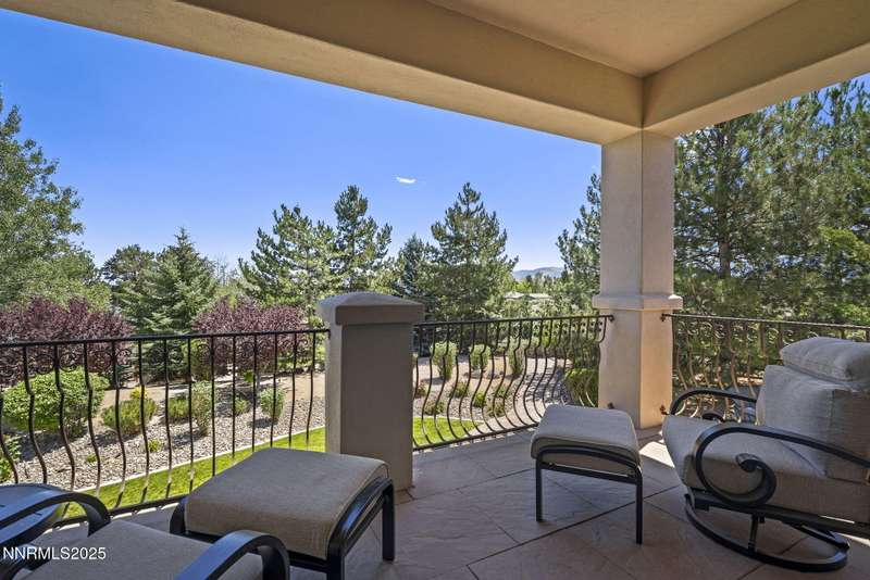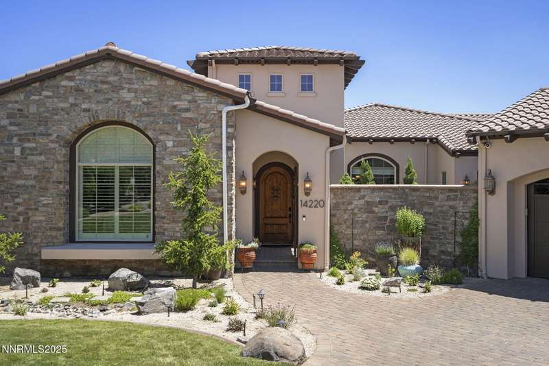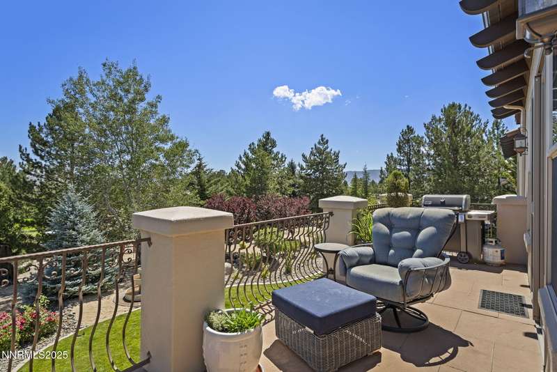 Welcome to this stunning luxury estate property, located in the prestigious Saddlehorn community. Nestled on a serene cul-de-sac, this exquisite 5 bedroom, 5 1/2 bath residence has undergone a multitude of designer renovations, offering the finest in upscale living. The chef's kitchen is a true showpiece—featuring leathered Taj Mahal quartzite countertops, two built-in refrigerators, dual Bosch dishwashers, warming drawers, added custom soft-close cabinetry, and three spacious pantries. Expanded custom built-ins elevate both functionality and elegance, making this kitchen a culinary dream. Relax and unwind in the spa-inspired primary suite on the main level which includes a steam shower, gas fireplace, custom lighting, and sophisticated tilework. Downstairs you will find a spacious in-law suite including its own kitchenette with l Leather Taj Mahal quartzite counter, new sink, dishwasher, and beverage fridge- plus a versatile bonus space perfect for a game room, home theater, or additional living quarters creating the ultimate entertaining space, and two additional private bedrooms with ensuites. Additional interior highlights include a double-sided gas fireplace between the living and great rooms, a custom bunk room with exposed beam detail, a private man cave, updated designer lighting, and extensive electrical upgrades throughout. Step outside to enjoy the resort-style grounds—complete with an expanded paver patio, grand fountain, raised vegetable gardens, privacy hedging, and a swim spa with new pump & cover, custom decking for easy maintenance access. A built-in outdoor BBQ with griddle enhances alfresco living. Premium appliances include two washers, two dryers, five beverage refrigerators, and so much more. This turnkey luxury retreat combines timeless elegance with modern comfort in one of Reno's most sought-after neighborhoods. See newly remodeled upgrade list in documents for additional information.