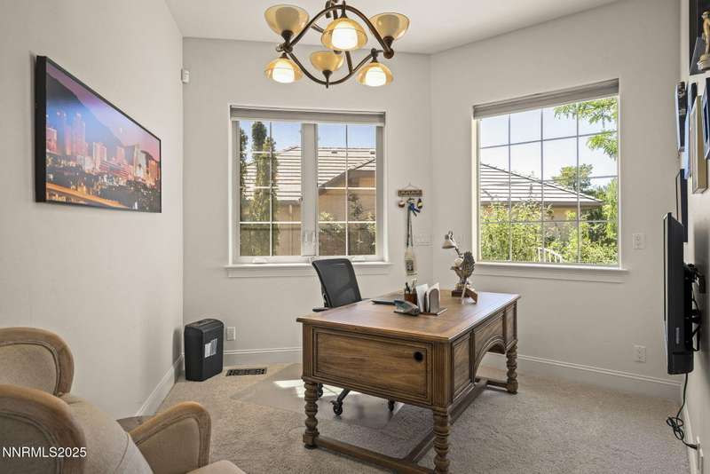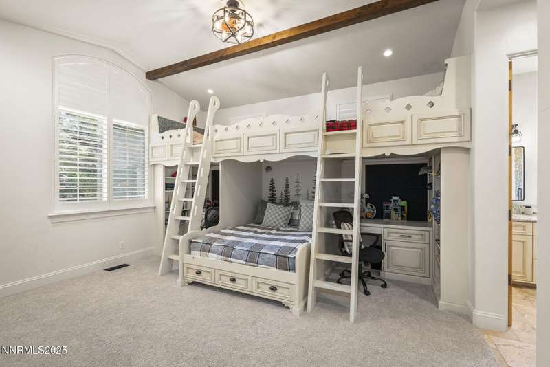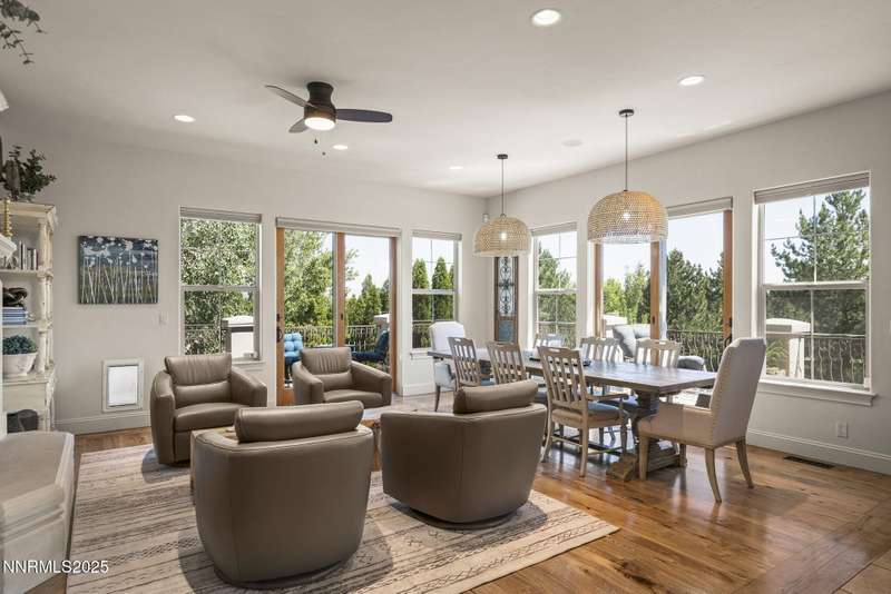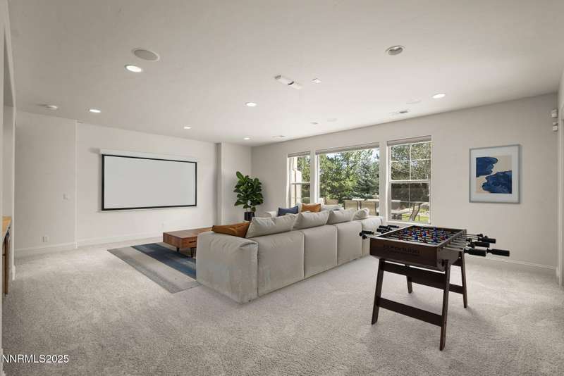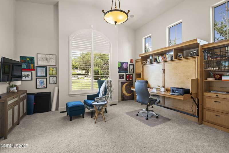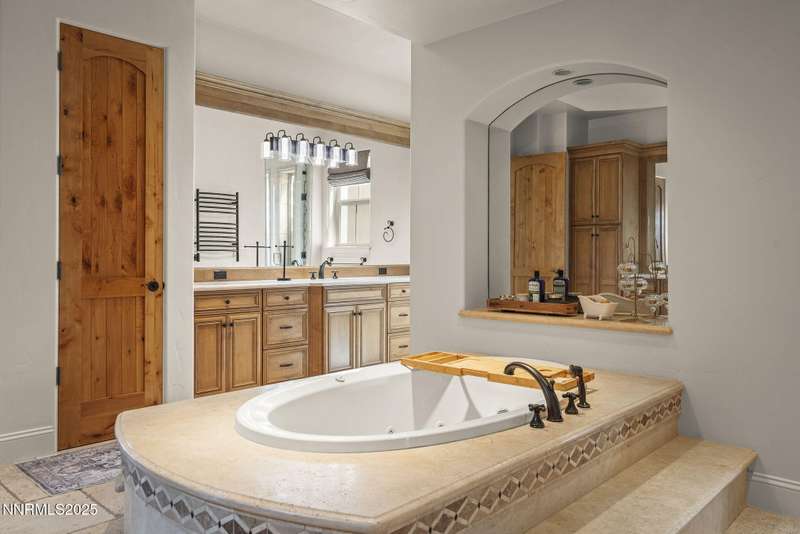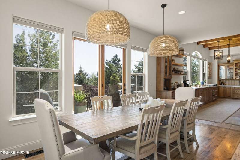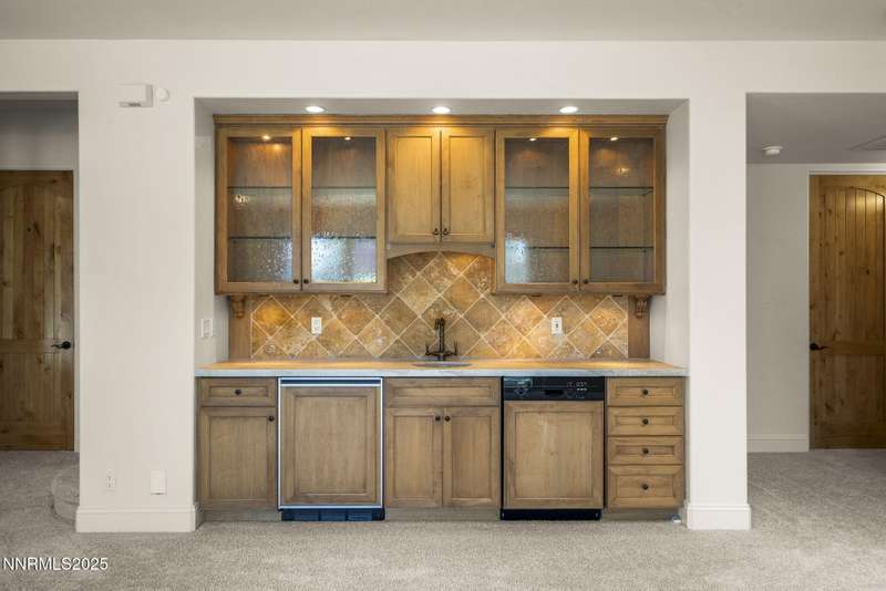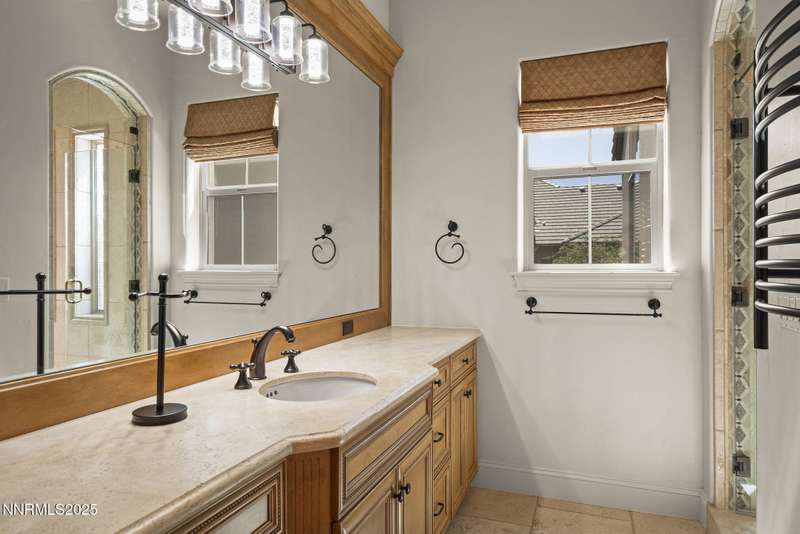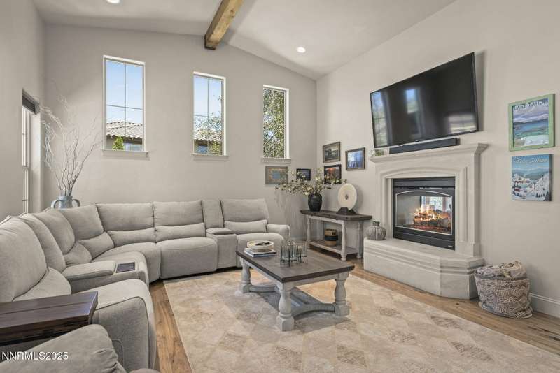 Welcome to this stunning luxury estate property, located in the prestigious Saddlehorn community. Nestled on a serene cul-de-sac, this exquisite 5 bedroom, 5 1/2 bath residence has undergone a multitude of designer renovations, offering the finest in upscale living. The chef's kitchen is a true showpiece—featuring leathered Taj Mahal quartzite countertops, two built-in refrigerators, dual Bosch dishwashers, warming drawers, added custom soft-close cabinetry, and three spacious pantries. Expanded custom built-ins elevate both functionality and elegance, making this kitchen a culinary dream. Relax and unwind in the spa-inspired primary suite on the main level which includes a steam shower, gas fireplace, custom lighting, and sophisticated tilework. Downstairs you will find a spacious in-law suite including its own kitchenette with l Leather Taj Mahal quartzite counter, new sink, dishwasher, and beverage fridge- plus a versatile bonus space perfect for a game room, home theater, or additional living quarters creating the ultimate entertaining space, and two additional private bedrooms with ensuites. Additional interior highlights include a double-sided gas fireplace between the living and great rooms, a custom bunk room with exposed beam detail, a private man cave, updated designer lighting, and extensive electrical upgrades throughout. Step outside to enjoy the resort-style grounds—complete with an expanded paver patio, grand fountain, raised vegetable gardens, privacy hedging, and a swim spa with new pump & cover, custom decking for easy maintenance access. A built-in outdoor BBQ with griddle enhances alfresco living. Premium appliances include two washers, two dryers, five beverage refrigerators, and so much more. This turnkey luxury retreat combines timeless elegance with modern comfort in one of Reno's most sought-after neighborhoods. See newly remodeled upgrade list in documents for additional information.