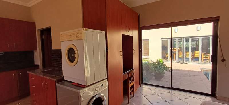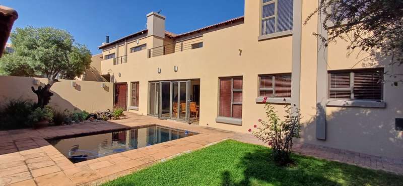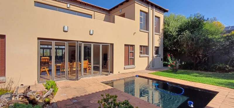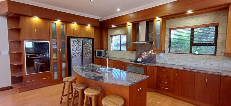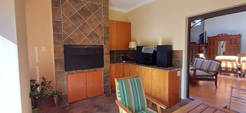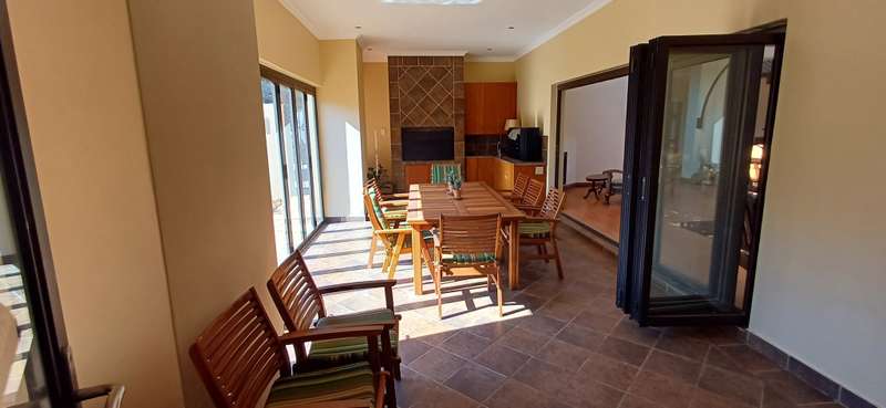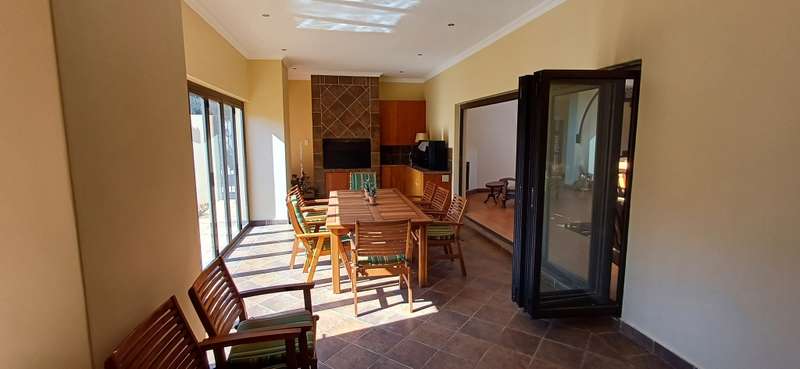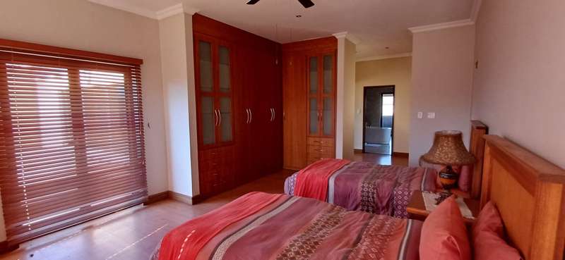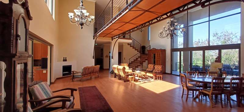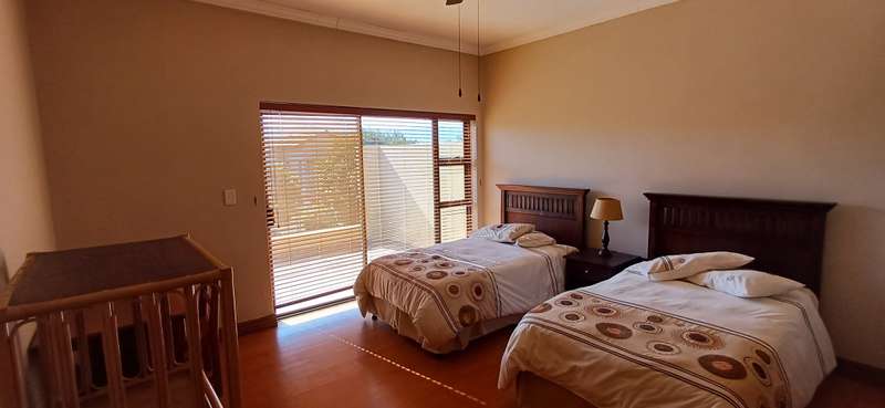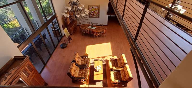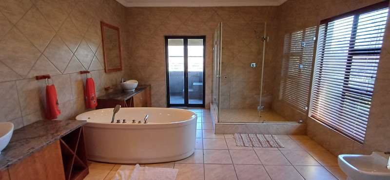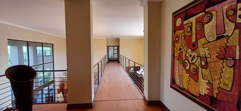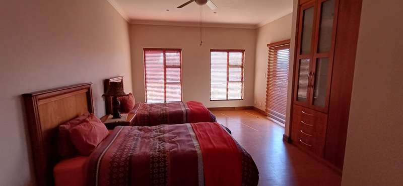 STYLISH FAMILY HOME WITH FLAT FOR GRANNY!! this beautiful home offers an blend of spacious living areas which include 4 double bedrooms, 3 full bathrooms (2 ensuite), entrance hall, open plan living area, quality kitchen boasting two hobs (one gas one electric), two ovens, island with prep bowl, granite tops, large separate scullery, guest cloakroom. One bedroom with ensuite bathroom is downstairs. The separate enclosed patio opens onto the swimming pool and a garden leading to a private flatlet which could be utilized as a guest suite or income generating rental unit. Two garages both have access into the entrance hall. Upstairs offers three bedrooms, plus a pyjama lounge. The main bedroom has access to a sunny balcony, as well as a jacuzzi on the other side of the room with fabulous views. ALL of the downstairs living areas lead onto the very large covered patio with a built-in braai, this is where you can entertain friends and family while overlooking the garden and sparkling pool. Both the pyjama lounge as well as the downstairs living area have access to a balcony and large patio, offering views over inland dam and savannas with various species of antelope. Xanadu Estate is a superb lifestyle estate situated on the North East of Hartbeespoort and is central to main routes to access all the major cities. To the east, Pretoria is a mere 35 minutes'' drive via the N4 Pelindaba highway or take N4 towards Rustenburg and be there within 40 minutes. Johannesburg and Midrand is equally accessible via the Lanseria and Hennops River routes. Please contact us to arrange viewing !!