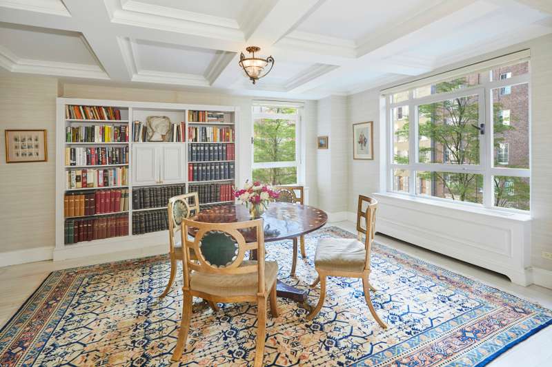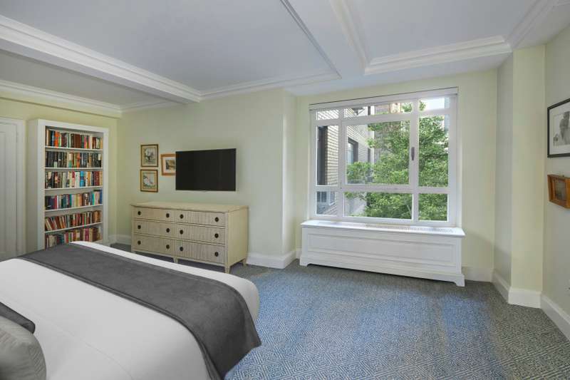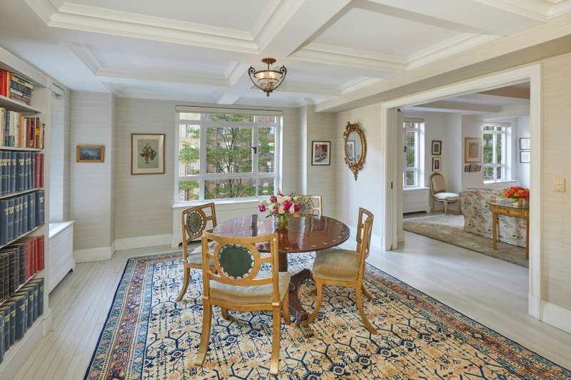The apartment's spacious foyer leads to a large living room flanked by a formal dining room and a cozy library; all of which look upon tree-top views of Beekman Place. There are three quiet, well-proportioned bedrooms in the private wing of the apartment.