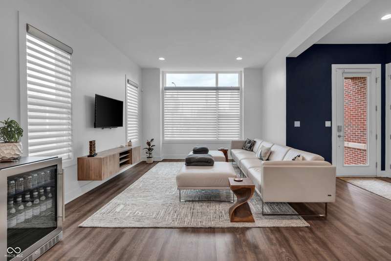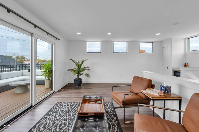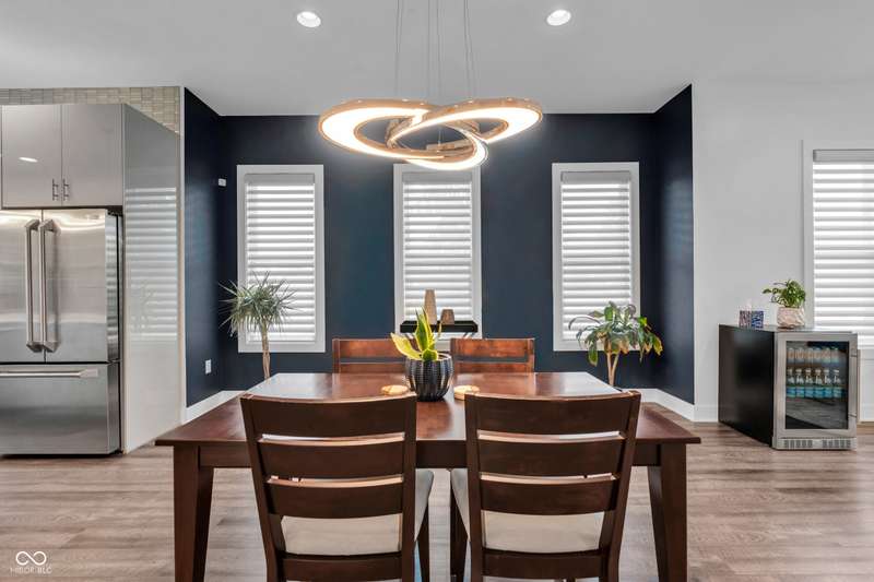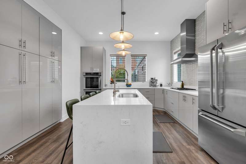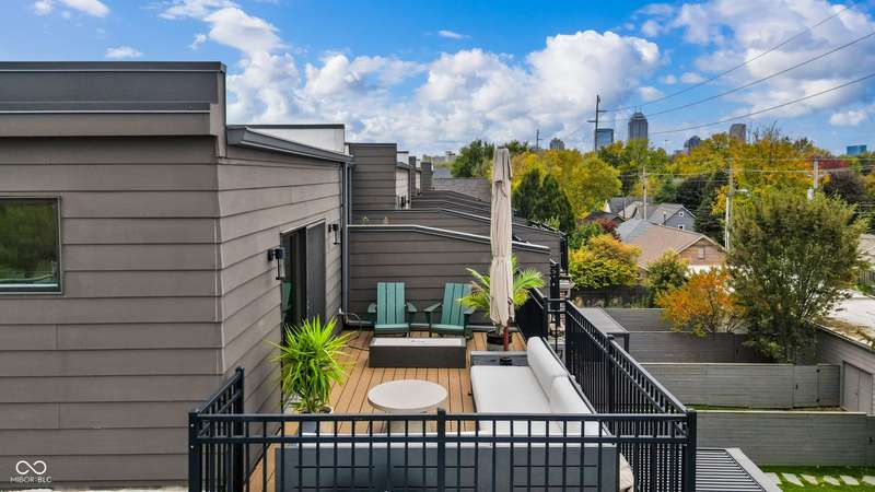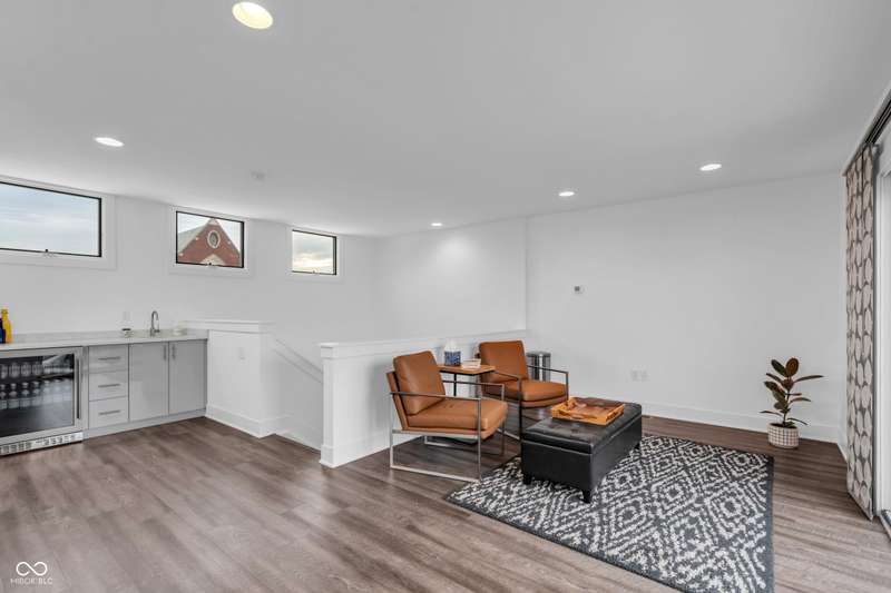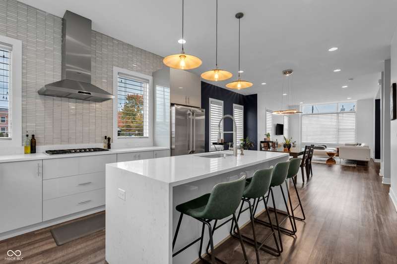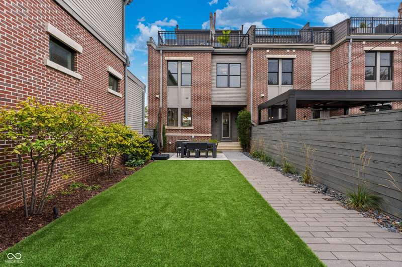Welcome home to a newly built townhome in the heart of Indy's historical Old Northside! This four-level O&E townhome boasts a wonderful location, close to all your downtown desires. The original owners updated it before completion with a luxury kitchen and more. Enjoy abundant natural light on every floor and two outdoor living areas: a rooftop deck with stunning downtown views and a maintenance-free, fully fenced backyard with turf and a paver patio. The finished basement features a lovely wet bar, beverage fridge, cabinetry, a recreation room, and extra storage. With four bedrooms and three separate living spaces, this home is perfect for entertaining. The custom kitchen offers high-end appliances, ample cabinetry, and counter space, all open to the living and dining areas.