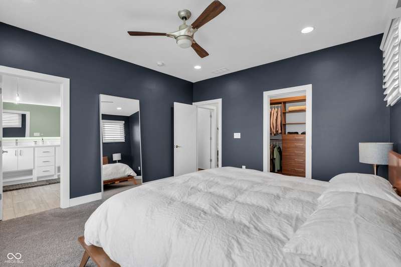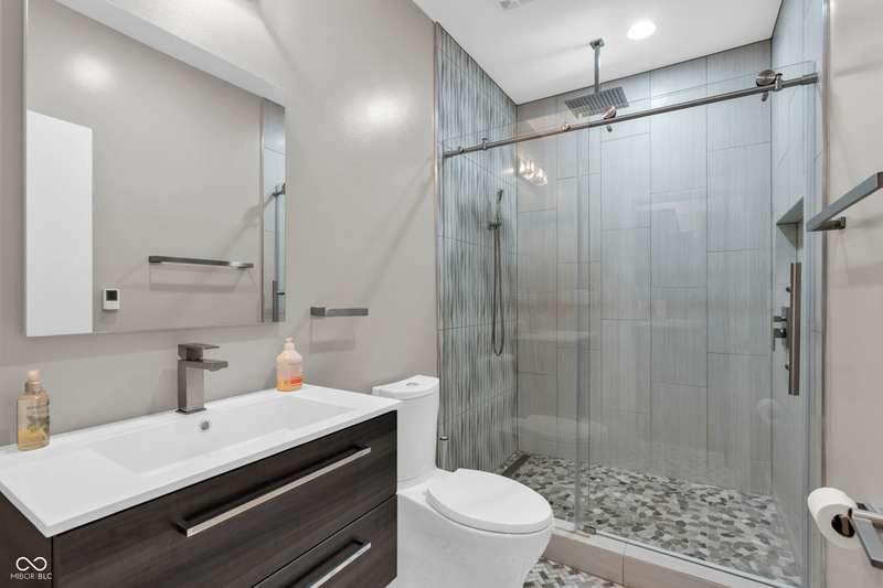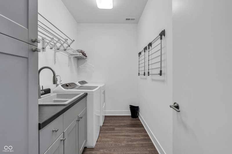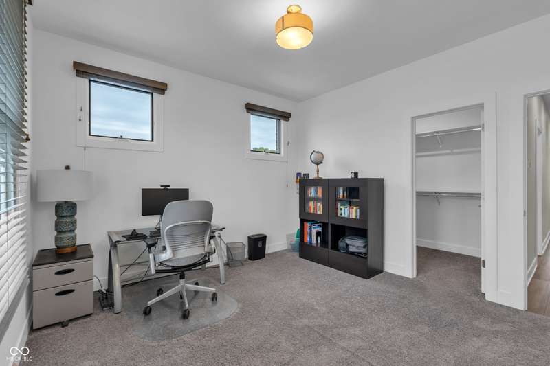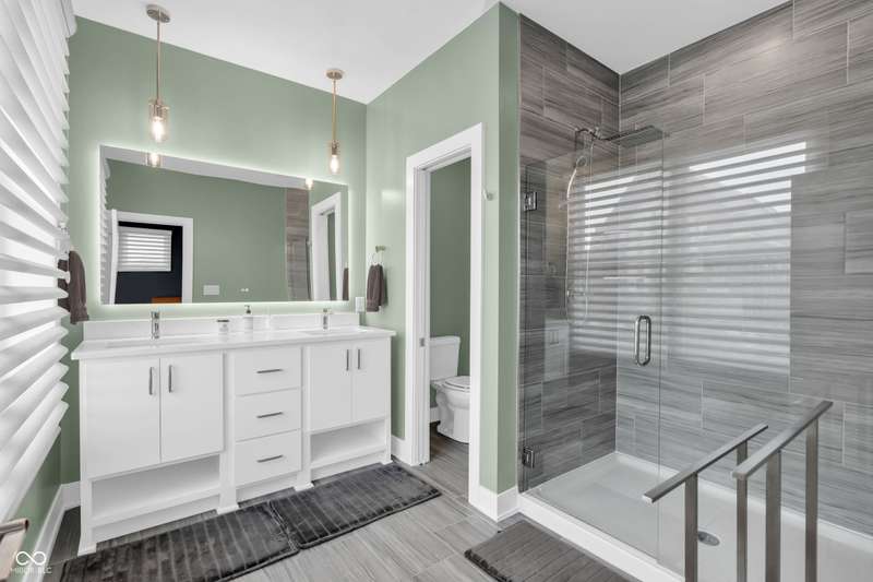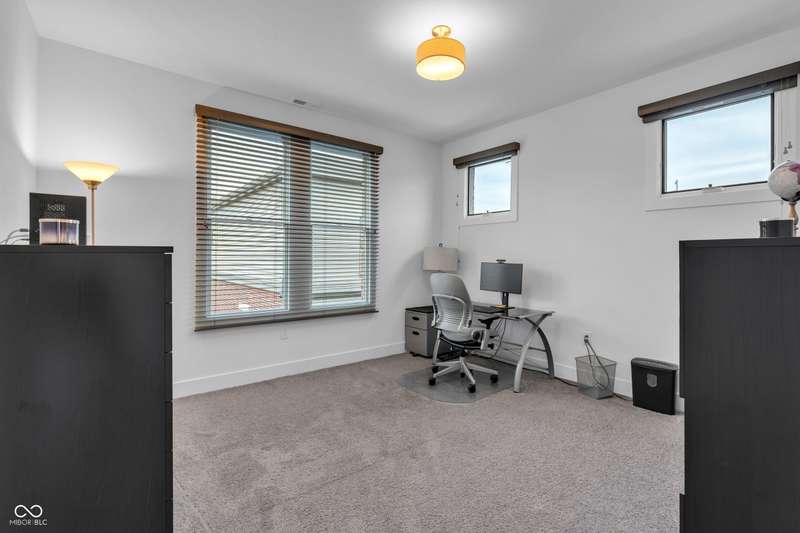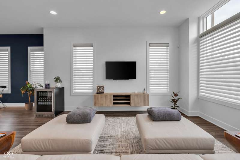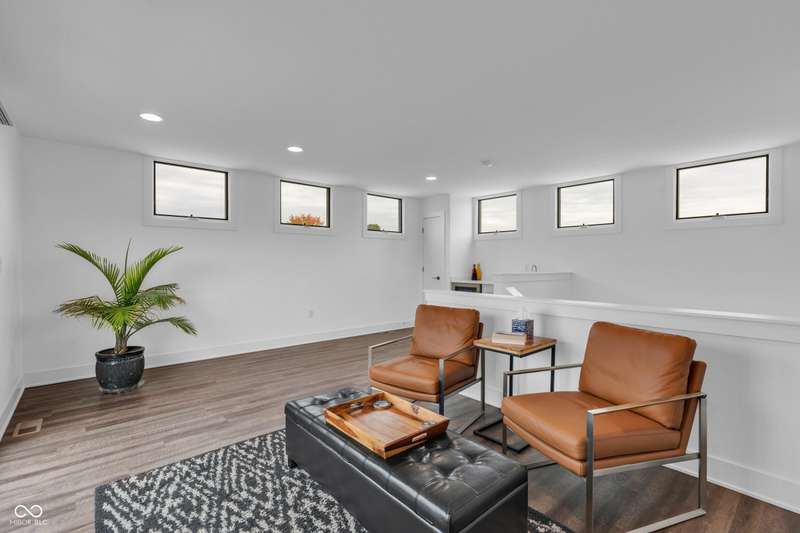 Welcome home to a newly built townhome in the heart of Indy's historical Old Northside! This four-level O&E townhome boasts a wonderful location, close to all your downtown desires. The original owners updated it before completion with a luxury kitchen and more. Enjoy abundant natural light on every floor and two outdoor living areas: a rooftop deck with stunning downtown views and a maintenance-free, fully fenced backyard with turf and a paver patio. The finished basement features a lovely wet bar, beverage fridge, cabinetry, a recreation room, and extra storage. With four bedrooms and three separate living spaces, this home is perfect for entertaining. The custom kitchen offers high-end appliances, ample cabinetry, and counter space, all open to the living and dining areas.