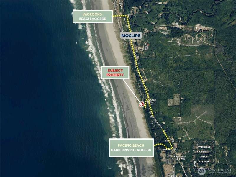 REDUCED PRICE on this TRUE oceanfront lot with water, sewer, & electric in-street. Spanning a collective total of 18,766 sf, this property offers direct beach access and unobstructed views of the Pacific Ocean. Situated on a paved & aptly named Sunset Street between Morocks Beach & Pacific Beach. Lot has sloped topography making it most conducive to daylight basement configurations. Enjoy sunsets & strolls along the beach. Close to the Ocean Crest and Seabrook amenities, and only about 30 minutes from Ocean Shores. One of the best-kept secrets on the coast!