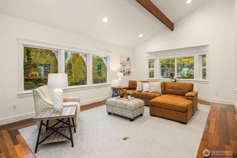 A rare and welcoming retreat filled with warmth, natural light, and good energy, this 5 bed, 4.5 bath home with its vaulted ceilings and peaceful Japanese-inspired gardens is simply gorgeous. Two decks and peekaboo Lake WA views are the perfect setting for entertaining and relaxing. The lower level—a fully finished daylight basement w/ 2 beds, 2 baths, laundry, and bonus room—offers easy ADU, guest suite, and multigenerational living potential. It’s just a few blocks to Lake Washington and Juanita Beach, with great Cross Kirkland Corridor trail access. Vibrant DT Kirkland and Juanita, with their fabulous restaurants and shops are so close. Nothing to do but move in—new interior and exterior paint and carpet, and pre-inspected.