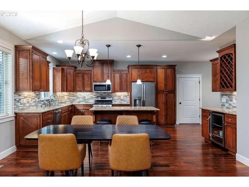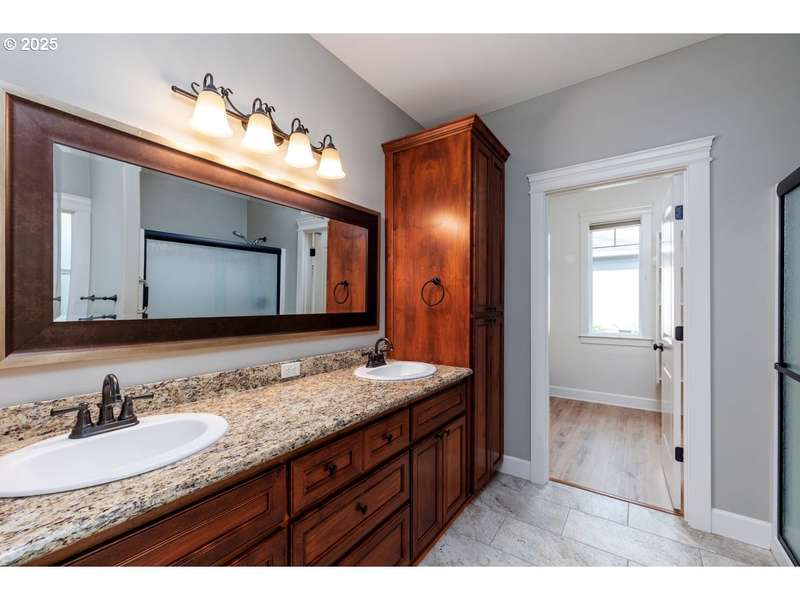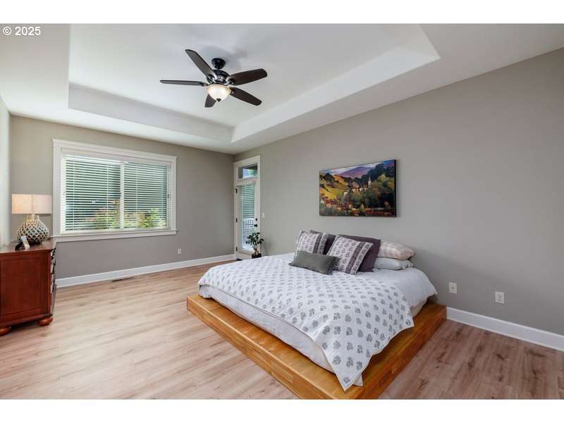 Experience refined living in this stunning single-level craftsman located in the desirable Tukwila Community with pool, tennis/pickleball courts, and nearby OGA Golf Course. This elegant home offers a spacious open floor plan with vaulted ceilings, beautiful engineered hardwood and laminate flooring throughout-no carpet! The gourmet kitchen features slab granite counters, large island, SS appliances,gas range, built-in beverage chiller, and custom soft-close cabinetry with under-cab lighting.The luxurious primary suite includes a tray ceiling, spa-like bath with dual vanity, tile shower, walk-in closet,heated fans in both baths and direct access to the private composite deck-perfect for morning coffee or quiet evenings. Fully owned solar system with automated irrigation and low-maintenance landscaping, you'll have more time to enjoy the pool or perfect your golf swing. Extra-deep 2-car garage and ample parking.Luxury, comfort, and elegance await-welcome home!