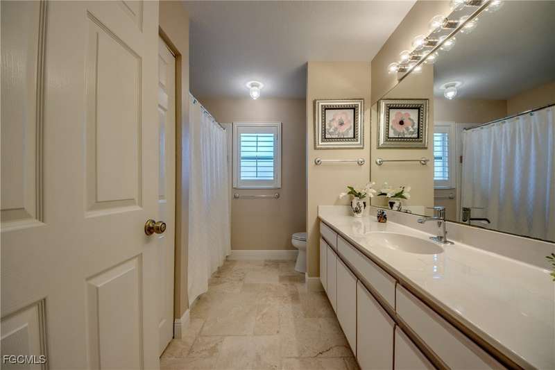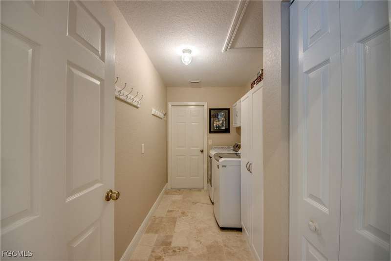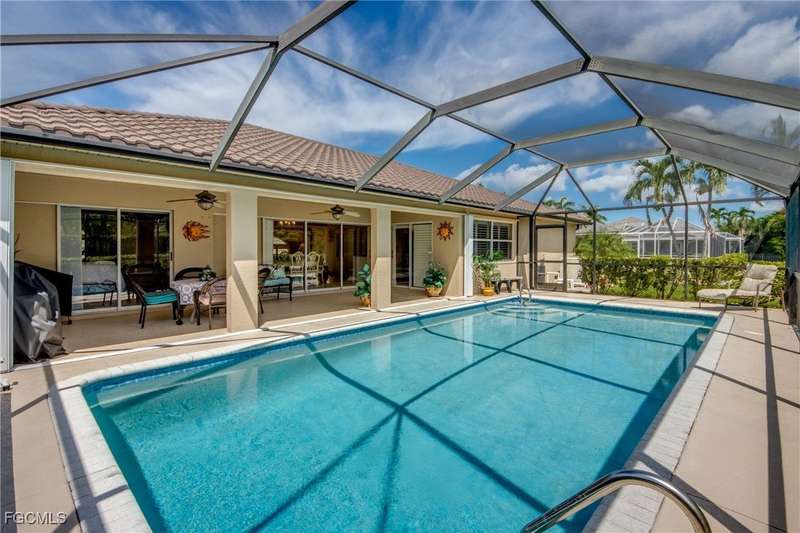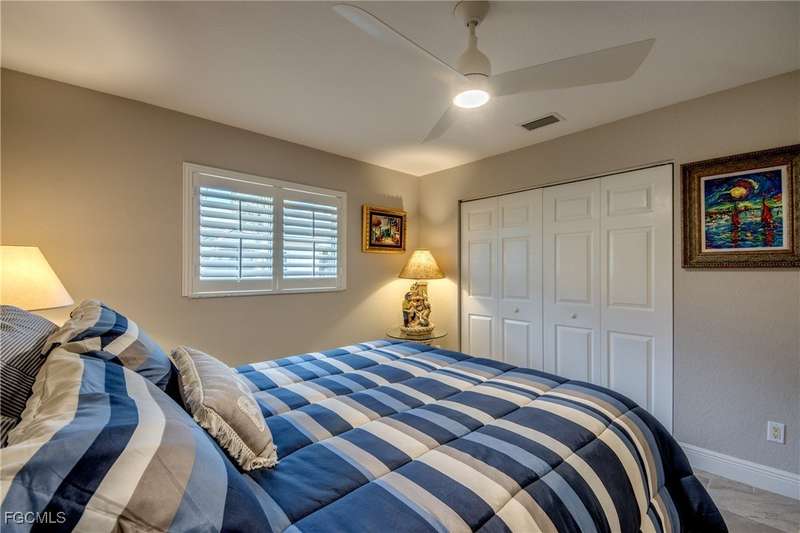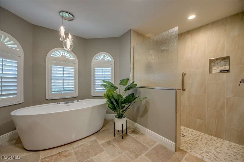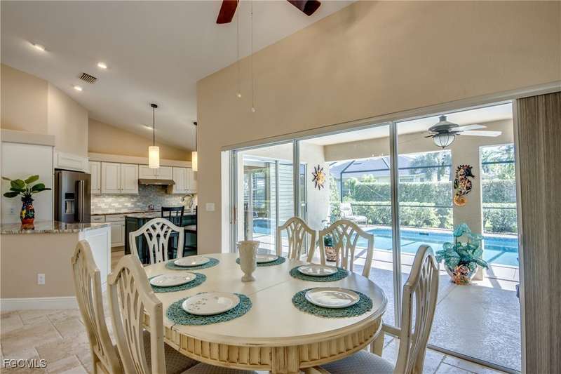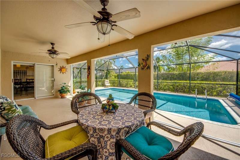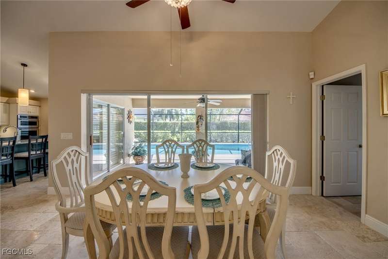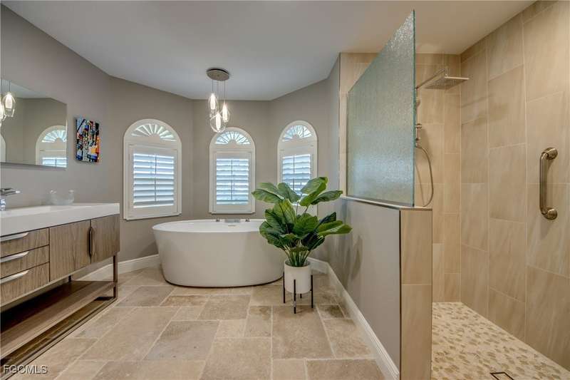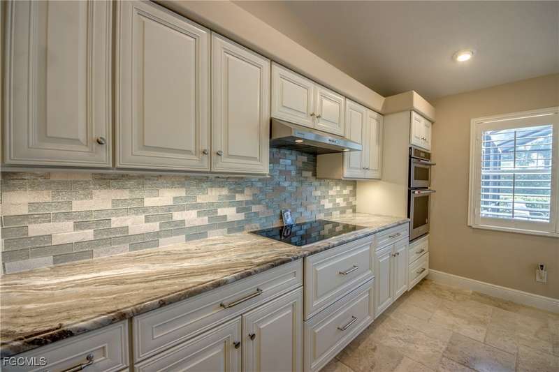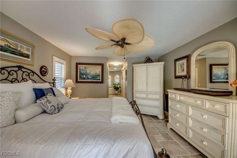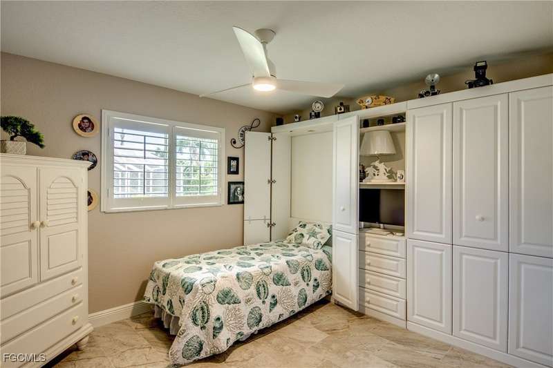 Prepare to be whisked away...this stunning Mediterranean inspired 3/2/2 pool home oozes luxury in every square inch. Royal Palm Tree lined street located in one of Cape Coral's premiere zip codes...amazing hand laid paver drive, entry walk way and lush tropical landscaping featuring Royal Palms invite a peek of what's inside. Huge double door entry opens to grand open air concept home with 13' ceiling plus large windows and sliders that blur the lines between interior and exterior Florida living showcasing an amazing 40 x 20 lanai and massive 30 x 14 heated pool. Rich Tuscany Travertine tile and Custom Wood Bahama Shutters add just the right touch. Chef Inspired Kitchen features elegant granite counters, massive island for entertaining, carefully coordinated crafted wood cabinetry and top of the line KitchenAid stainless steel appliance package with highly desirable induction cooktop. Private Master suite with pool access, his/hers master closets and an en suite that rivals most 5 star spas. 2 addition private rooms, one acts acts as an office with convenient double Murphy beds, share addition full bath. Well thought out oversized garage with epoxy flooring and independent mini split AC to store your "toys"! New 140 MPH rated 40 year barrel style roof and seamless gutters in 2023. PEX Manifold Plumbing System. Freshly painted inside and out. All Assesssments PAID IN FULL.