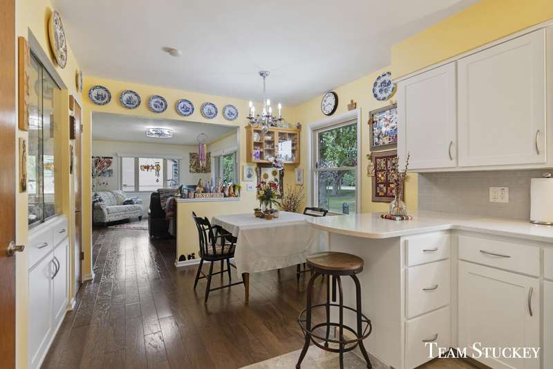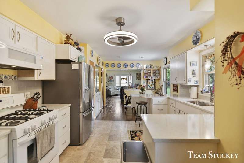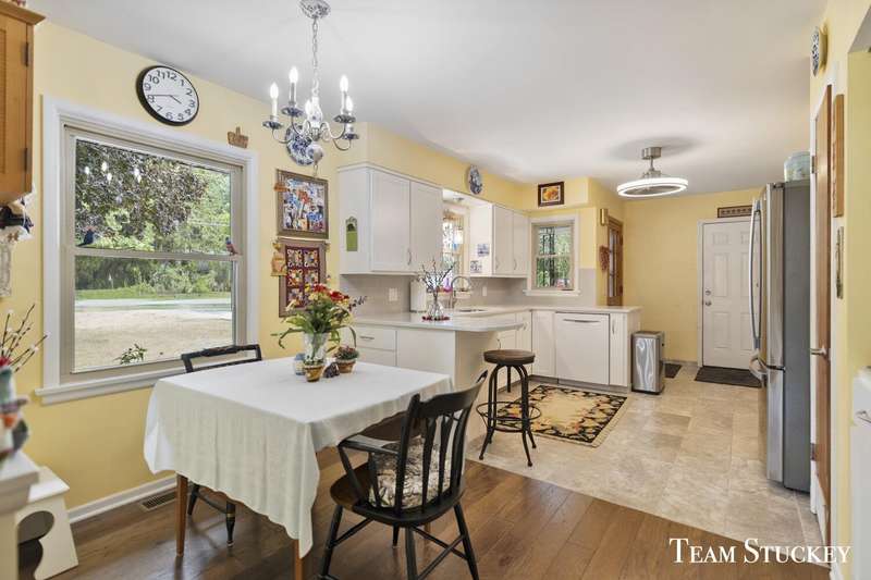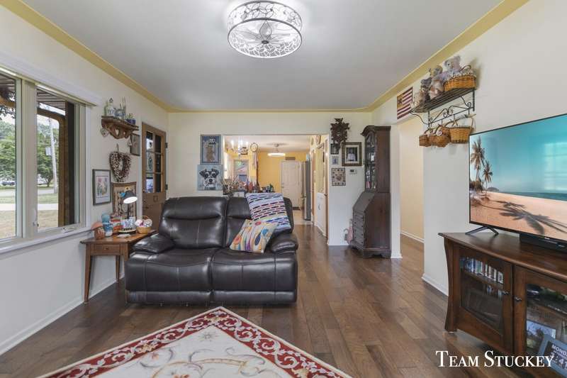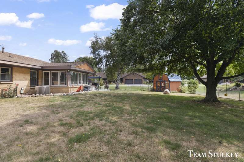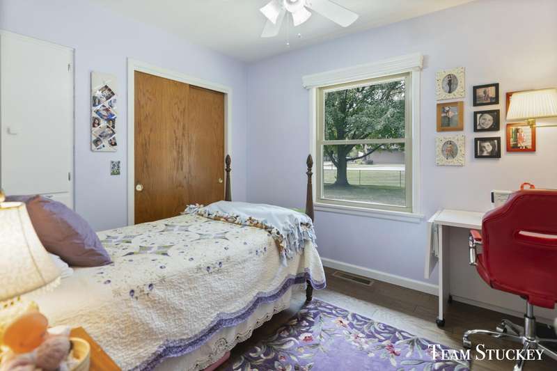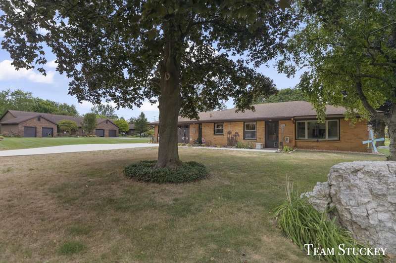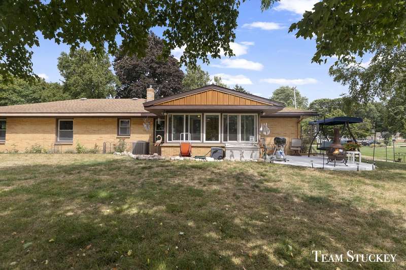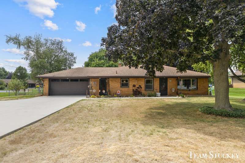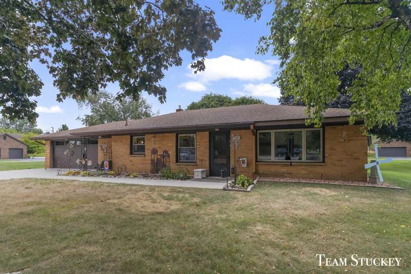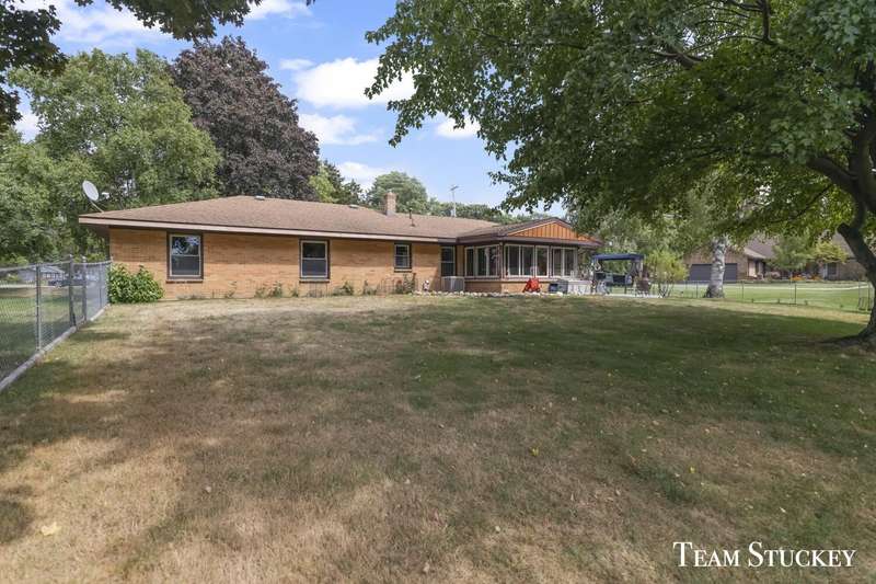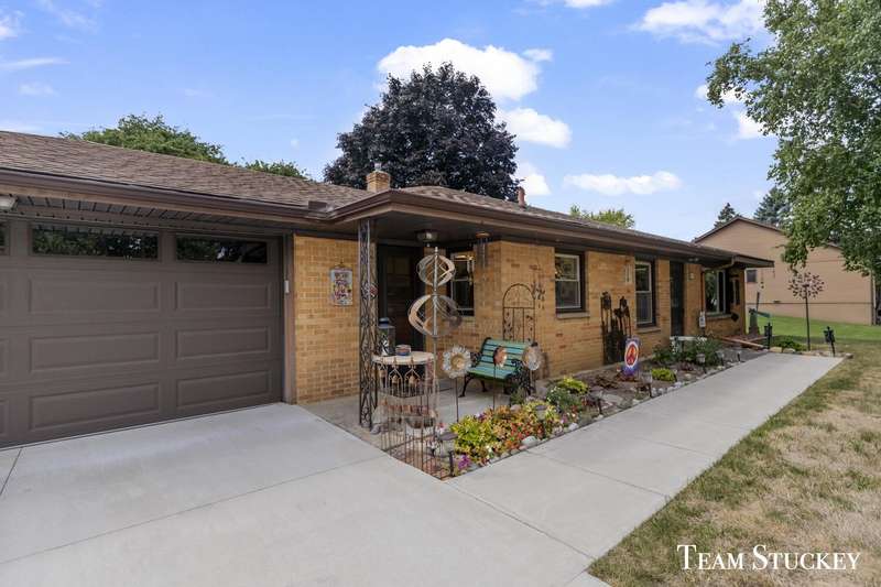 Welcome to this meticulously maintained and well updated Ranch home in Grandville School District. Its full brick exterior makes it efficient on heating and cooling. Updated vinyl double pain windows, newer appliances and mechanicals. Brand new water heater. Quartz countertops in bath and kitchen. Premium hardwood floors and tile throughout the home. Large half acre lot with fenced back yard. New concrete driveway and additional parking/turn around for convenience. Beautiful 3 seasons porch looking over the backyard and patio. Both front doors are from the old Ottawa Hills schools that closed. A true slice of history. Tons of closet space and built ins for storage. storm crawl space below 3 seasons porch. Large attached 2 stall garage. Hurry before this deal is gone.
