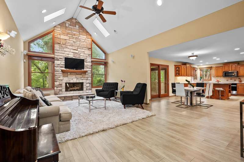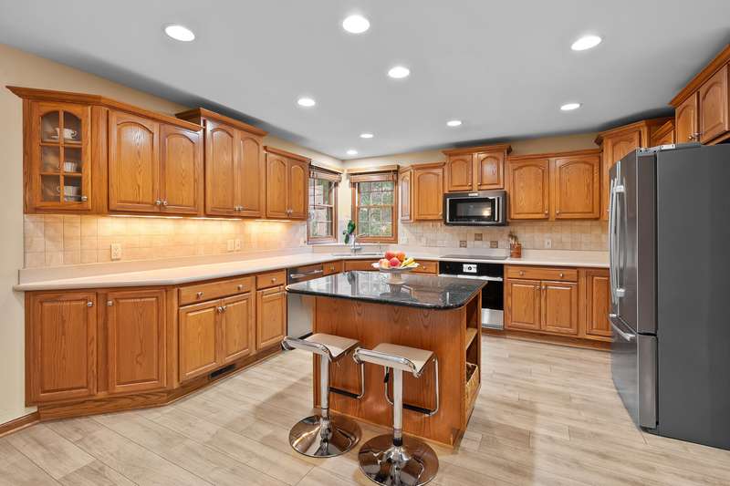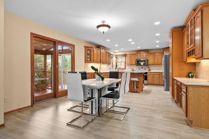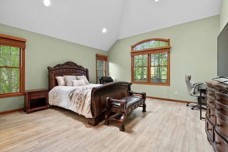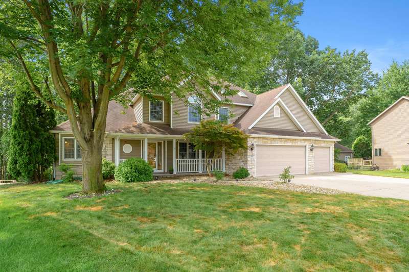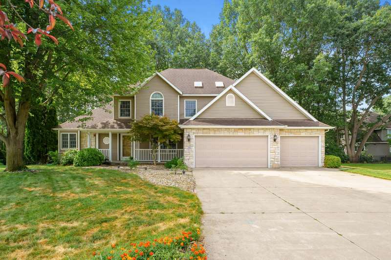 Located on a quiet cul-de-sac in Marquette Estates, this beautiful home has been meticulously cared for. The stunning floor to ceiling stone fireplace in the great room invites you to relax by the fire with the wooded ravine as your backdrop. The spacious kitchen has newer stainless-steel appliances, granite counters, a center island and dining area. The kitchen also provides access to the main floor laundry room & three car garage. The spacious main floor primary bedroom boasts cathedral ceilings, an ensuite bathroom with a walk-in shower and whirlpool tub and walk in closet. Upstairs you will find three large bedrooms all with ample closet space and another full bathroom. The lower level is set up for creating the ultimate entertainment space. Perfect for a theater room, gaming area, or kids' playroom with built in surround sound speakers and a beverage bar. The lower level also contains the fifth bedroom, full bathroom and plenty of storage space. Imagine enjoying the warm weather cooking out on the back deck or relaxing in the screened in porch. Schedule your showing today!