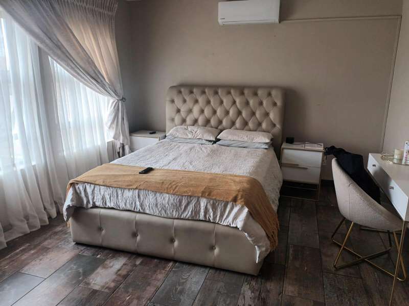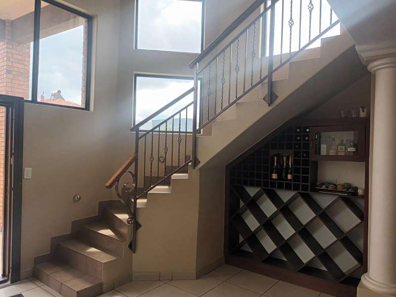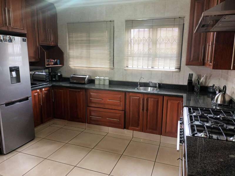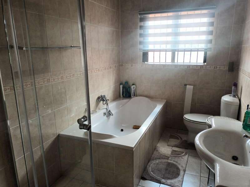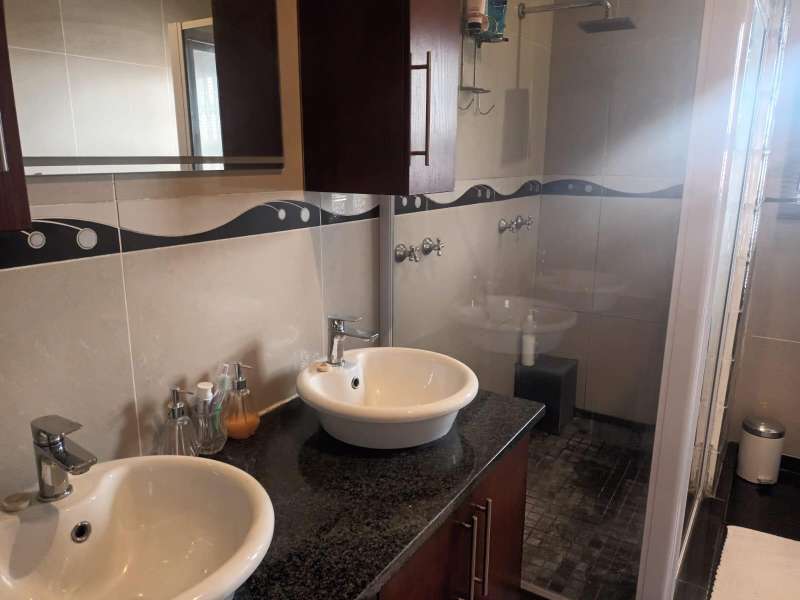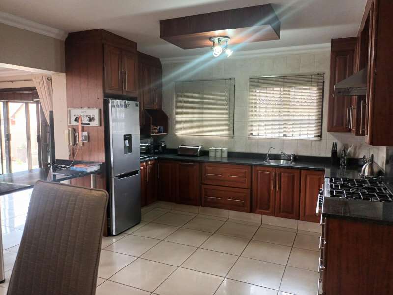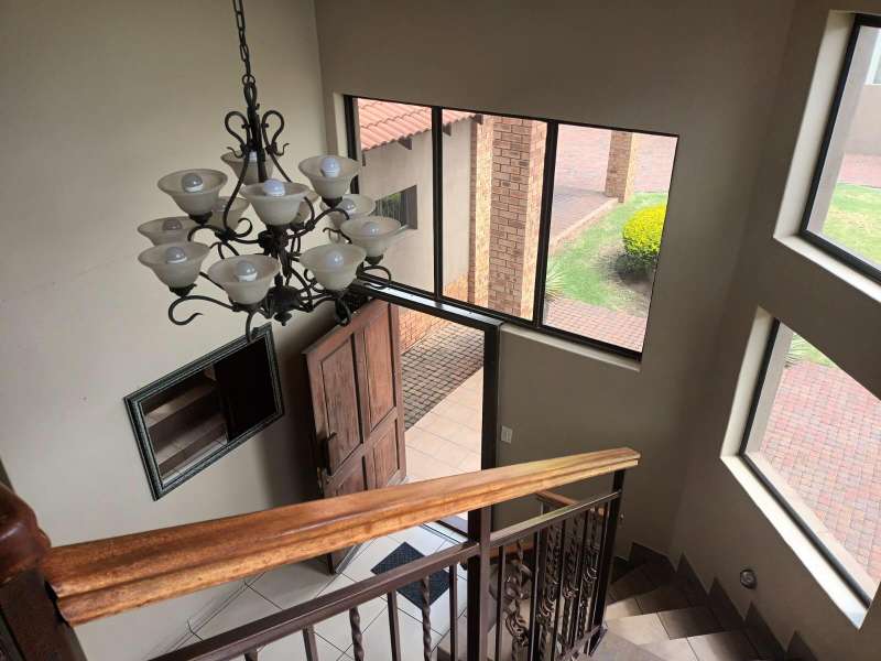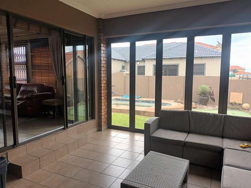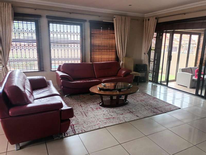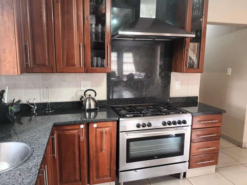 Welcome to this exquisite double-storey home nestled within a secure estate, promising a blend of elegance, comfort, and convenience. Boasting three bedrooms and two bathrooms, including a luxurious en suite in the main bedroom, along with a thoughtfully placed guest toilet, this residence ensures every aspect of modern living is met with finesse. As you step inside, you are greeted by a harmonious fusion of spaces, featuring a lounge, dining room, and a modern kitchen equipped with sleek finishes and top-of-the-line appliances. The kitchen also offers a separate scullery/laundry area and a walk-in pantry, catering to your organizational needs with effortless style. Entertaining guests is a delight with the lounge seamlessly flowing into an enclosed entertainment area, complete with a built-in braai for hosting memorable gatherings. Additionally, the property boasts a double garage providing direct access into the home, along with covered parking for two vehicles, ensuring utmost convenience for you and your guests. Enhancing the home's sustainability, solar panels for the geyser, two Jojo tanks with a pressure pump, and an inverter with batteries are included, offering energy-efficient solutions to reduce your carbon footprint and utility expenses. Furthermore, a charming mini putt-putt area adds a touch of recreation for leisurely moments. Step outside to discover a tranquil oasis featuring a splash pool, surrounded by an established garden that welcomes your furry companions, making it a truly pet-friendly haven. Whether you seek relaxation, entertainment, or simply a place to call home, this property embodies the epitome of modern living in a secure and serene environment.