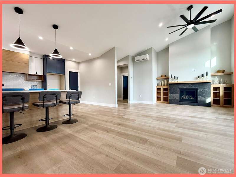 New Designer Residence across the street from Bay front estates at Ocean Shores, WA! Super location near lake parks and our 18-hole golf course. Open concept 1483 sf plan featuring 9' ceilings and vinyl plank flooring throughout. Enter the sun-drenched great room featuring a gas fireplace wall with shelving on both sides. Spacious kitchen featuring plenty of prep/storage space, pantry, farm sink, and a gas range for the chef. Luxury vinyl plank flooring throughout. Primary en-suite bathroom with walk-in shower. A full bathroom with tub/shower and two additional bedrooms complete this plan. Tankless water heating system. 2-car garage. Plumbed for EV charger/garage power. Covered back deck. RV parking. 8,000 sf parcel. In the community club.