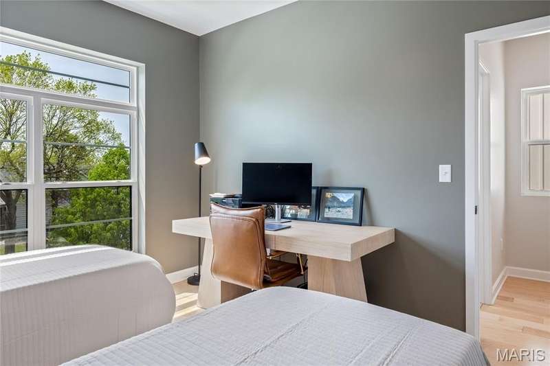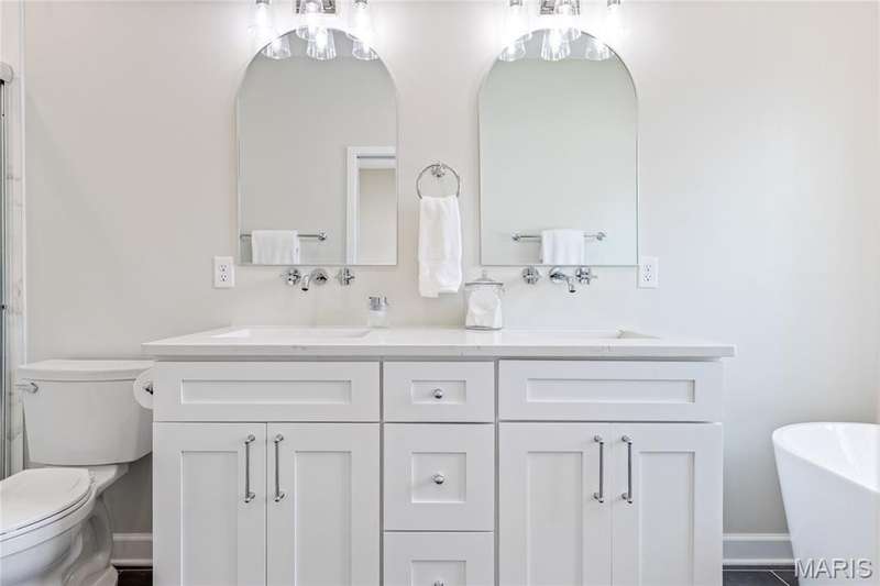 BRAND -NEW Modern home, located between The Hill and Maplewood! MOVE-IN to one of the LAST HOMES AVAILABLE , almost complete ,and get situated in a well-established neighborhood! 5 of the 6 homes have SOLD. Home has an eye-catching exterior facade, multiple outdoor patios plus a balcony off the primary bedroom, 9ft ceilings on the first and 2nd floor & a generous 2-car detached garage. A sodded backyard with an enclosed wooden horizontal fencing, with an access back gate. The Home Boasts a distinctive open floor plan, perfect for entertaining & daily life. Stunning kitchen with an extended center island, Quartz counters, hooded vent & SS appliances. The iron railing, WIDE staircase leads to three upper bedrooms with a separate laundry area that can accommodate side by side appliances. HUGE Primary suite, walk-in closet, double sinks, separate soaking tub & shower with wall to ceiling tiles. Superbly walkable neighborhood, steps away from Clifton Park, a hidden gem, & eateries. Easy access to the highways, BJC healthcare, and Forest Park too! Call for additional lots & finished home options with details and special features! Pictures are from another home.
