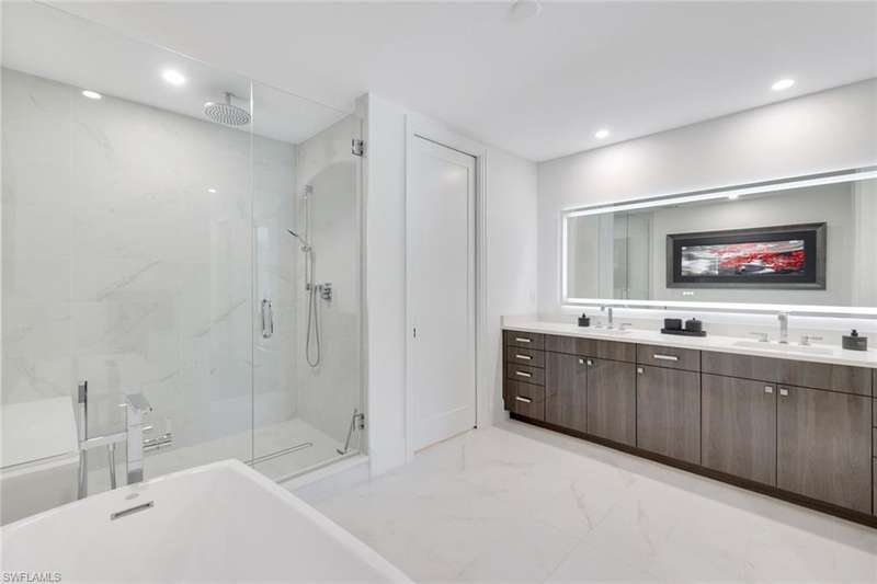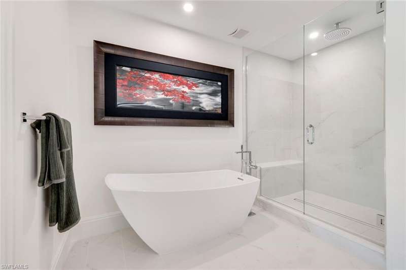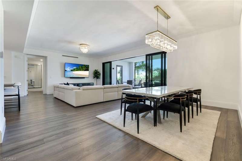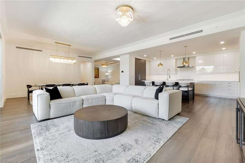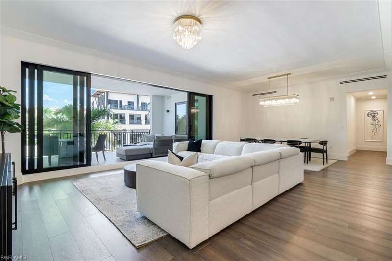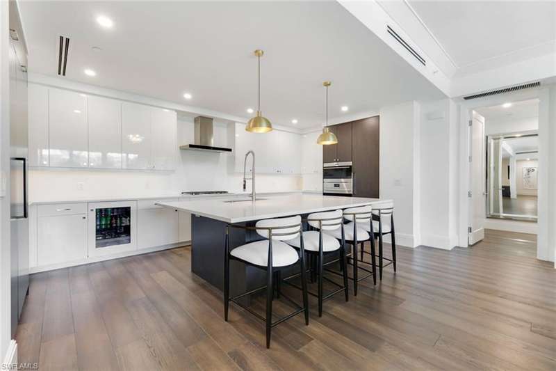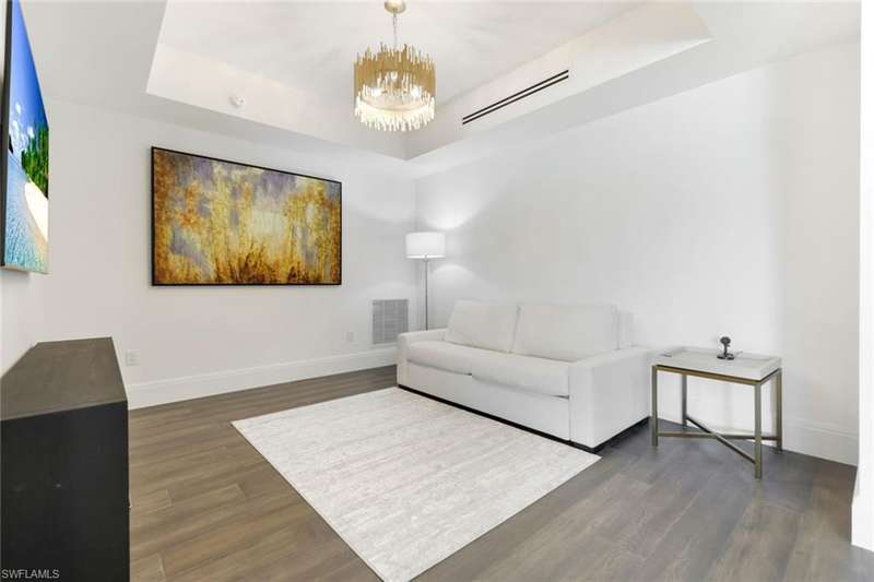 Experience the ultimate in modern coastal luxury at Quattro at Naples Square, where contemporary design meets the relaxed elegance of downtown Naples living. Built in 2023 and newly furnished with high-end designer pieces throughout, this immaculate residence offers the perfect blend of comfort, sophistication, and resort-style indulgence. Situated just steps from 5th Avenue South, Bayfront, Tin City, and the new Gulfshore Playhouse, you ll be in the heart of Naples vibrant dining, shopping, and entertainment district with the beach and sunset views just minutes away. This spacious 3-bedroom plus den, 3.5-bath residence welcomes you with an open-concept great room framed by oversized sliding glass doors that lead to a large covered lanai ideal for enjoying morning coffee or evening cocktails. The gourmet kitchen is a showpiece, featuring a sleek center island, quartz countertops, designer backsplash, custom cabinetry, and chic lighting that sets the tone for elegant gatherings.