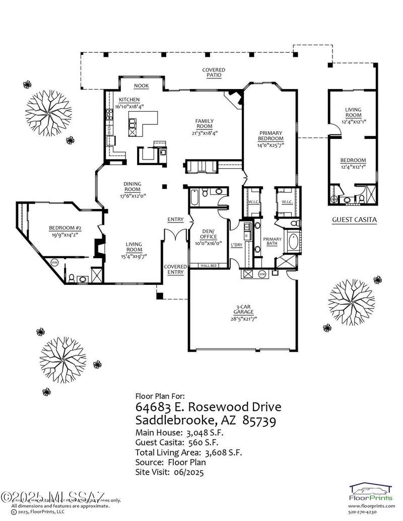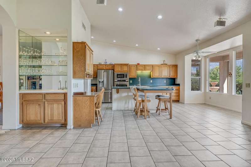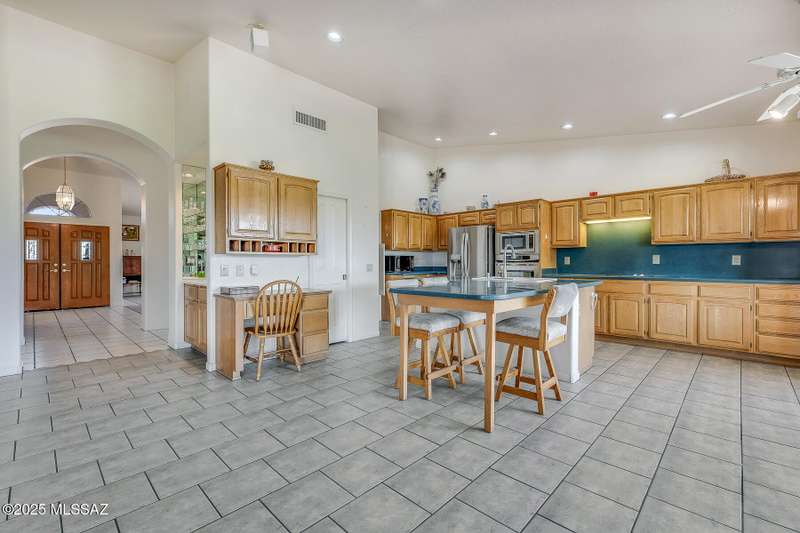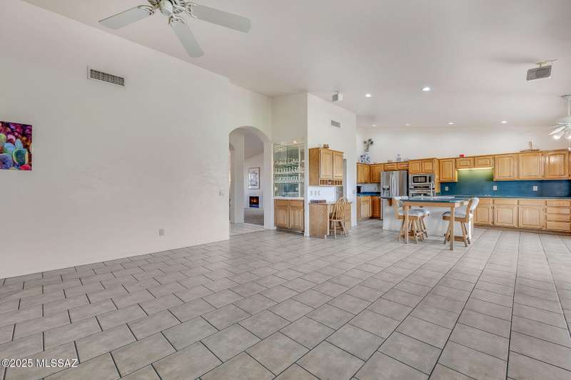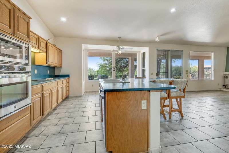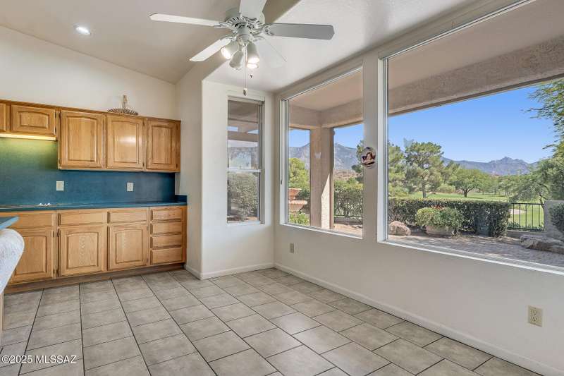 Welcome to one of the most desirable lots in SaddleBrooke, where breathtaking mountain, golf course, and sunrise views greet you daily--along with the occasional visit from local deer. This beautifully 1 story designed home offers a spacious 2BD/3BA main house plus a detached 1BD/1BA casita (560 sq ft), ideal for guests, a private office, gym, or creative studio and highly sought after 3-car garage. With over 3,000 sq ft in the main residence, you'll love the generous layout featuring formal living and dining rooms a versatile den, and an inviting family room that flows seamlessly into a gourmet chef's kitchen perfect for entertaining or simply enjoying the space.The expansive owner's suite is a private retreat with dual walk-in closets, a spa-like bathroom