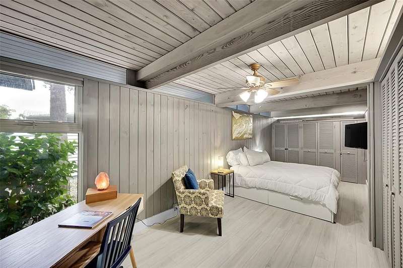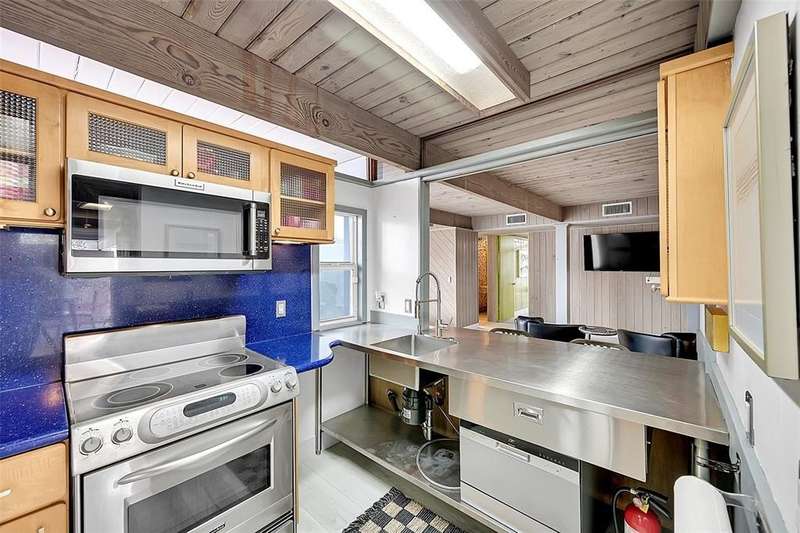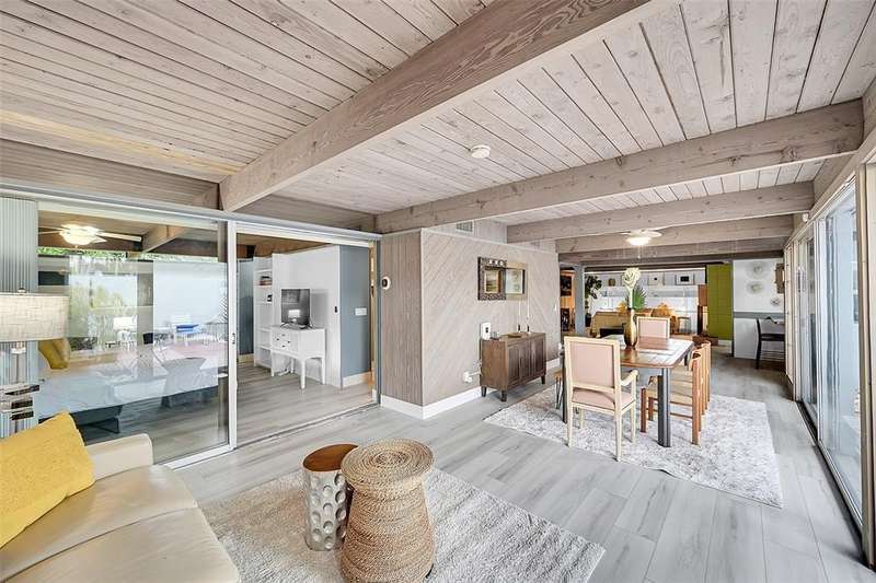 Spacious beach house designed by renowned architect Dan Duckham in Lauderdale by the sea. Three blocks to beach with no through traffic. Mid century modern design. Updated with new air conditioner, impact doors and windows, kitchen, electric, and roof. Huge master suite with walk in closet, amazing views, and gorgeous bathroom. Wood burning fireplace, open plan living room with walls of sliders for amazing views. Frank Lloyd Wright inspired, open beams, & wall tops w-glass = lots of natural indirect light! ALL NEW FLOORING! HOME CAN BE RENTED FOR 6 MONTHS AT $5500. ALSO AVAIL AS SHORT TERM RENTAL ON VRBO AND AIRBNB. Home can be rented for 6 months or yearly