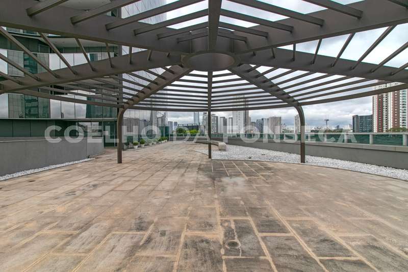 O conjunto possui um espaço aberto com pergolado, ideal para empresas que trabalham com processos criativos e desejam proporcionar ambientes diferenciados aos seus colaboradores.