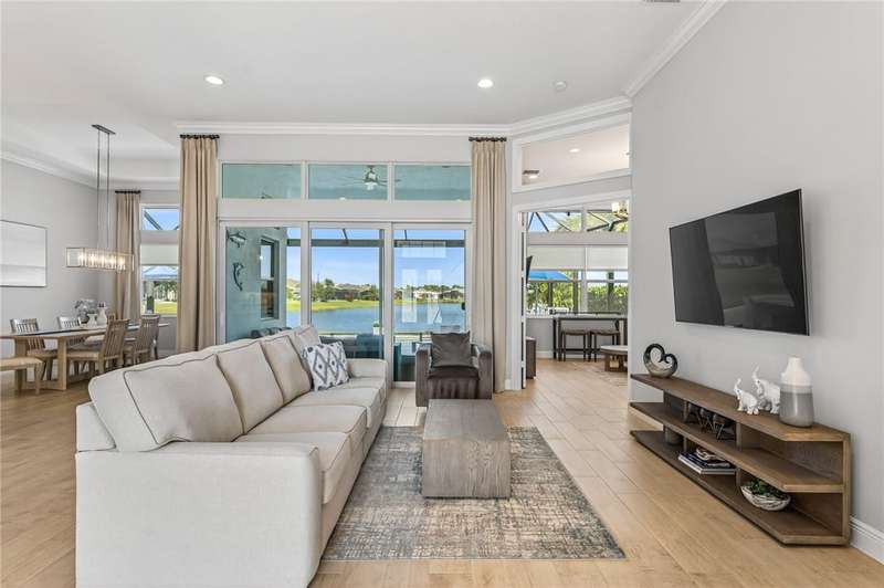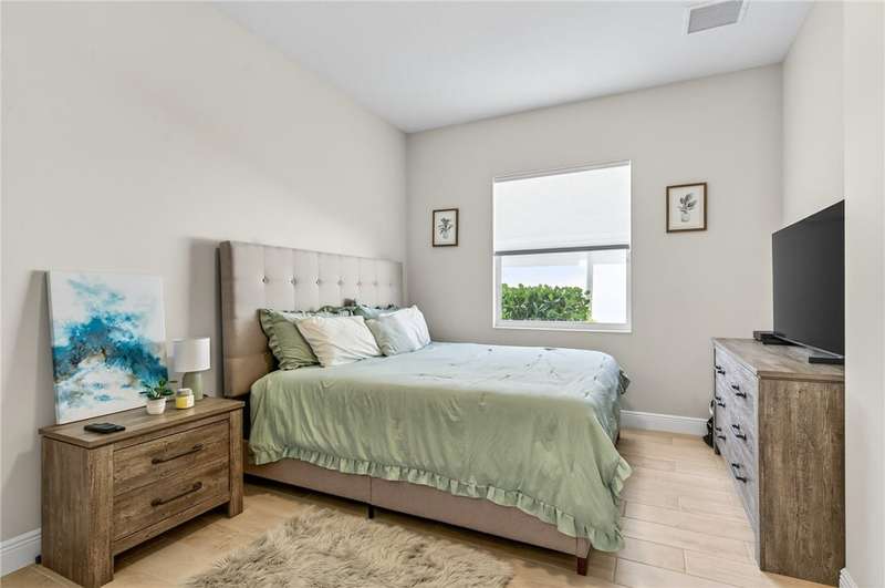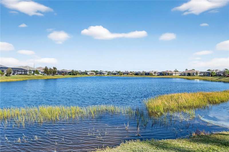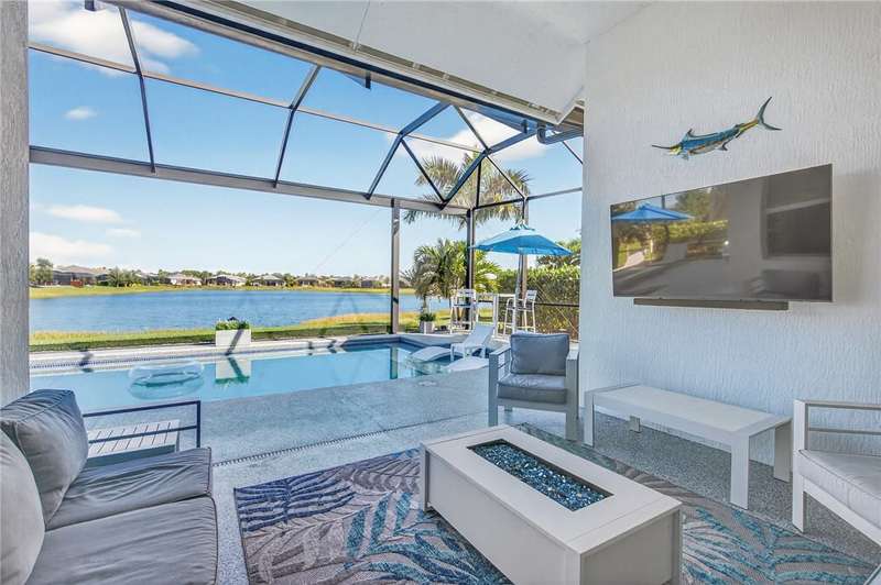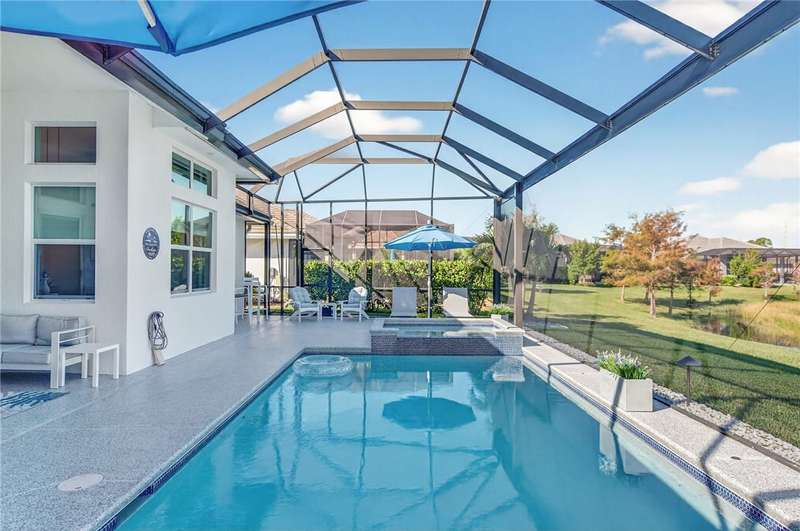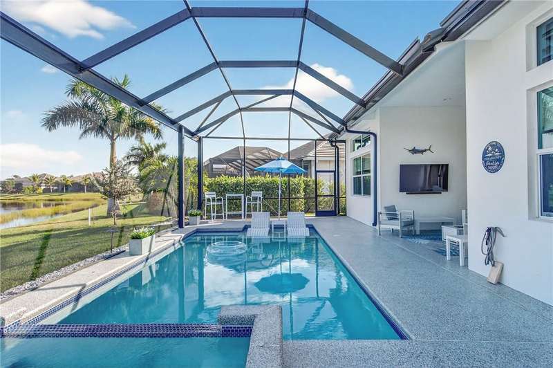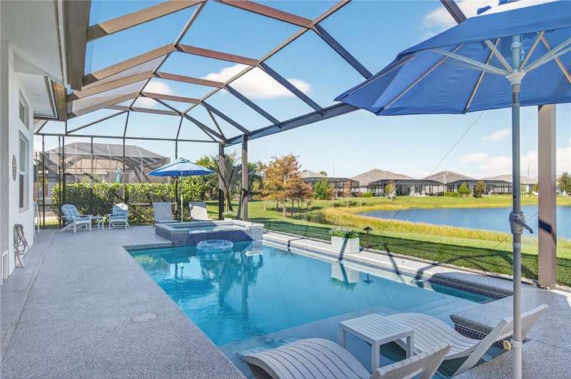 Stunning ONE-OWNER lakefront 2022 GHO pool home, lightly lived-in & like new! Incredible Value! Customized Redmond model w/4 beds + flex/office. Neutral coastal palette, great room design, ss KitchenAid appliances, tile floors, & split plan. Screened lanai w/saltwater pool & spa overlooking peaceful lake. Furniture/turnkey pkg avail separately incl. 4 TVs. Minutes to Bent Pine CC (memberships avail). Fly Breeze & enjoy the Florida lifestyle! (Sizes Approx)