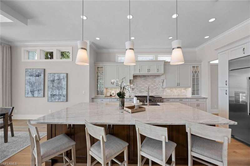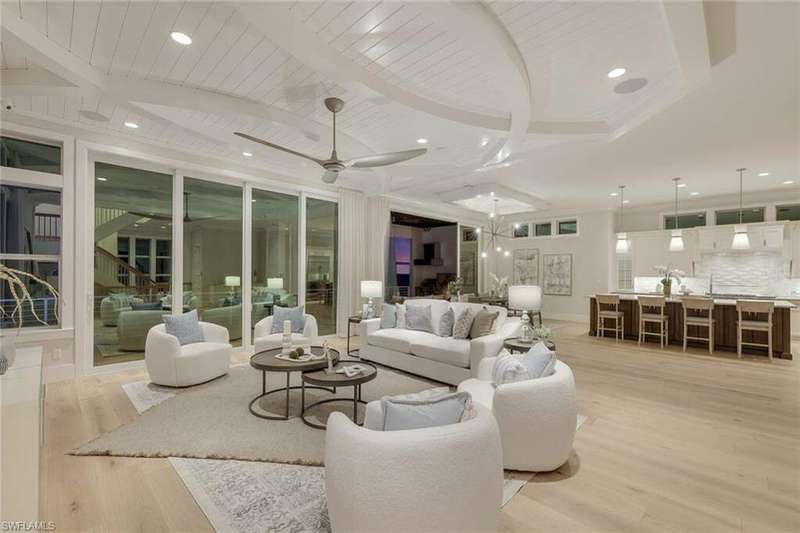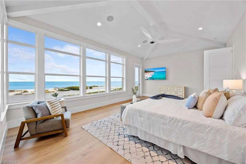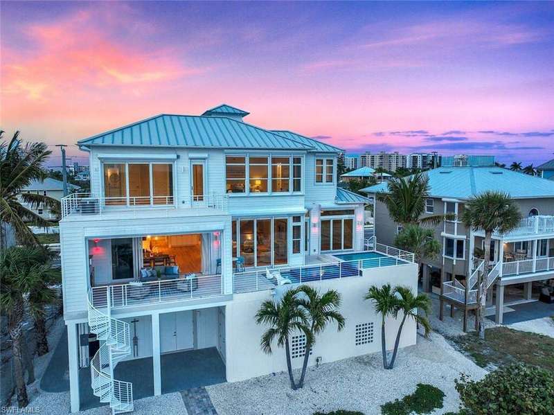 OFFERED FURNISHED! Enjoy the Gulf & Beach front lifestyle to its fullest with this newly remastered (ALAIR Custom Homes 2023/2024) coastal living, custom pool home. Originally built in 2015 by Gary W. Lau Inc. Custom Homes, here's the lifestyle you've always wanted & deserved with the scenic, stunning, unobstructed, shimmering views of the Gulf of Mexico right out your back door. From the moment you step into the foyer & take your private elevator or the custom-built staircase to the other levels, you know this is a special place for sharing with family & friends. As the home unfolds before you, your immediate focus may take you to the awe-inspiring expanded views of the Gulf of Mexico, its powdery-white sandy beach or the contrasting multi-shade turquoise gulf waters. Perhaps your eyes capture the spacious living room with coastal crisp decor', natural sunlight, custom architectural ceilings, & the sprawling open floor plan. Then again, you may divert to the well-appointed kitchen that any chef would envy with new SS appliances, propane gas stove & oven, new tailored cabinetry, quartzite counter tops, glass-tiled backsplash, walk-in pantry & custom wood & tile flooring. Then again, it may direct you to the elevated pool & spa, the outdoor kitchen & lanai complete with gas fireplace & circular stairway to ground level where an outdoor shower, gas fire pit, direct access to the beach & gulf waters await you. Whichever, you'll be captivated & know, there is much more yet to see. Each of the 4 bedrooms are ensuites & there is a separate powder room as well. Custom closets, day-bar on both the 2nd & 3rd levels add to purposeful function & convenience. The list goes on, western-facing 3rd floor open balcony, 6-car garage, generator, electric hurricane shutters on the west-side of the home, impact resistant windows & doors, heavy gauge metal roof, new A/C, Security System, 350-gallon propane tank, new pool equipment & concrete block construction. The lot extends approximately 740' to the high-water mark on a select stretch of beach. The adjacent "buffer-zone" & designated bird sanctuary is home to Osprey, Eagles, Spoonbills & Pelicans along with a variety of other species that are indigenous to Florida to come & go as they please. The home has a set-back position from public beach goers, offering the utmost in privacy. Sunsets, as well as the distant lights of Naples, Bonita Beach & Sanibel on clear nights, add to the ambiance & will sweep you into your own oasis.
