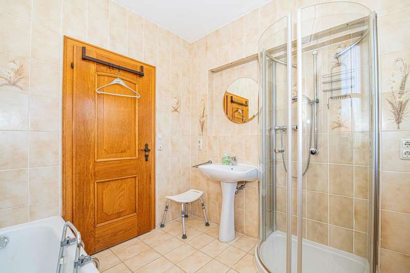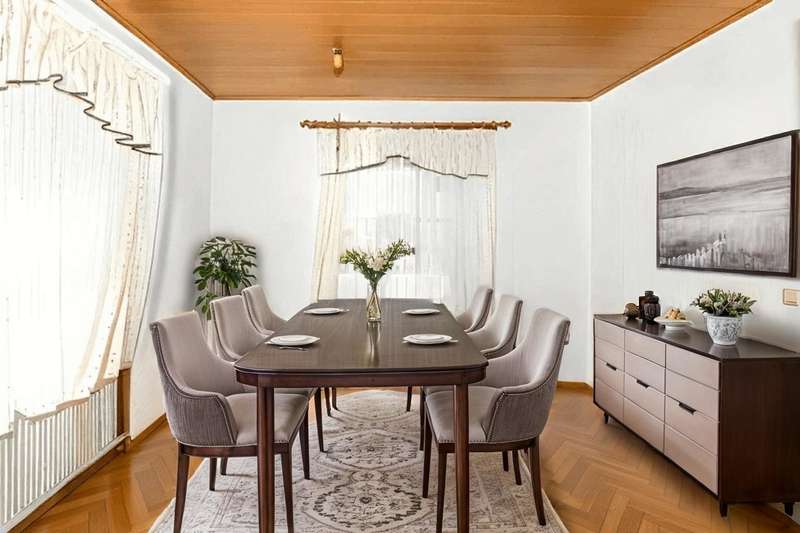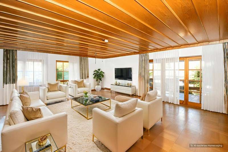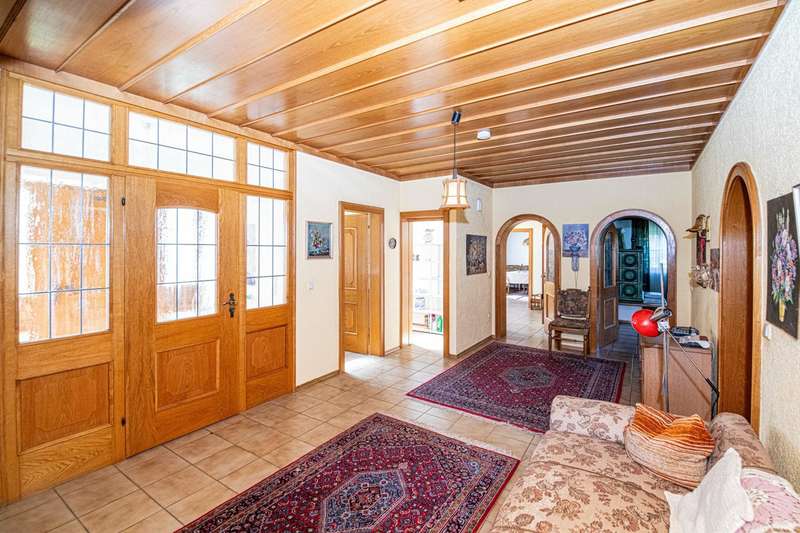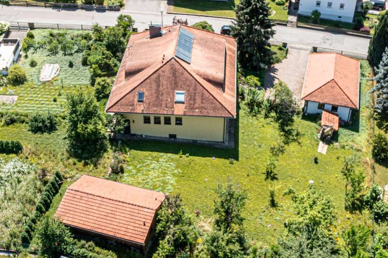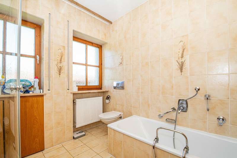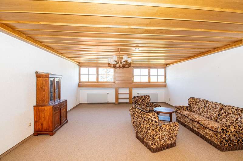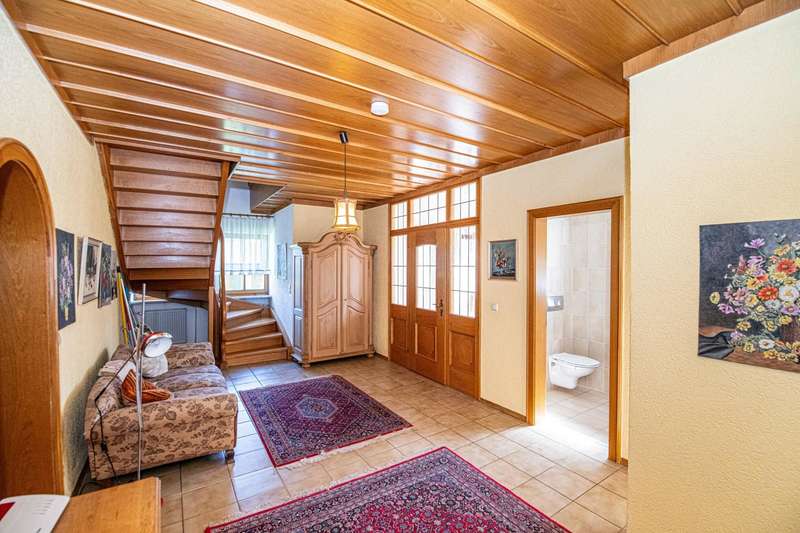 This spacious two-family house offers a living space of approx. 310.8 m² and is situated on a spacious plot of approx. 1702 m². Completed in 1982, the house boasts classic architecture and a well-thought-out room layout that allows for a variety of uses. This three-storey house offers plenty of space for a large family or the possibility of use as a multi-generational home. The first floor comprises a kitchen with an adjoining dining room, which makes the room a cozy meeting place for the whole family. Right next to it is the spacious living room, which offers direct access to the terrace and the large garden. Here you can enjoy relaxing hours outdoors. There is also a guest WC, a bedroom, a dressing room and a further room on this level, which can be used flexibly as a study or guest room. The bathroom on the first floor is equipped with a shower and a bathtub and thus offers all the amenities of a bathroom. A practical storage room rounds off the space on the first floor. On the second floor there are a further four rooms, a kitchen with adjoining dining room, a bathroom with shower and bathtub and a spacious living room. The attic has been converted and provides additional living space, a playroom or guest accommodation - the possibilities are endless. The basement of the house boasts a variety of rooms. It includes a laundry room, a boiler room and four further rooms that can be used as storage or hobby rooms. A further bathroom with shower offers additional comfort. The house's central heating system ensures a pleasant heat supply in all living areas. A particular highlight is the spacious garden, which offers ample space for outdoor recreation and leisure activities. A practical garden shed and three garages, which provide ample space for vehicles and additional storage space, round off the outdoor offerings. This property is an excellent choice for families with plenty of space or for buyers who would like to take advantage of the rental option. We would be delighted to invite you to view this property and see for yourself. On request, you can view this property in advance in a 360-degree panoramic tour - from the comfort of your own home!