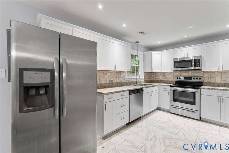 Welcome home to this charming and move-in ready ranch at 3800 Grizzard Drive. Tucked away on a quiet, partially wooded corner lot, this home offers the perfect blend of comfort and convenience. Step inside and be greeted by a bright and open floor plan, featuring brand-new LVP flooring in the living and dining rooms and new carpet throughout the hallway and all three bedrooms. The entire home has been refreshed with a coat of new paint, creating a clean and welcoming atmosphere. The kitchen and bathrooms were beautifully renovated in 2022, boasting sleek granite countertops and stainless steel appliances that are all included with the home. This home has also been updated with efficiency in mind, featuring a new high-efficiency heat pump (2022) and new high-efficiency vinyl windows (2022), ensuring your comfort year-round. Situated on a spacious 1/3-acre lot, you'll love the peaceful setting while still being just a short drive from Hull Street, Midlothian Turnpike, and Chippenham Parkway, offering easy access to shopping, dining, and major roadways. Charming and Updated Home in a Quiet, Convenient Location.