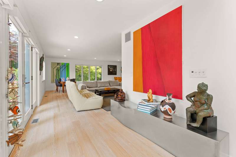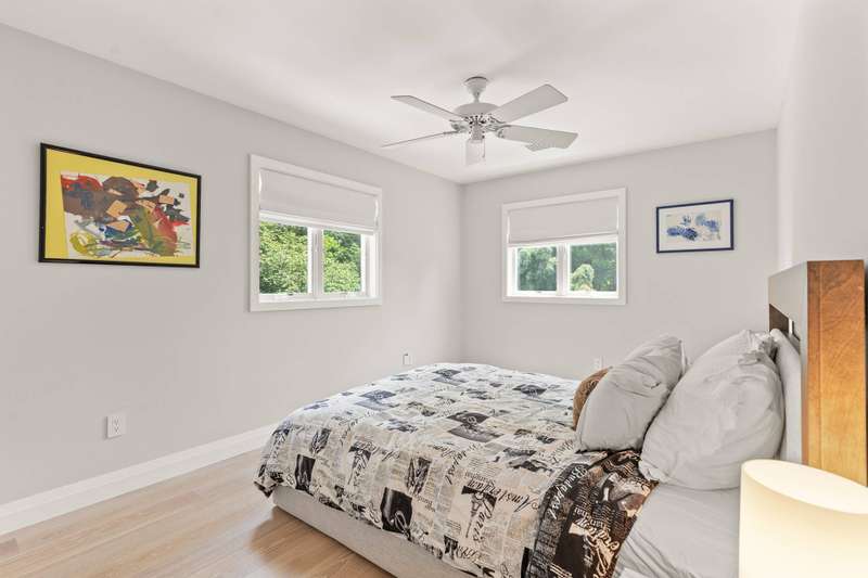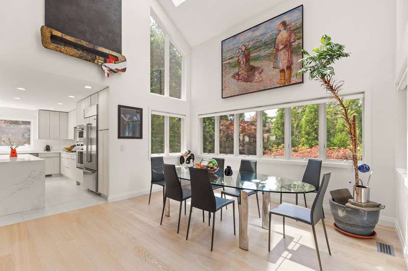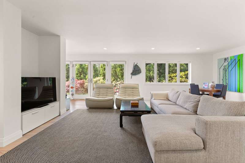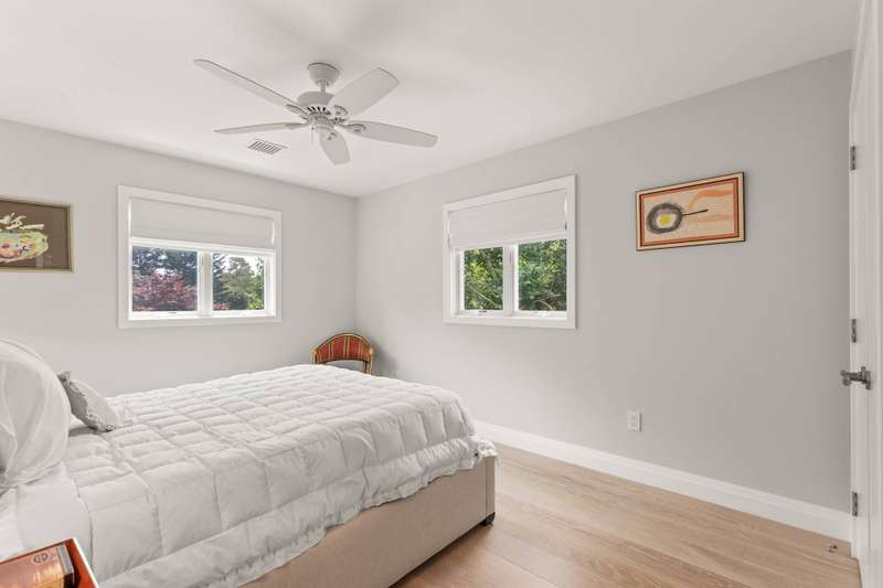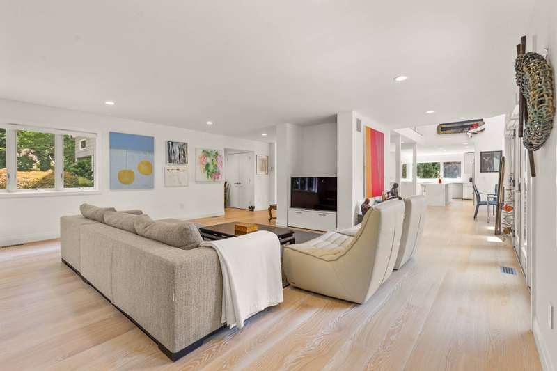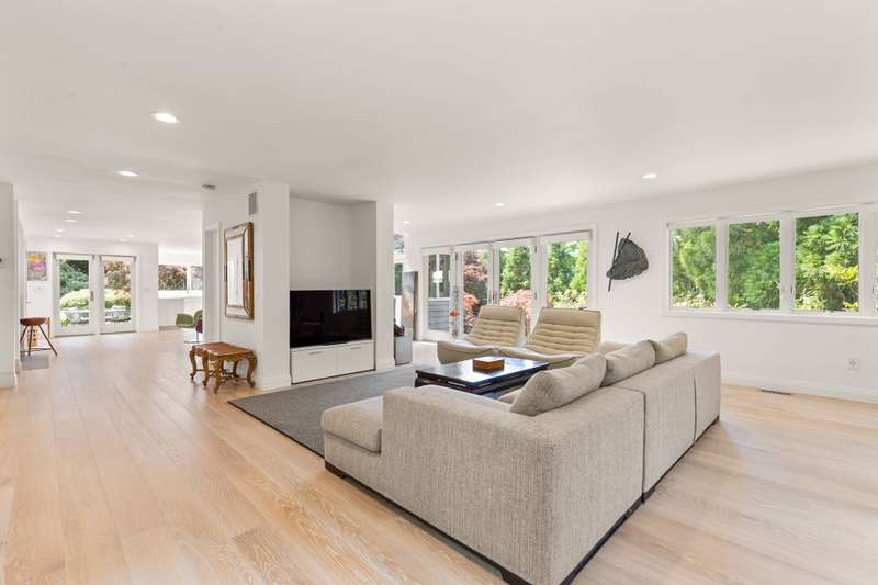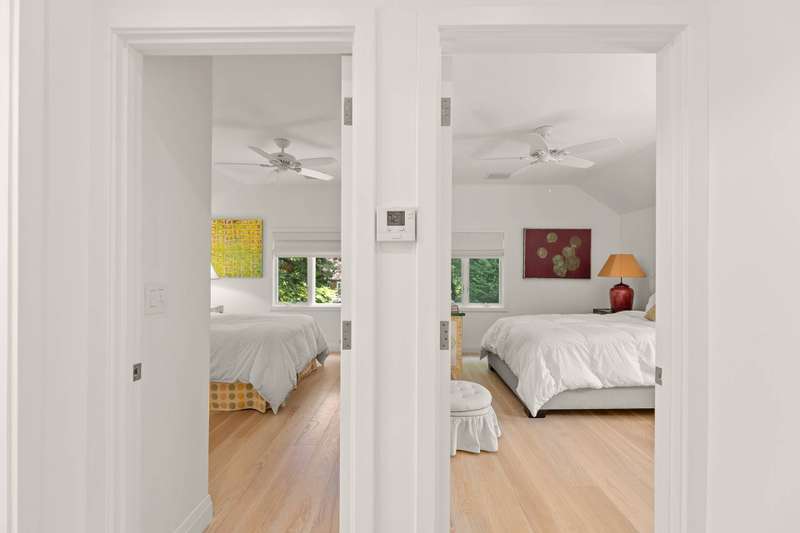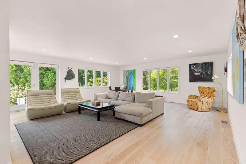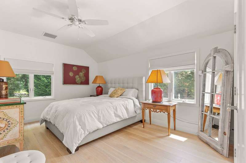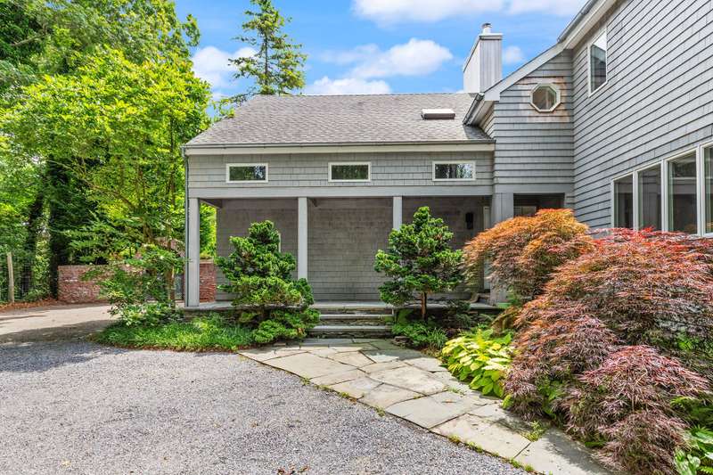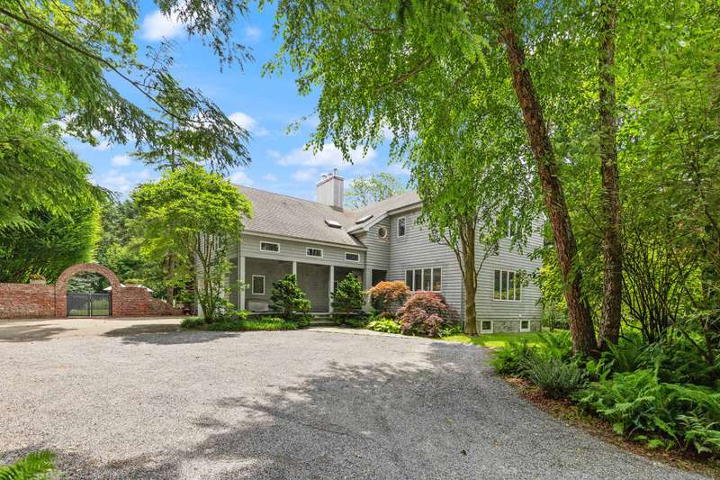 Discover refined Hamptons living in this beautifully designed 5-bedroom, 3.5-bathroom residence, ideally located south of the highway in the heart of East Hampton Village. Set on .53+/- acres of professionally landscaped grounds, the home offers a serene retreat with a heated gunite pool surrounded by lush, manicured gardens. Inside, the home features a large open living room with a fireplace, a welcoming lounge with a fireplace, and a formal dining area with a vaulted ceiling perfect for entertaining. The chef's kitchen showcases white waterfall stone counters, a spacious island with counter seating, and professional-grade stainless steel appliances. The primary suite is a sanctuary with a vaulted ceiling, sitting area, and spa-like bath featuring a freestanding soaking tub and skylights that bathe the space in natural light. Four additional bedrooms provide comfort and privacy for family and guests. This exceptional rental offers the best of Village living-just moments from shops, fine dining, and entertainment, and only 1.3 miles from East Hampton's renowned Main Beach.