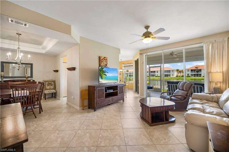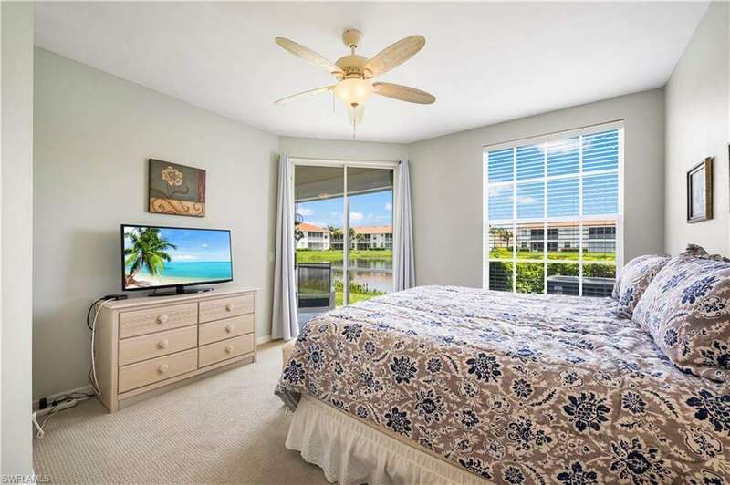 ALREADY RENTED FOR JANUARY-APRIL 2026 FOR $4500 PER MONTH + 11.5% SALES TAX. FIRST FLOOR FULLY FURNISHED, TURNKEY, 1 car garage condo. $1500 Security Deposit + $150 exit cleaning fee. Landlord pays electric, water, cable, internet. This must be one of the best views in the gated community of Gulf Harbour!Relax on your lanai overlooking the serene lake views of Tamarind Cay. Just bring your clothes and toothbrush!Inside you will find this fabulous,2 Bed + office/den 2 bath,Tile floors, carpeted bedrooms,GE appliances in kitchen with Granite countertops. Views of the lake from the master ensuite,main living area, kitchen and breakfast nook area AND all have access to the lanai. KING bed in primary ensuite, 2 walk-in closets, linen closet, comfort height dual vanities, soaking tub and a walk-in shower. 2nd bedroom with QUEEN bed, separate bathroom with tub/shower combo and a single vanity. Office/Den has tile flooring and double doors. Just a short walk to the community pool where there are many social events. 25 Min. to the RSW International airport, shopping, fine dining and Ft. Myers, Sanibel beaches! $1500 SECURITY DEP.150 EXIT CLEANING FEE.NO PETS ALLOWED. NO SMOKING ALLOWED.