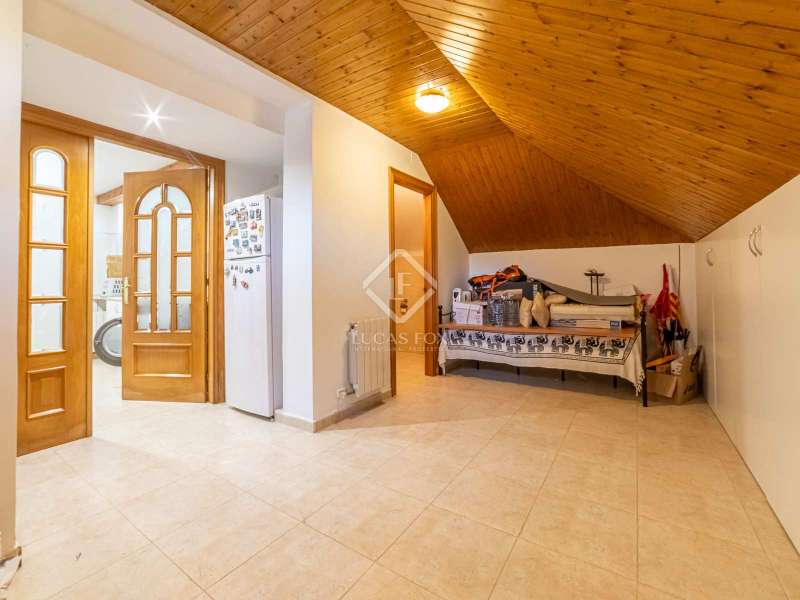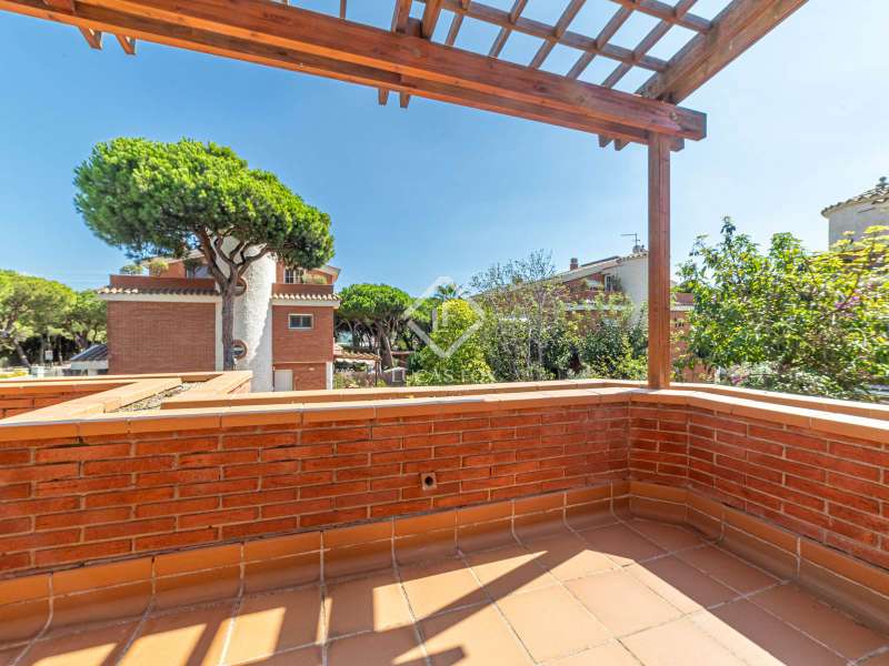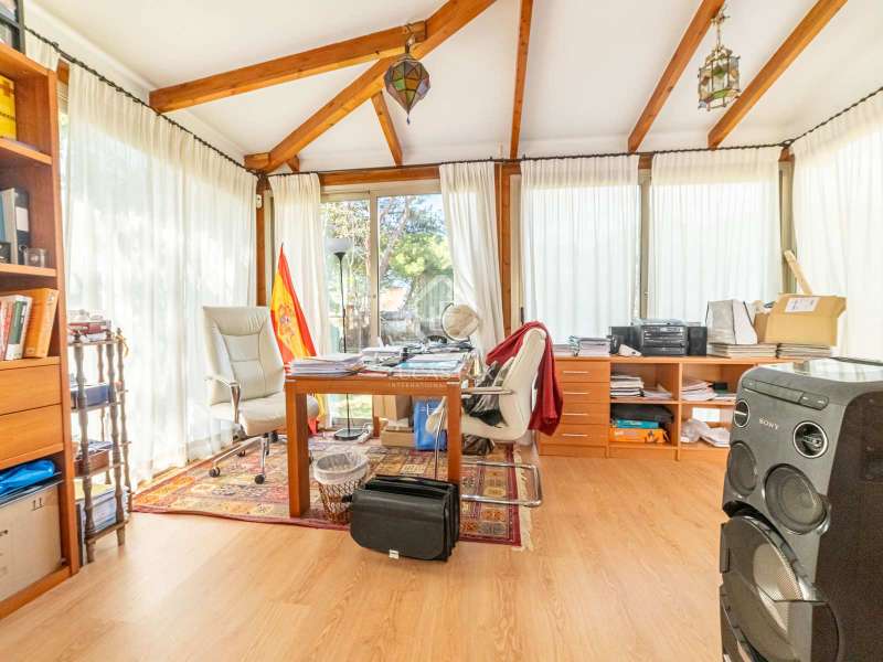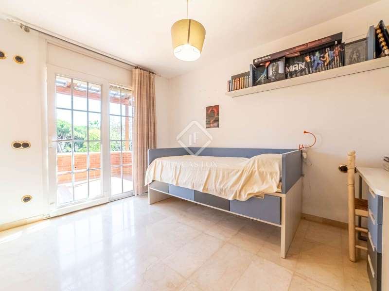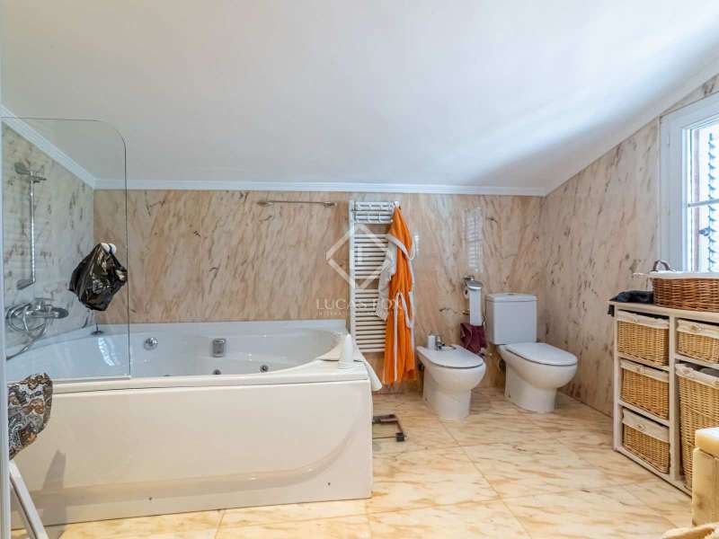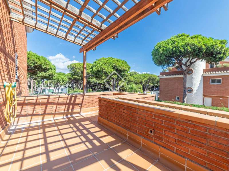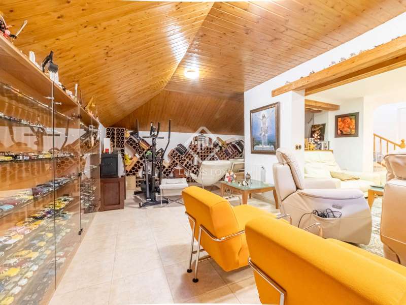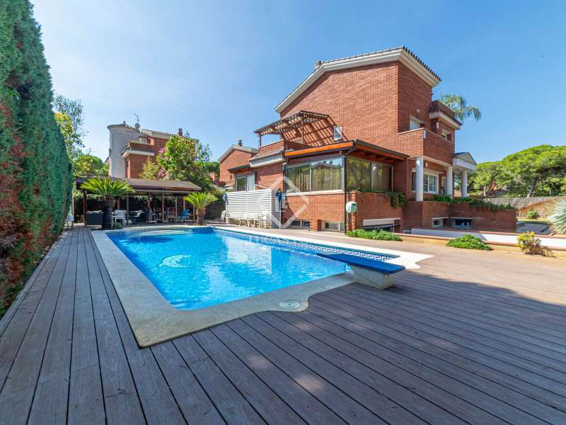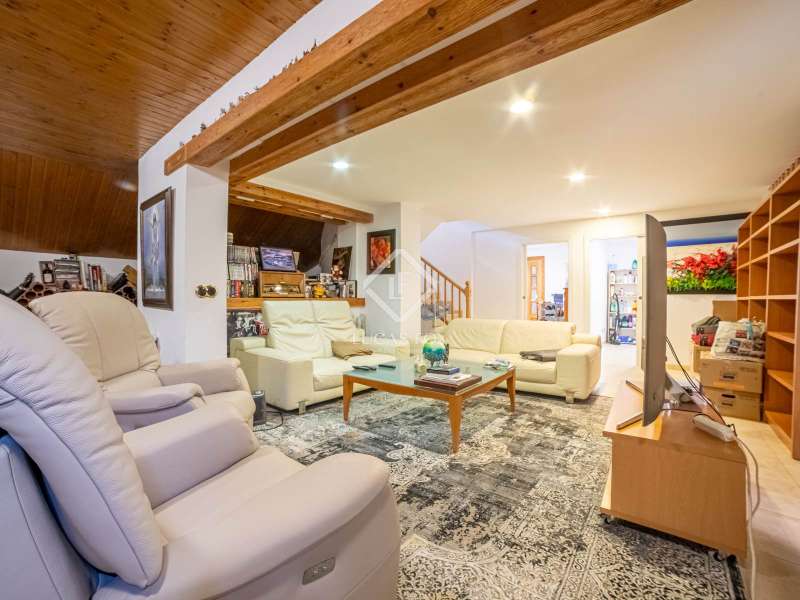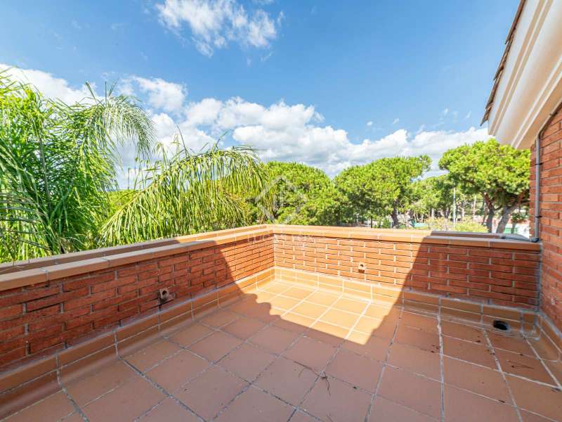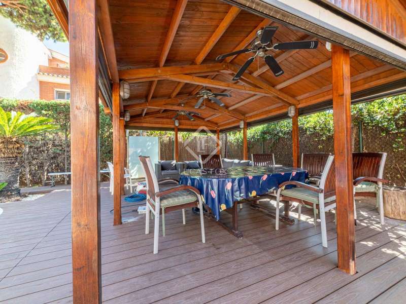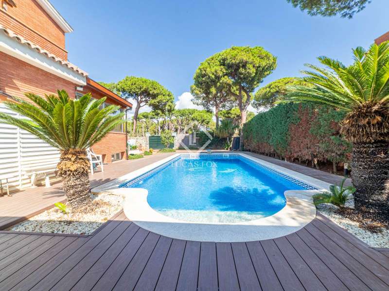This exclusive modern brick house of approximately 370 m² was built in the year 2000 and is on a plot of 1,056 m² with a private corner garden with 2 porches, a chill out area, barbecue and a swimming pool. It enjoys an excellent location in Gavá Mar, walking distance to the beach and public transport to Barcelona. The property is spread over 4 floors. On the ground floor we find a spacious living room – dining room and a guest toilet. The equipped kitchen diner has access to the rear garden and there are 2 rooms on this level that are reached via the living room and could be used as a relaxation area and a study. The first floor has 3 bedrooms, 1 of which is en suite with a terrace, another is a double bedroom with a terrace and the last is a single bedroom. The second and third bedrooms share a bathroom. The attic level has a 25 m² bedroom suite with a hydromassage shower and bath. This level also has a little terrace. In the basement we find a 100 m² lounge and games room with a wine cellar and bar. There is also a service bedroom and bathroom here. Outside we find a lovely large garden with 2 porches with a chill out area; one of which is right in front of the beautiful private swimming pool and barbecue area. The property also boasts parking spaces for 4 or 5 vehicles. An ideal exclusive family residence in a superb location in Gavá Mar.