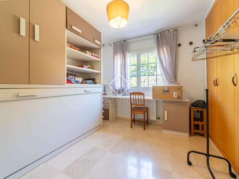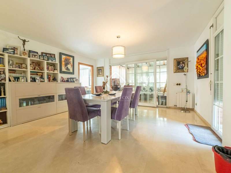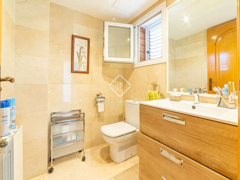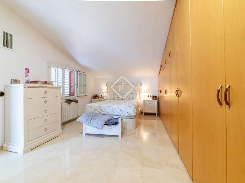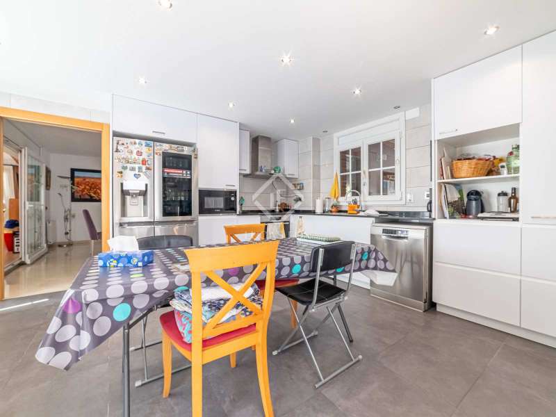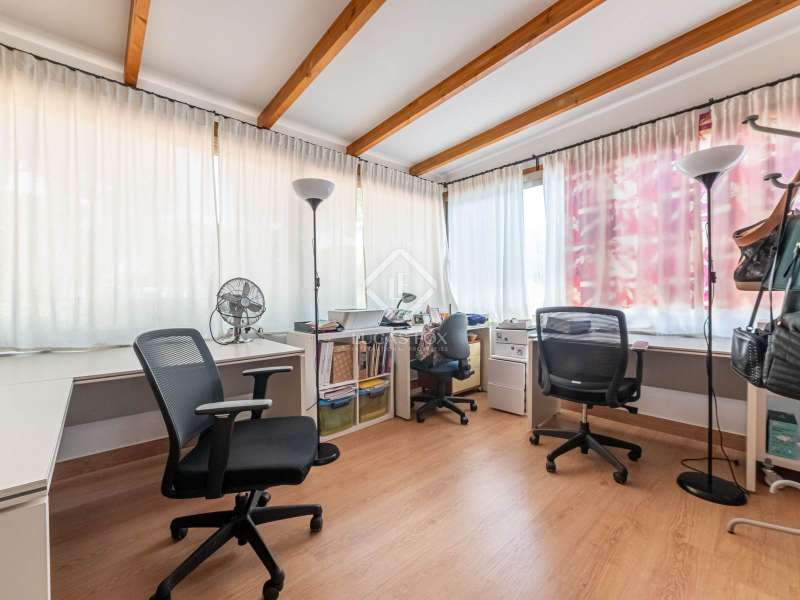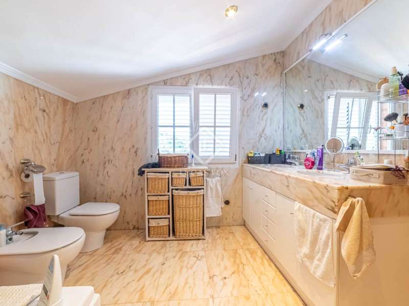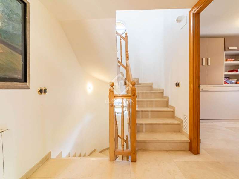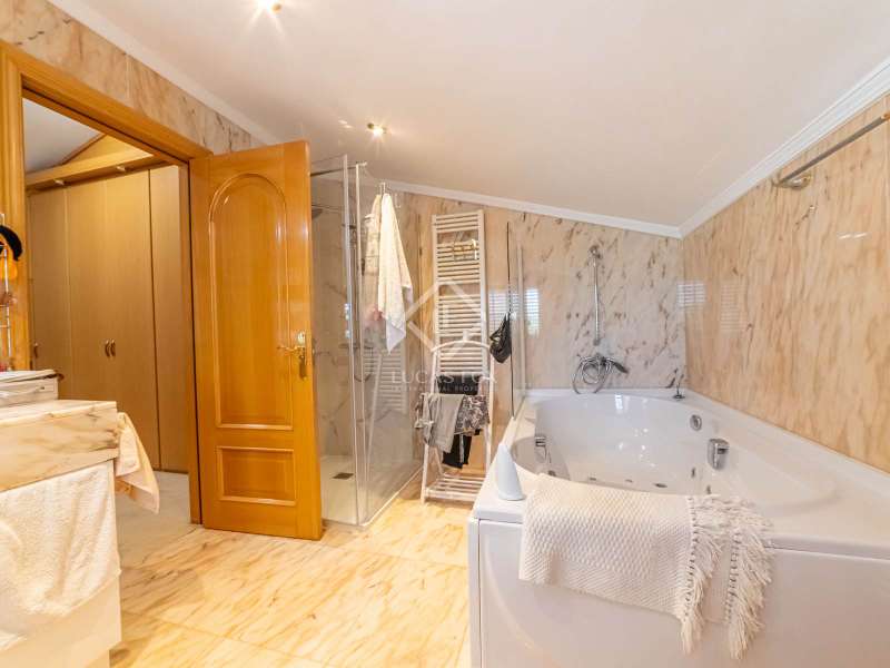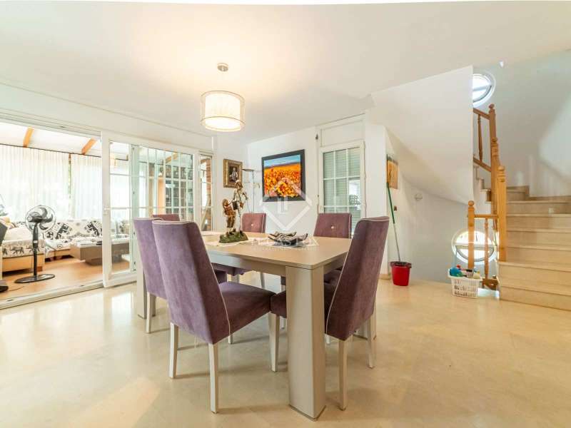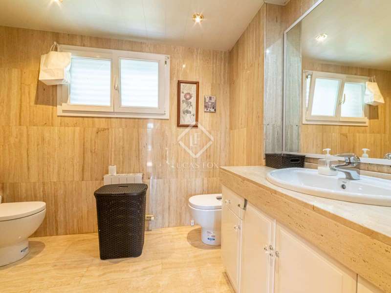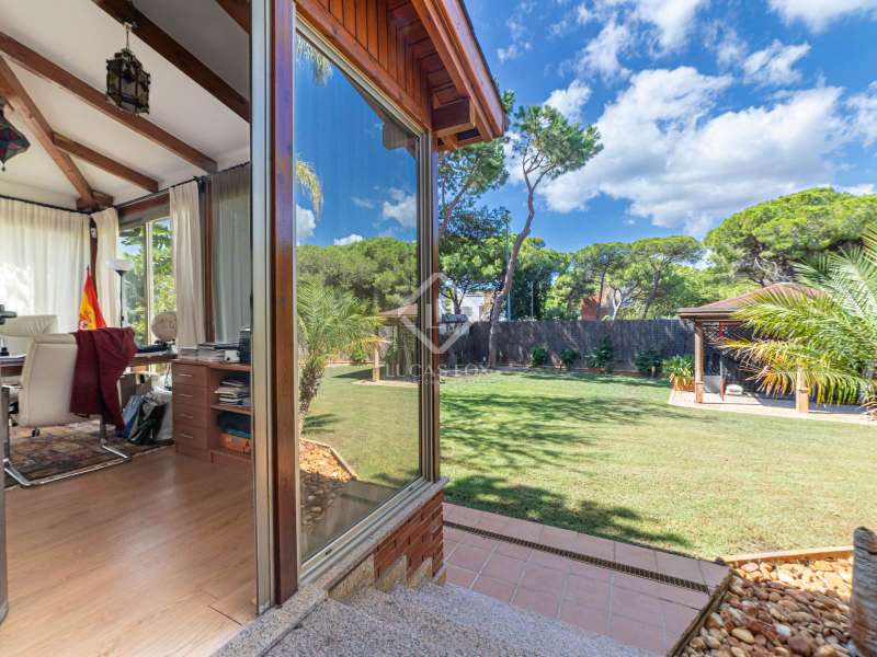 This exclusive modern brick house of approximately 370 m² was built in the year 2000 and is on a plot of 1,056 m² with a private corner garden with 2 porches, a chill out area, barbecue and a swimming pool. It enjoys an excellent location in Gavá Mar, walking distance to the beach and public transport to Barcelona. The property is spread over 4 floors. On the ground floor we find a spacious living room – dining room and a guest toilet. The equipped kitchen diner has access to the rear garden and there are 2 rooms on this level that are reached via the living room and could be used as a relaxation area and a study. The first floor has 3 bedrooms, 1 of which is en suite with a terrace, another is a double bedroom with a terrace and the last is a single bedroom. The second and third bedrooms share a bathroom. The attic level has a 25 m² bedroom suite with a hydromassage shower and bath. This level also has a little terrace. In the basement we find a 100 m² lounge and games room with a wine cellar and bar. There is also a service bedroom and bathroom here. Outside we find a lovely large garden with 2 porches with a chill out area; one of which is right in front of the beautiful private swimming pool and barbecue area. The property also boasts parking spaces for 4 or 5 vehicles. An ideal exclusive family residence in a superb location in Gavá Mar.