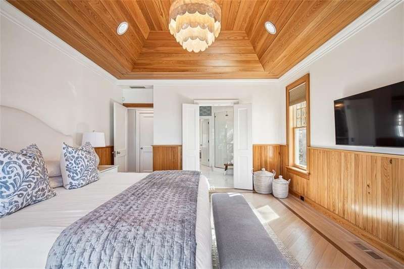 Down the road from historic Watch Hill sits this architecturally designed shingled Cottage. Sited on 1.81 acres with over 6,000 sq. ft. of space, you can entertain a crowd or explore multi-generational living with 3 suites. The completely renovated first floor shines with refinished floors, a beach stone fireplace, a floor-to-ceiling shiplap fireplace accent wall, a coffered ceiling, custom shelving, brand-new white oak stair railings, and all-new bathrooms. High-end appliances elevate the cook’s kitchen including a Bertazzoni Induction stove and Thermador Fridge. The 1st-floor primary suite provides a private screened-in porch and ensuite bath with a soaking tub, while 2 additional bedrooms with 1.5 baths, laundry, 2 living rooms, and 2 gas fireplaces create an ideal hub for daily life. The lower-level walkout features sliding doors opening out to a bluestone patio, a gas fireplace, kitchen with bar seating, a bedroom, full bath, workout room, and office. To top it all off, the second floor features an additional living room, kitchen, spacious game room, and office, along with a charming ensuite bedroom that boasts its own balcony, offering stunning sunset views over the pond. Other features: Alarm System, Sprinkler System, Heated Garage