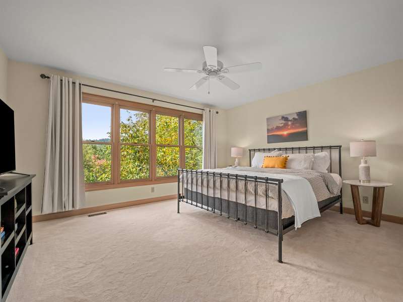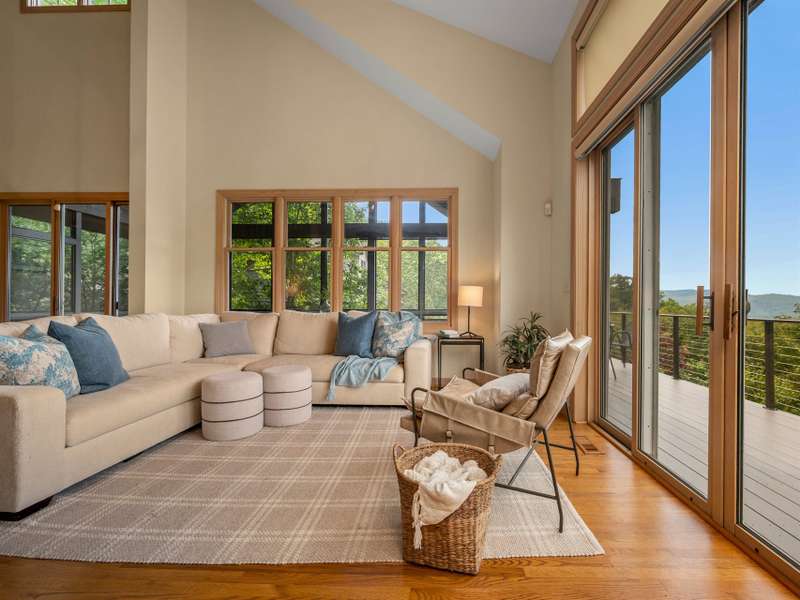 Welcome to your stunning mountain retreat in the prestigious Champion Hills community, home to Tom Fazio's renowned ?Mountain Masterpiece? golf course. This beautifully designed residence offers the best of mountain living, featuring an open-concept main level with two bedrooms and two full baths, all thoughtfully arranged for effortless one-level living plus two additional levels for family and guests. Step onto the expansive screened porch or one of the multiple decks?complete with modern cable railing?and take in the breathtaking, long-range western views of the Blue Ridge Mountains. Whether it's a vibrant sunset or the serene fog rolling through the peaks, the scenery is spectacular all year round. The upstairs guest suite provides privacy and comfort, complemented by a loft space perfect for a home office, reading nook, or creative retreat. The spacious lower level features a large family room with two sliding glass doors that open to a wrap-around deck, ideal for entertaining or simply enjoying the crisp mountain air. A fourth bedroom and full bath complete this level, offering the perfect space for company. Nestled in a resort-style community just 8 minutes from downtown Hendersonville, this home is a true blend of comfort and natural beauty. Don't miss the opportunity to live in one of Western North Carolina's most sought-after communities.
