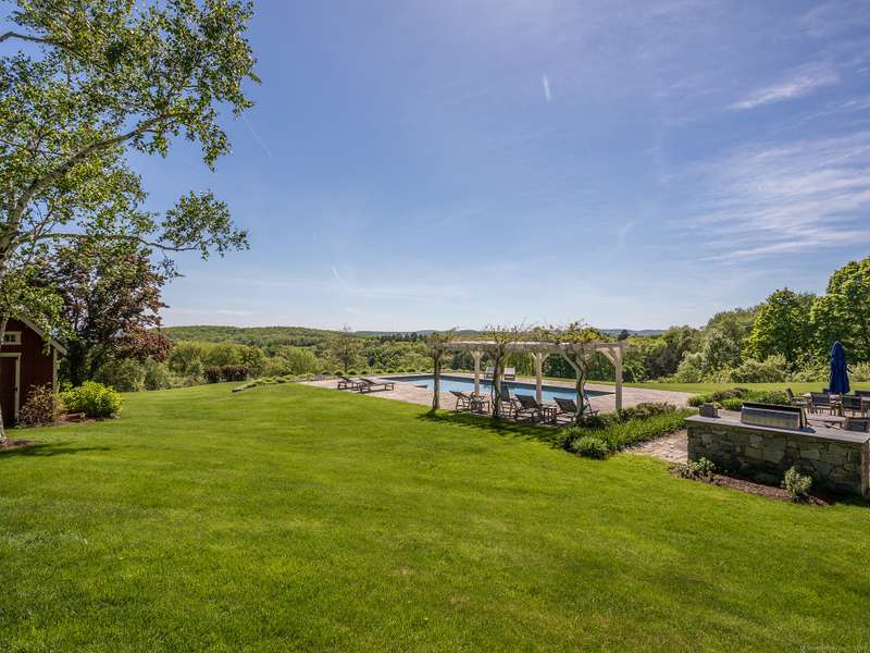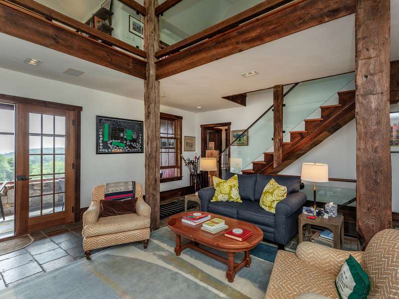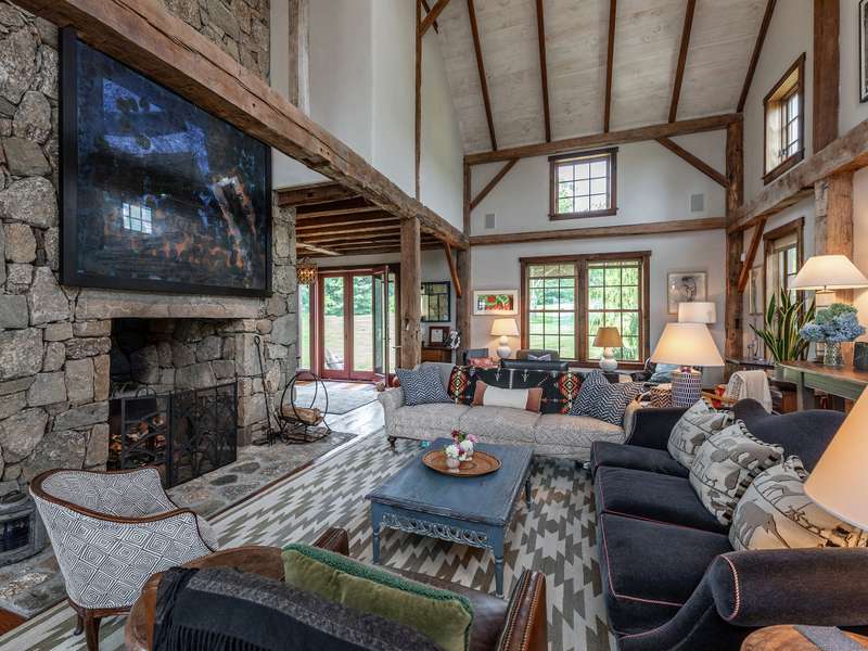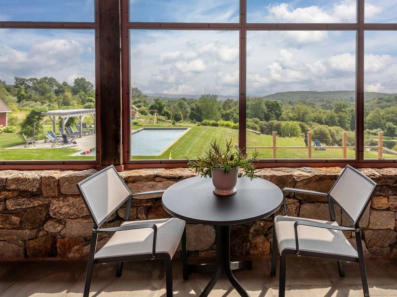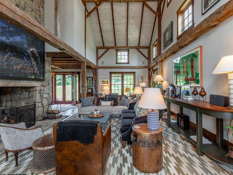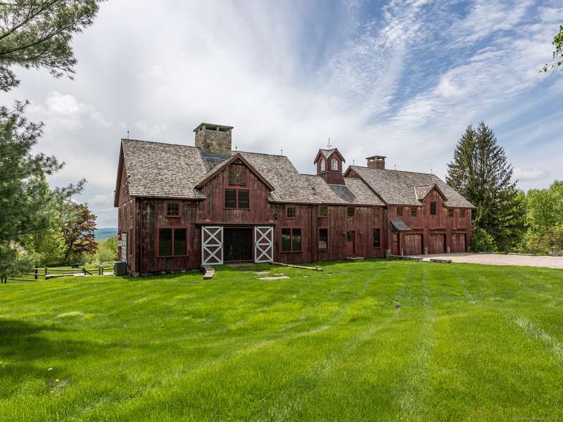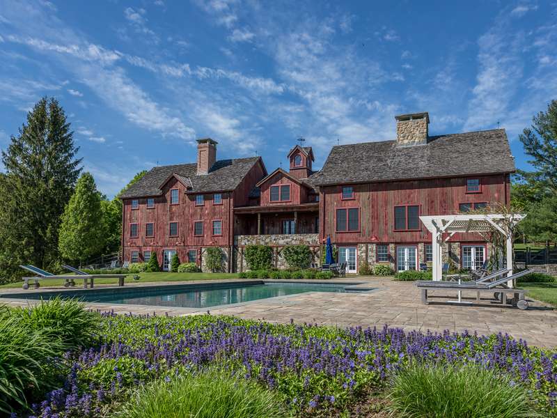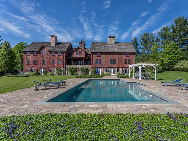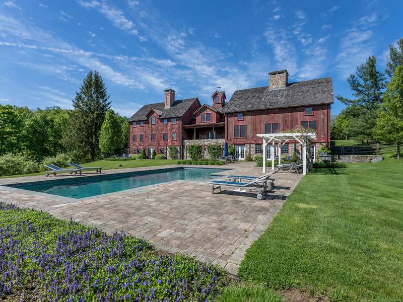 Uber Chic Barn House. Constructed by master Barn builder, Ed Cady, this is one of his finest collaborations. The impressive structure takes in distant VIEWS to the South and West and is sited perfectly to relate to the landscape, pool, pond, and surrounding countryside. The great room features a massive 2 sided stone fireplace, dramatic vaulted ceiling, 9 ft custom barn doors, and floor to ceiling windows. The gourmet kitchen walks out to a covered porch for dining and relaxing with a stunning view of endless rolling mountians. Upstairs, we find the primary suite with walk in closet and bathroom with radiant heat and steam shower. Cross the open hallway past the reading/office nook to enter a 2 bedroom wing with its own central media room/playroom. The walkout lower level incorporates guest space with 2 bedrooms, game room, wine cellar, kitchenette/cabana. The entire home impresses with the use of hand hewn beams, wide plank antique oak or reclaimed slate flooring, siding from a Rhode