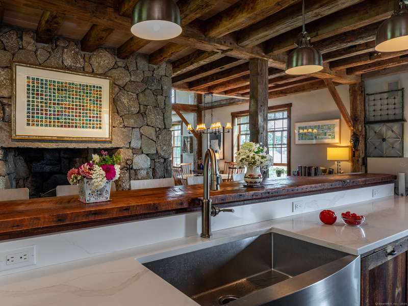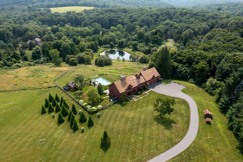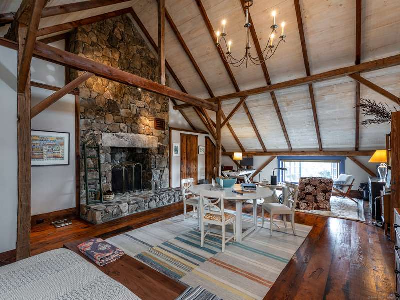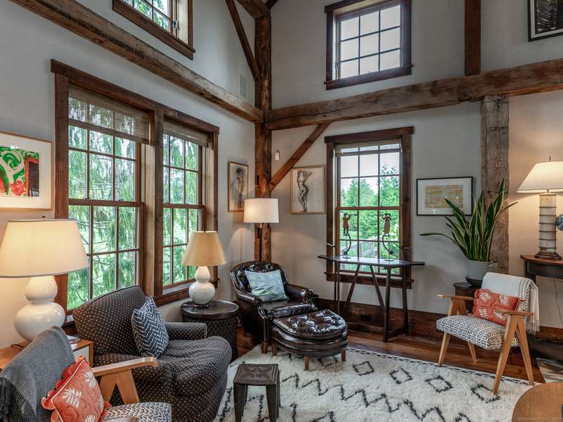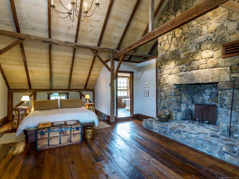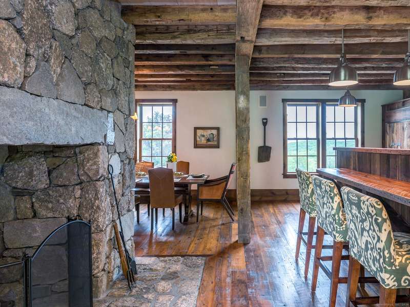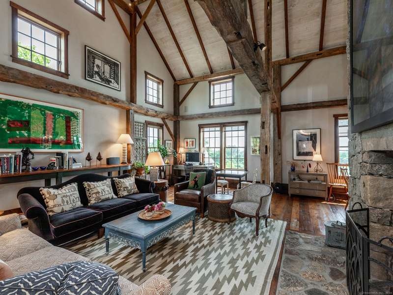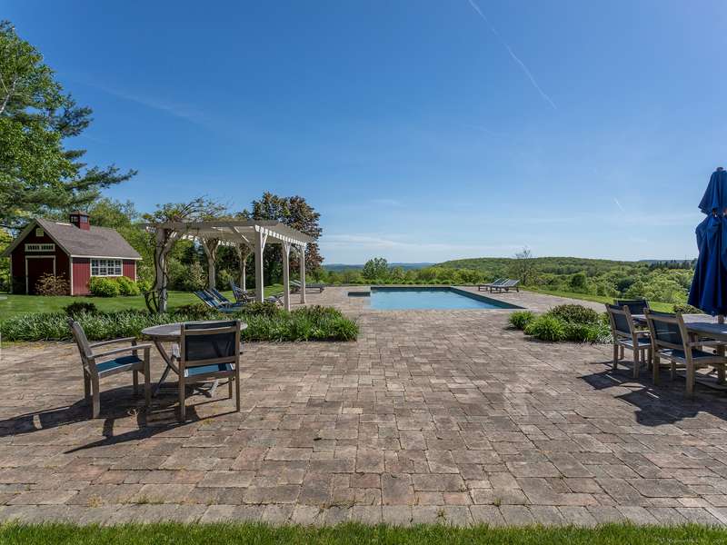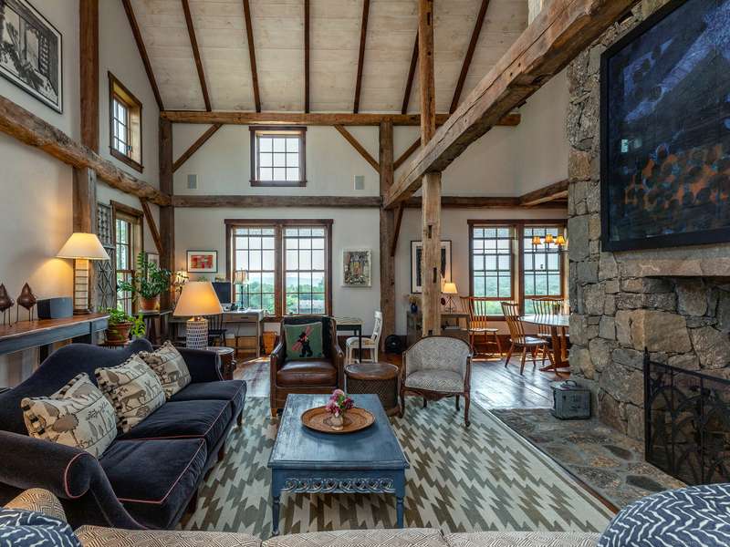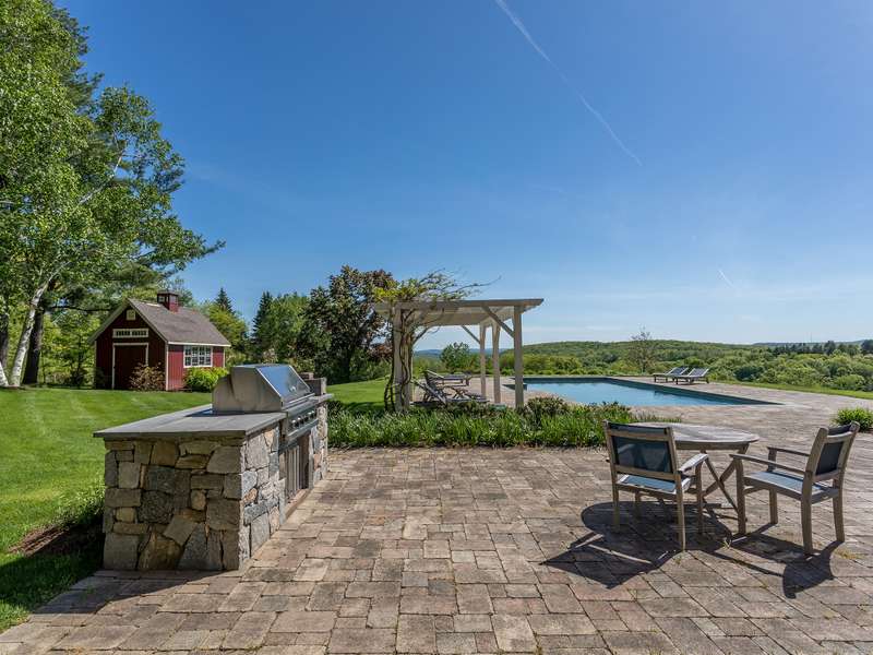 Uber Chic Barn House. Constructed by master Barn builder, Ed Cady, this is one of his finest collaborations. The impressive structure takes in distant VIEWS to the South and West and is sited perfectly to relate to the landscape, pool, pond, and surrounding countryside. The great room features a massive 2 sided stone fireplace, dramatic vaulted ceiling, 9 ft custom barn doors, and floor to ceiling windows. The gourmet kitchen walks out to a covered porch for dining and relaxing with a stunning view of endless rolling mountians. Upstairs, we find the primary suite with walk in closet and bathroom with radiant heat and steam shower. Cross the open hallway past the reading/office nook to enter a 2 bedroom wing with its own central media room/playroom. The walkout lower level incorporates guest space with 2 bedrooms, game room, wine cellar, kitchenette/cabana. The entire home impresses with the use of hand hewn beams, wide plank antique oak or reclaimed slate flooring, siding from a Rhode