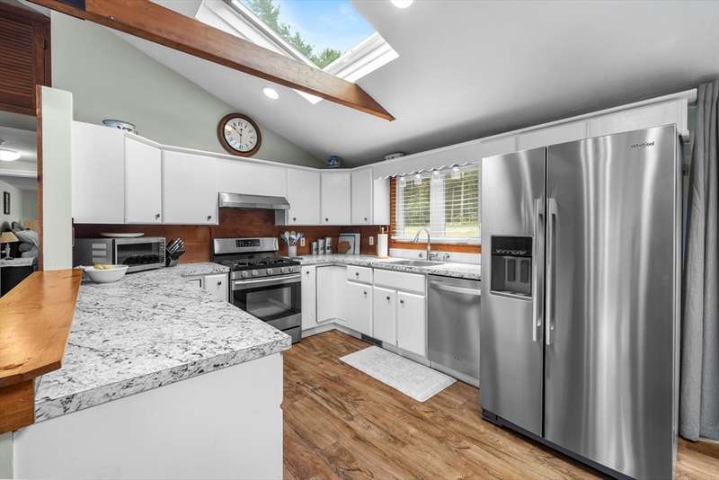 Welcome to this lovely home nestled on over an acre in a serene, sought after location! Thoughtfully updated throughout, this three bedroom, two bath immaculate property features numerous interior upgrades. Outside you will be impressed by the oversized deck perfect for entertaining. A spacious barn offers more than just extra storage; it could also be transformed into an inspiring space for artists or anyone with a creative passion. Additionally this property offers an oversized shed for storage. Ideally located within walking distance to the beloved Marshfield Hills General Store and with excellent commuter access, this property blends a relaxed vibe with the convenience of nearby amenities. Move in and enjoy.