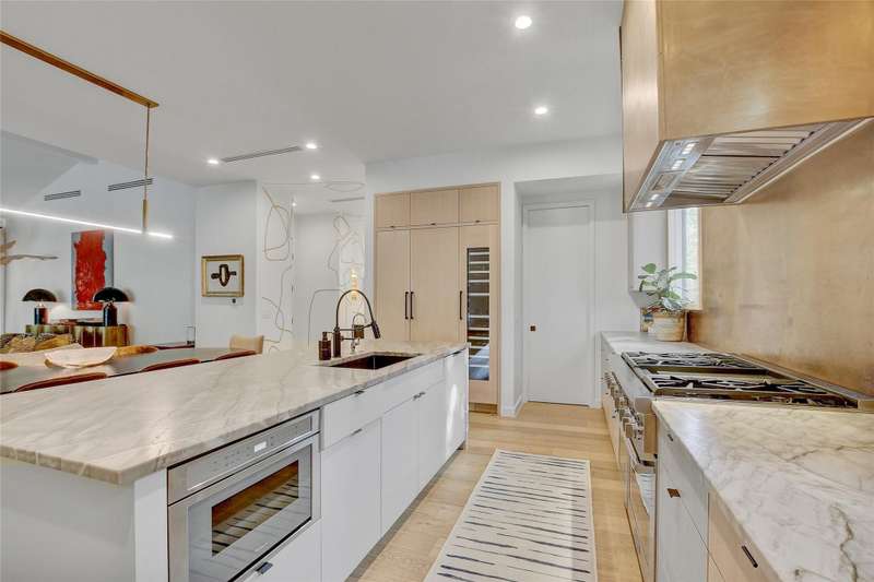 Welcome to your urban sanctuary in the heart of Austin’s coveted Zilker neighborhood. Built in 2021 by renowned South Austin builder McCabe Development, this thoughtfully designed 4-bedroom, 4-bathroom home spans over 2,800 square feet of eclectic charm. Step inside to discover bold wallpaper selections and curated accents that add personality and style throughout—creating spaces not just to live, but to thrive. Designed for entertaining, the open layout flows seamlessly from the kitchen to the dining and living areas. The kitchen comes equipped with a built-in refrigerator and wine fridge, complemented by matte gray quartz countertops, warm light wood cabinetry, and a stylish pop of the metallic gold finish that gives it an edgy yet sophisticated feel. Expansive multi-panel sliding doors open to a backyard framed by majestic magnolia trees, offering privacy and serenity. The backyard features a large covered patio, fully equipped outdoor kitchen, and pool with waterfall, creating a true entertainer’s oasis. The primary suite, located on the main level, features a spacious walk-in closet and a luxurious ensuite bathroom with a double vanity and massive steam shower. A private door leads directly from the primary bath to a secluded patio with a hot tub, offering the ultimate in relaxation. The location couldn’t be better—this home is walking distance to Zilker Elementary and just around the corner from the endless dining, shopping, and entertainment options of South Lamar, all nestled within a vibrant, family-friendly neighborhood. This is more than just a home—it’s a space built to inspire, where comfort meets creativity in the heart of Austin, TX.