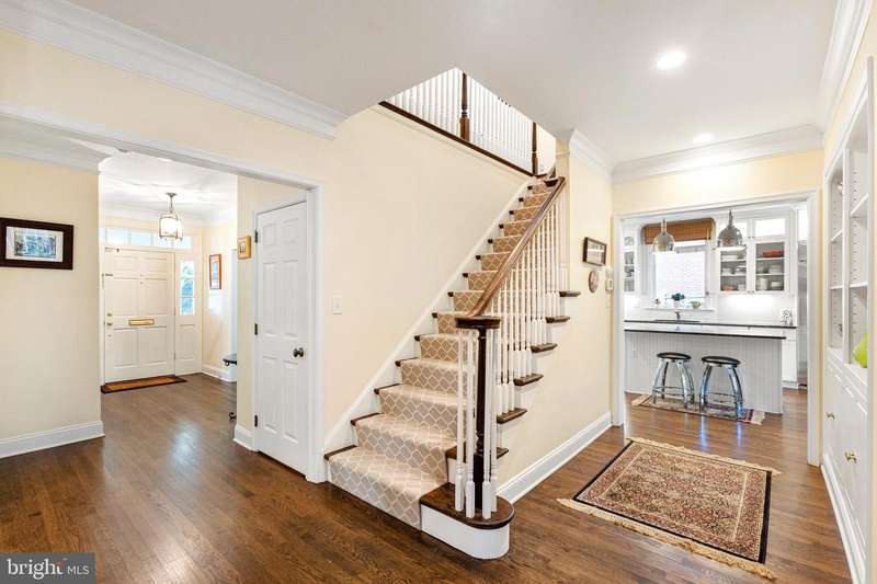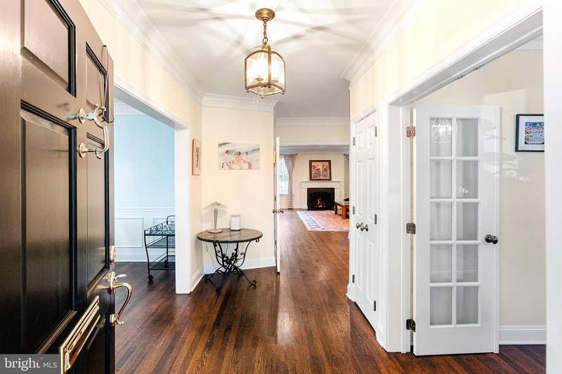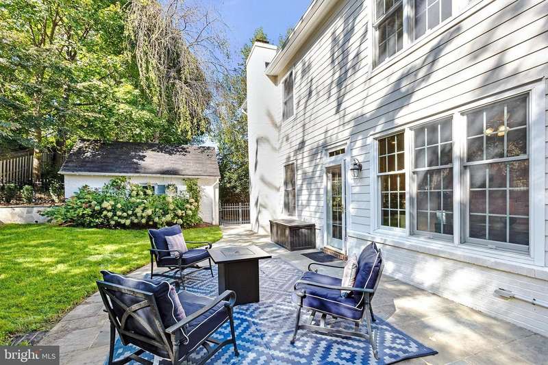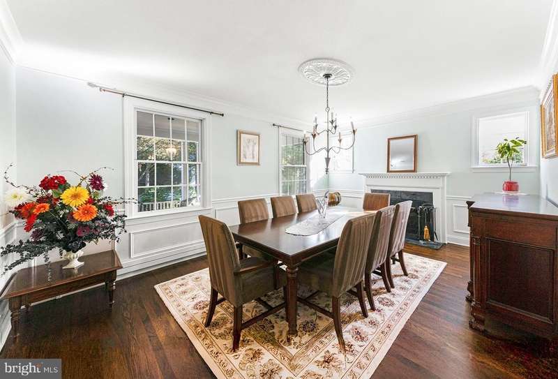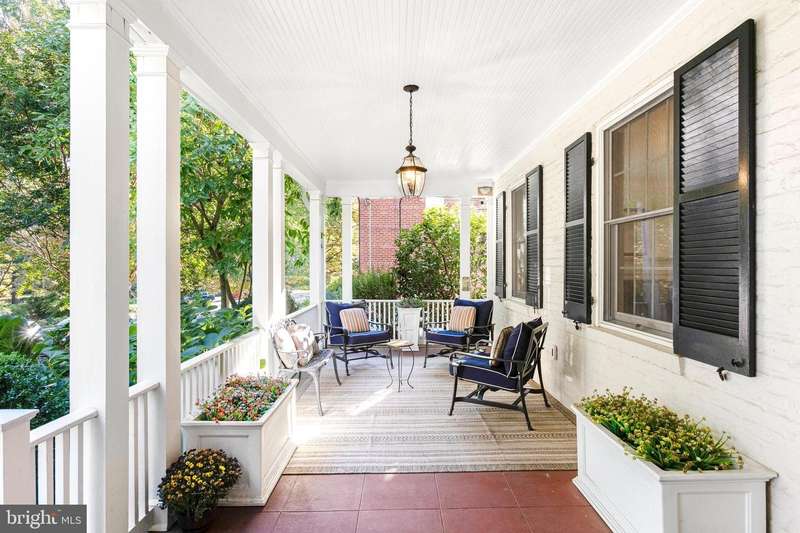 Welcome to this sophisticated and elegant residence, ideally situated in the heart of the Town of Chevy Chase. Designed with exquisite amenities and timeless appeal, this home seamlessly blends everyday comfort with graceful entertaining. The enchanting front porch makes a striking first impression and offers the perfect venue for family and friends to gather. The main level showcases a thoughtful, flowing layout with beautifully appointed spaces, including a gracious great room with fireplace, a spacious dining room with a wood-burning fireplace, and a private home office/library with custom built-ins-an elegant setting for focused work or quiet retreat. The chef's kitchen, complete with a sun-filled breakfast area, overlooks the back patio and professionally landscaped gardens, creating a delightful backdrop for al fresco dining and refined entertaining. The second floor features four generously sized bedrooms, three full baths, and walk-in closets, offering luxurious comfort and convenience for family and guests alike. The fully finished lower level provides additional living space with separate access to the backyard-ideal for a recreation area, home gym, or guest suite. The rear grounds, with a flagstone patio and lush landscaping, offer a serene private oasis for everyday enjoyment. A private driveway with ample off-street parking and a detached one-car garage completes this exceptional property-delivering elegance, comfort, and practicality in one of the area's most coveted locations. Enjoy the unrivaled convenience and exceptional community services of the Town of Chevy Chase's ""close-in living""Â? lifestyle, just minutes from the Bethesda Red Line Metro, downtown Bethesda's vibrant dining and shopping scene, and the charming boutiques of Friendship Heights. Top-rated schools, verdant neighborhood parks, the Lawton Community Center, and the scenic Capital Crescent Trail are all nearby, as is the highly anticipated redevelopment of the historic Farm Women's Market. (Note: If desired, there's easy conversion potential for a main level bedroom suite with level access off the driveway,)
