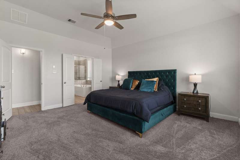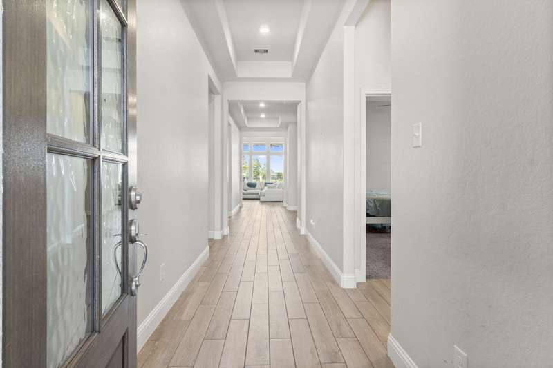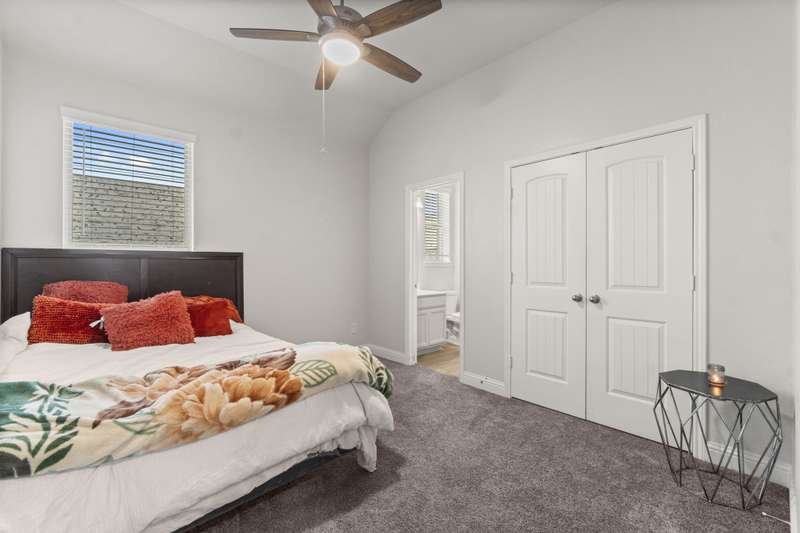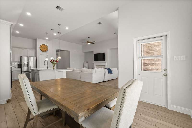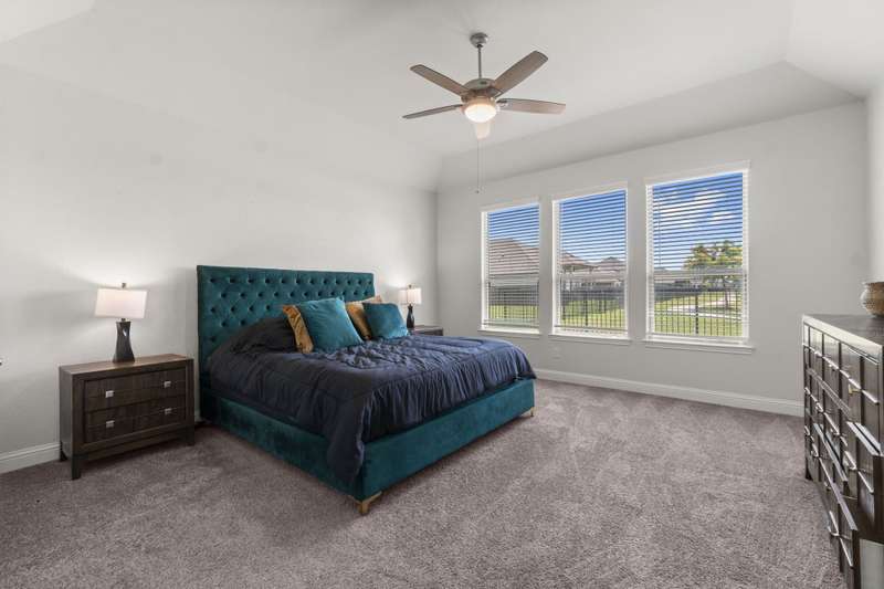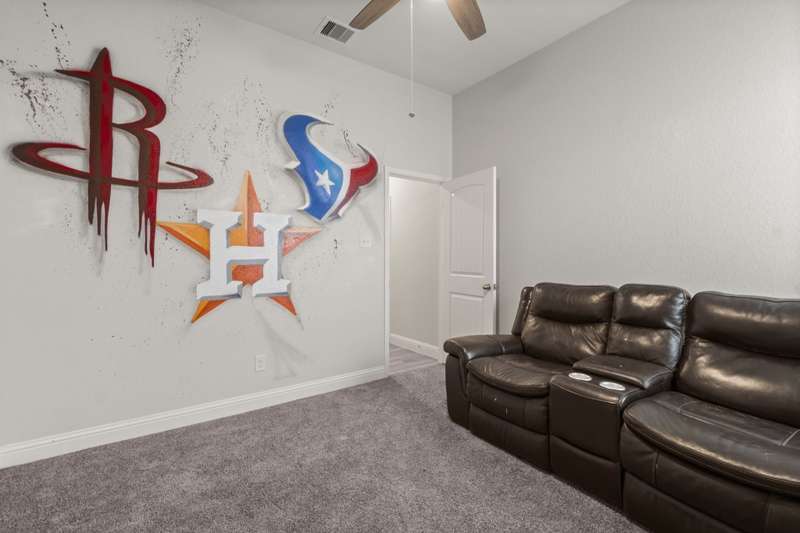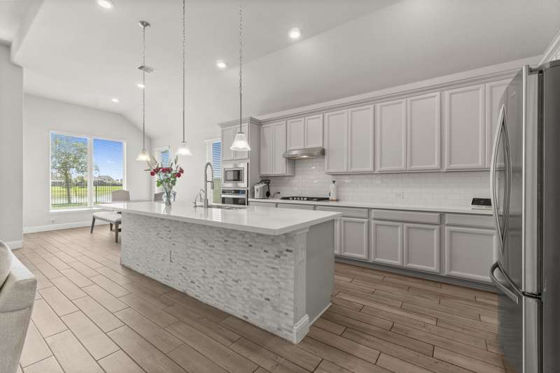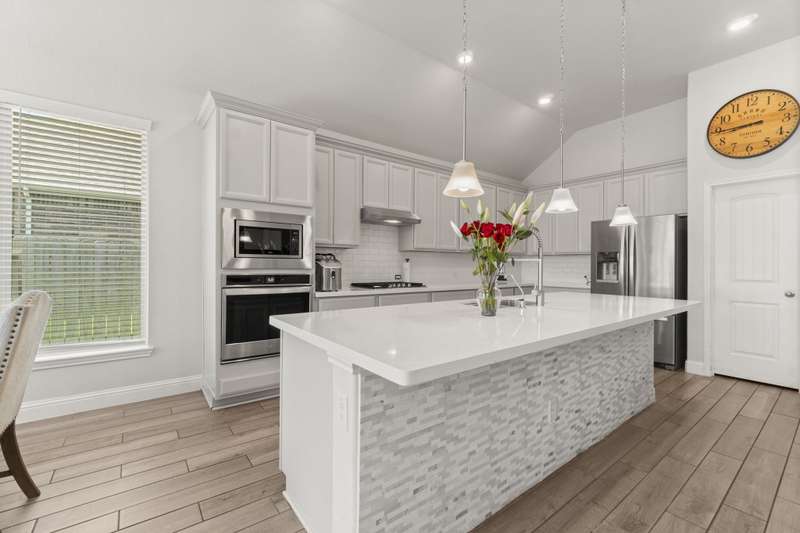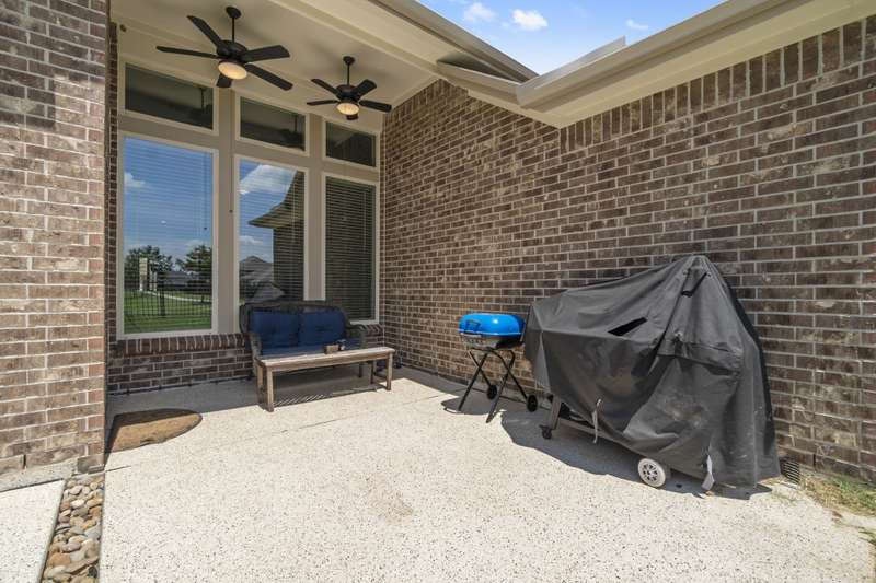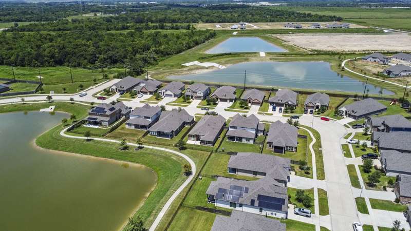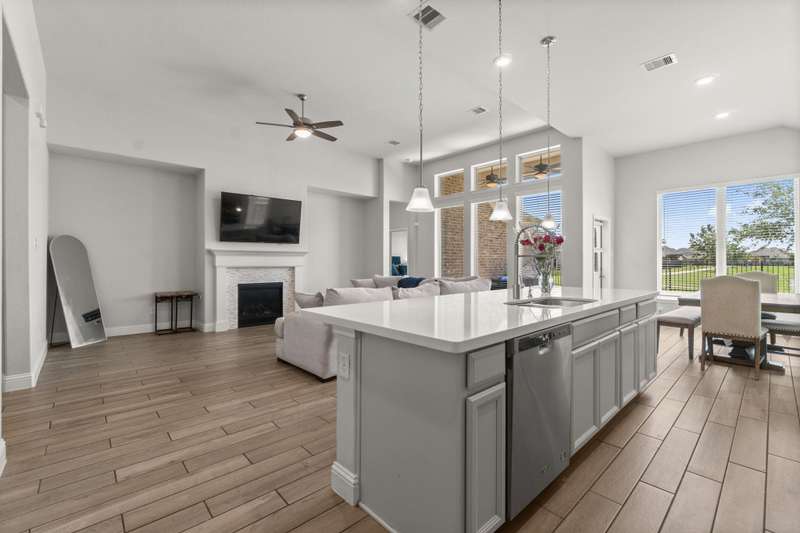 One-of-a-kind floor plan in Bluewater Lakes! This 4-bed, 3.5-bath single-story stunner backs to a serene lake and blends comfort with custom detail. Built in 2021, it features soaring vaulted ceilings, an open layout with a fireplace, and a flexible bonus room ideal for media, play, or work. The chef's kitchen impresses with a large island, breakfast bar, and a full appliance package--fridge, washer, and dryer included! The lakeside primary suite offers a spa-like bath and oversized walk-in closet. A secondary bedroom with a private bath is perfect for guests or multigenerational living. Storm shutters installed and builder warranties still active for peace of mind. Community pools, trails, and top-rated Alvin ISD schools. Minutes to Pearland Town Center, H-E-B, and Hwy 288.