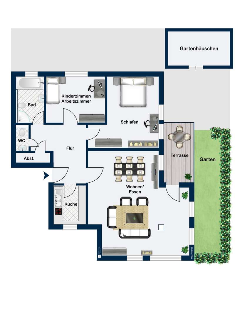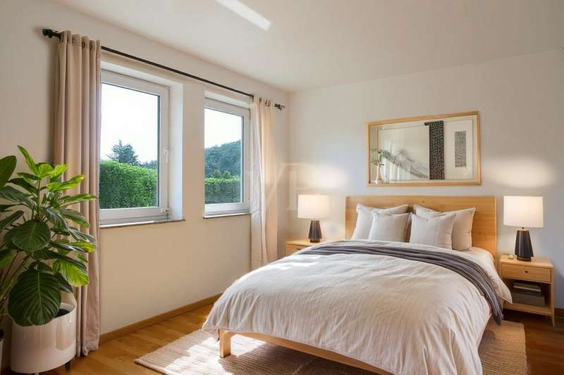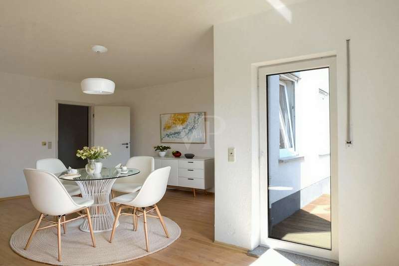 This well-kept 3-room apartment in the Wallbach district of Hünstetten offers you relaxing living in a quiet, natural environment. The apartment is located on the first floor of a 5-party house and is ideal for singles, couples, small families, senior citizens or investors. As you enter the apartment, you are greeted by a spacious hallway with ample space for a wardrobe. To the right is the kitchen with fitted units and all the necessary electrical appliances. The large living room impresses with a wide window front that spoils you with plenty of sun in the morning. From here you have direct access to the terrace, which has a small, low-maintenance garden area that invites you to relax outdoors. A small garden shed for garden furniture or equipment serves as a replacement for a cellar room. Two further rooms offer flexible usage options - as a bedroom, children's room or study. The brightly tiled daylight bathroom is equipped with a bathtub and shower so that you can start or end your day in a relaxed manner. There is also a separate guest WC and a storage room in the apartment, which offers additional storage space. Residents also have access to a communal laundry room in the adjoining basement. You can park your vehicles conveniently in the parking spaces located directly next to the building. The apartment is located in a quiet residential area on the outskirts of Wallbach, surrounded by fields, meadows and nature. This location combines idyllic living in the countryside with excellent connections. The A3 highway can be reached in just a few minutes and provides quick connections in all directions. Wallbach itself offers a well-developed infrastructure with a supermarket, bakery, medical care and a reliable bus service. Further extensive shopping and leisure facilities can be found in the town of Idstein, just ten minutes away by car - there you will find numerous shopping facilities, a wide range of restaurants, cultural offerings, a comprehensive medical care network, schools and a rail link to Wiesbaden and Frankfurt. Enjoy the peace and beauty of nature - surrounded by fields, forests and a stream, which will make your new home a real oasis of well-being. We look forward to your call!