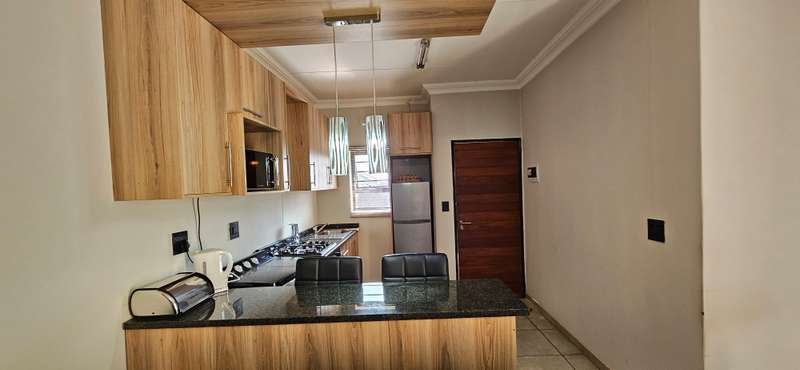 This standalone unit is in pristine condition and offers an open plan lounge and kitchen with granite tops, a gas hob, space for your washing machine and a breakfast nook. There are 2 bedrooms with built in cupboards and 1 bathroom with a bath, handshower, toilet and basin. A lovely private and pet friendly garden is the ideal retreat after a long day. Ample open and secure parking within a access controlled complex. Situated close to to amenities with easy access to main roads as well. Make this yours today - Call me now to arrange a viewing!!!