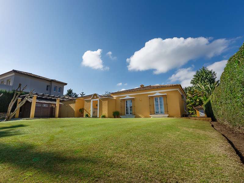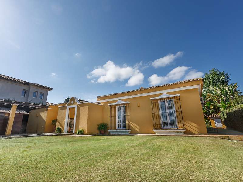 Charming Andalusian villa in Sotogrande Costa, Zone B, with garden and private pool Discover this cozy single-storey home in Sotogrande Costa, perfect both as a year-round residence and as a holiday retreat in one of the most exclusive destinations on the Costa del Sol. With a 1,100 m² plot and 218 m² built, this property combines comfort, Andalusian style and a private, tranquil setting. Upon entering, you are welcomed by a spacious front garden with a covered parking area, leading to the heart of the house: a delightful Andalusian patio that brings light and freshness. The single-level layout is ideal for those seeking convenience and long-term comfort. The renovated and very functional kitchen features a laundry area and direct access to the patio. The bright living room with fireplace opens onto the porch and garden, creating the perfect space for family gatherings. The night area offers three bedrooms and three bathrooms: the master bedroom with en-suite bathroom and two additional bedrooms sharing a full bathroom. The house was refurbished a few years ago, with new floors, windows, and a fully equipped kitchen with Smeg appliances. The bathrooms remain the only part pending modernization. Every room is equipped with air conditioning (hot/cold splits). Outside, the property boasts a beautiful mature garden with a private swimming pool, a large covered terrace, outdoor dining area, and barbecue with outdoor kitchen, ideal for long summer evenings. The generous plot also allows for further construction, making this home an excellent investment opportunity in Sotogrande. A villa full of charm, in immaculate condition, comfortable and ready to move into. Call us today to arrange your visit – you’ll fall in love.