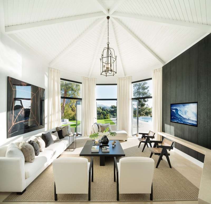 Nestled in the heart of Marbella’s prestigious Golf Valley, this remarkable residence is more than just a home—it’s an invitation to experience the very best of the Mediterranean lifestyle. Set on a generous, elevated plot, it commands sweeping views of the rolling golf course and the majestic mountains beyond, offering a daily backdrop of natural beauty and serenity. From the moment you arrive, every element of the property speaks to refined luxury. The architecture takes inspiration from timeless Andalusian heritage, blending traditional forms with a fresh, modern sensibility. At the heart of the home, a unique hexagonal structure creates an intimate living space, seamlessly flowing into open-plan dining and entertaining areas. The interiors are a masterclass in contemporary elegance—clean lines, neutral tones, and natural textures create a tranquil atmosphere that feels both sophisticated and effortlessly welcoming. Designed for both quiet moments and lively gatherings, the home o
