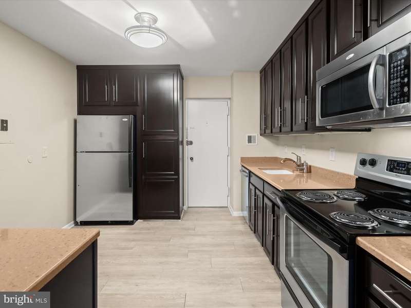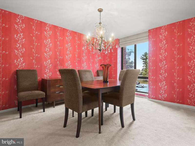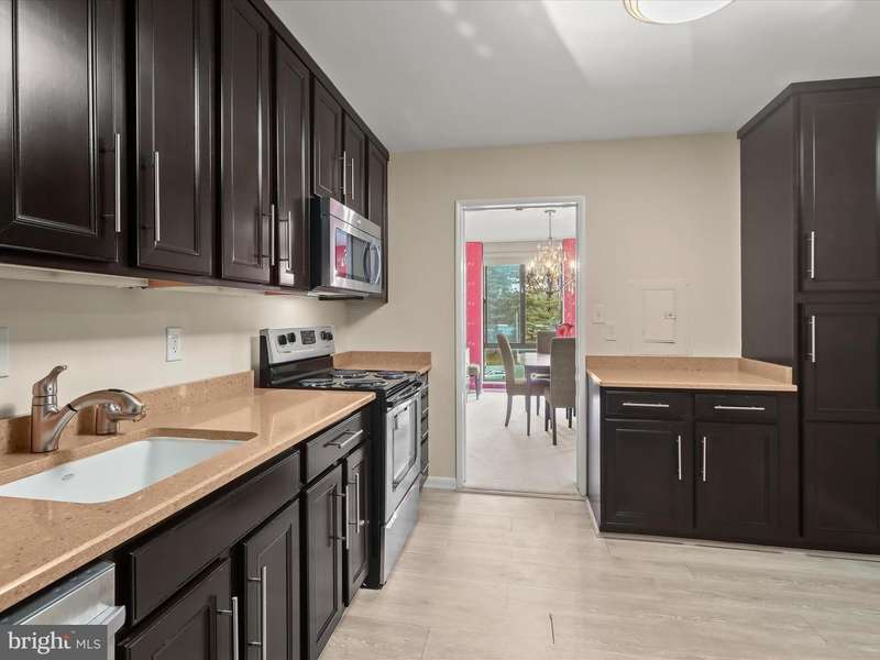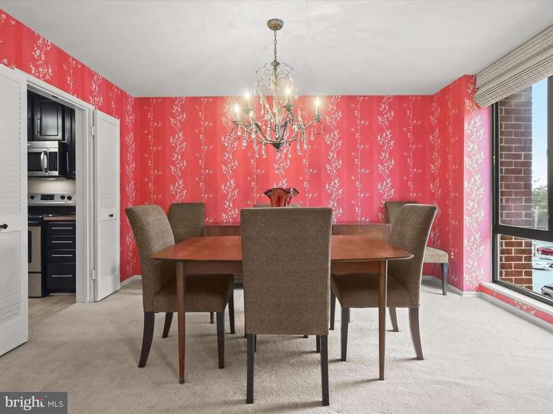 Introducing this spacious two bedroom, two bathroom condo on the fourth floor of the desirable 7 Slade building in the Suburban Oaks community. Inside, a generous living room opens to a private covered balcony through sliding glass doors, while an elegant formal dining room flows into a well-appointed kitchen featuring stainless steel appliances and 42-inch cabinets. The primary suite offers two walk-in closets, a vanity dressing area, and a private bathroom with a walk-in shower. A second bedroom includes built-ins, a walk-in closet, and easy access to the second full bathroom with a tub shower. Additional highlights include in-unit laundry, private gated parking, a doorman in the lobby, and an outdoor community pool. All utilities are included in the monthly condo fee. Ideally located in Pikesville with convenient access to 695, 795, shopping, dining, and public transit options. Some images have been virtually staged.
