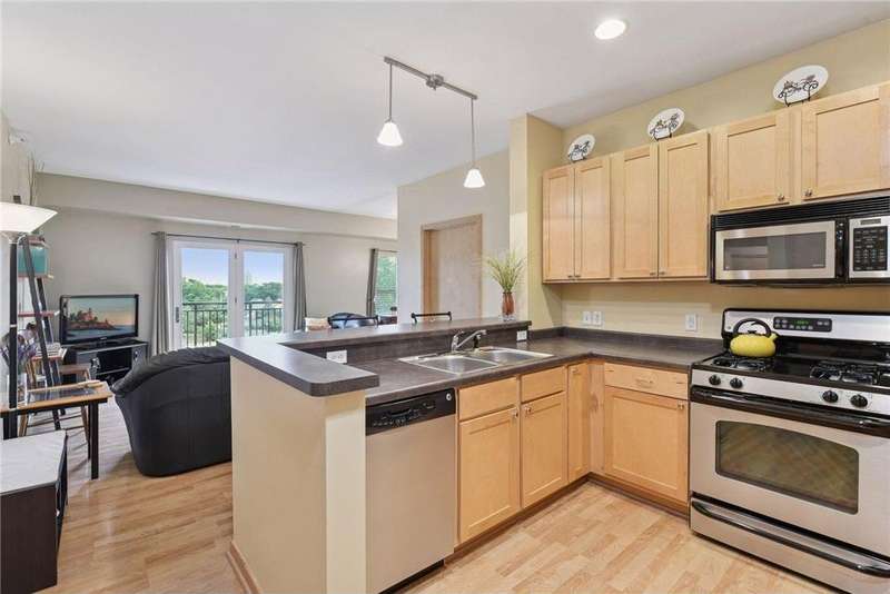 The one you've been waiting for: Move-in ready, top floor, views for miles, with the Midtown Greenway Trail just outside your door. Hop on the trail and instantly be connected to well over 100 miles of pathways. Take the private underground tunnel to the Midtown Global Market for retail, restaurants, and cultural events year-round. Enjoy the spacious floorplan, which can easily be flexed to provide private office/den space, or even a 2nd bedroom, if needed. In-unit laundry, underground secured parking, private balcony, and more. Pets and rentals allowed (ask your agent for details).