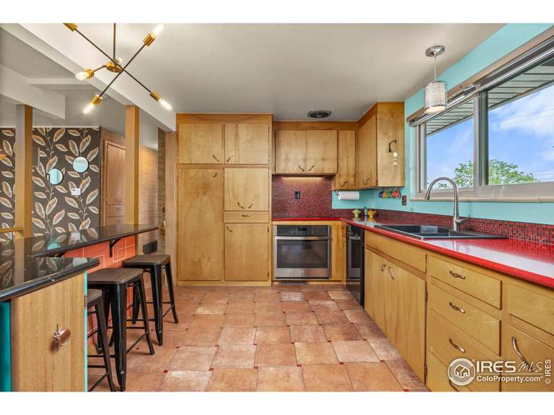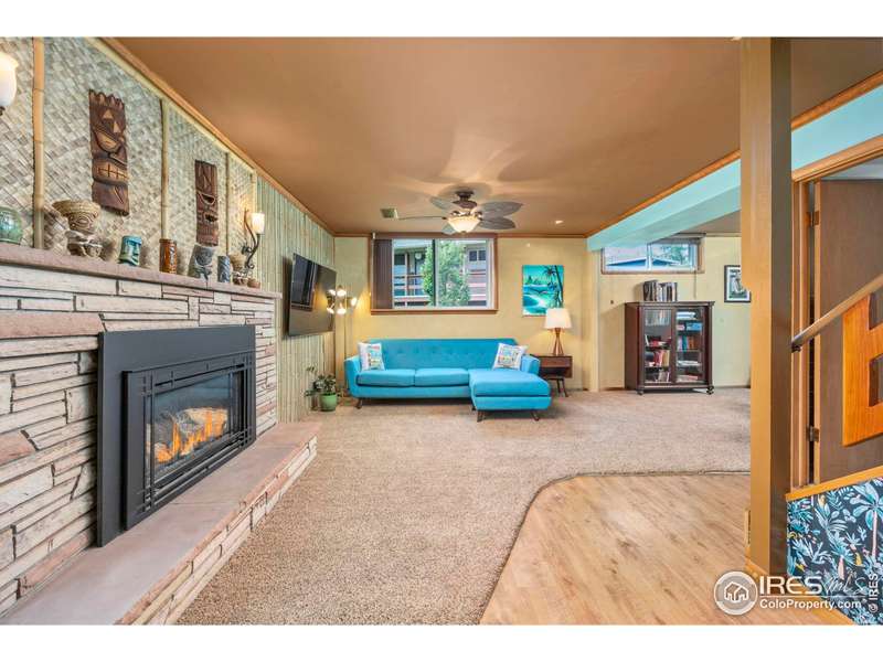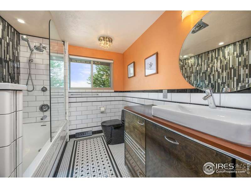 Welcome to this stunning Mid-Century Modern ranch with magnificent views and retro flare, seamlessly combining timeless character with luxurious modern updates. Key system updates in the last 5 years include the roof, furnace, A/C, windows, doors, fence, garage doors, gas fireplace insert - ensuring comfort and efficiency. No metro tax or HOA! The main floor is full of natural light, features amazing mountain views and 3 bedrooms. The custom covered deck off the dining area is the perfect place to kick back and relax while taking in the breathtaking views of the Front Range. Every bathroom has heated floors and has been stylishly remodeled from top to bottom. Venture downstairs and discover a unique tiki-room inspired living area complete with a full bar, cozy gas fireplace and access to the covered patio that overlooks the spacious fenced yard. Enjoy the convenience of a huge two-car garage, covered carport, separate RV/boat parking, and a large storage shed. Don't miss your chance to own this beautifully updated home that offers unmatched character, comfort, and views!