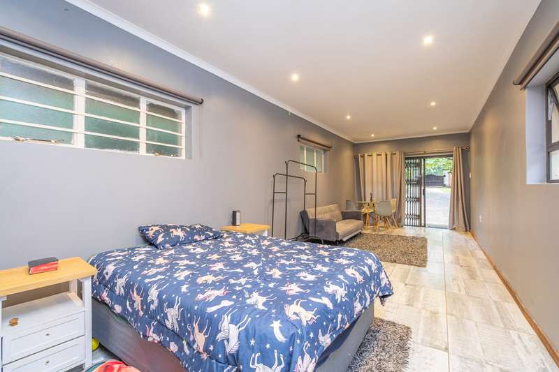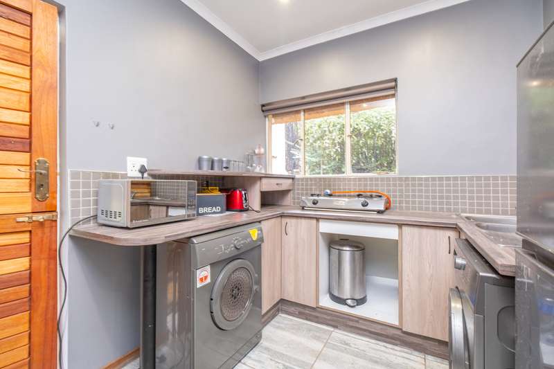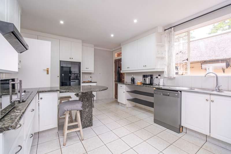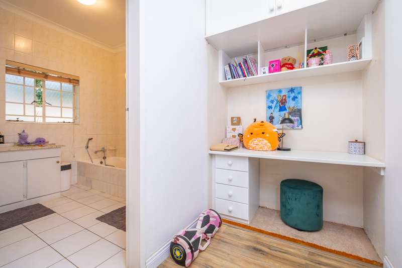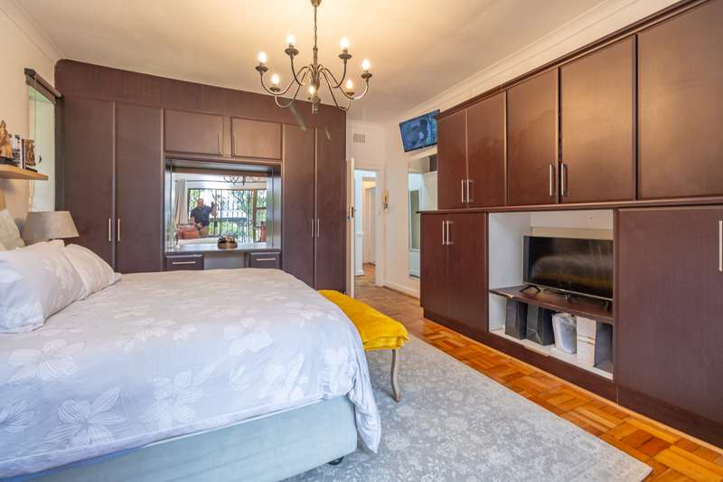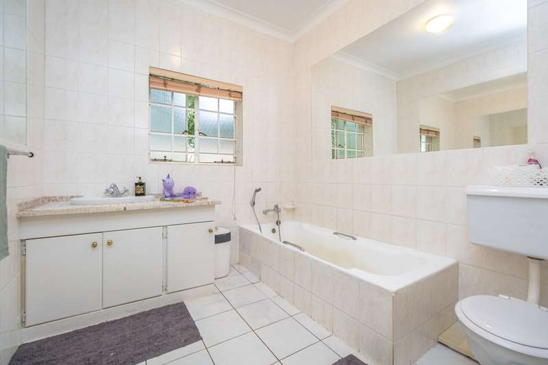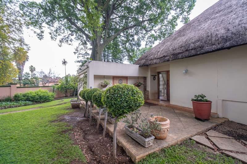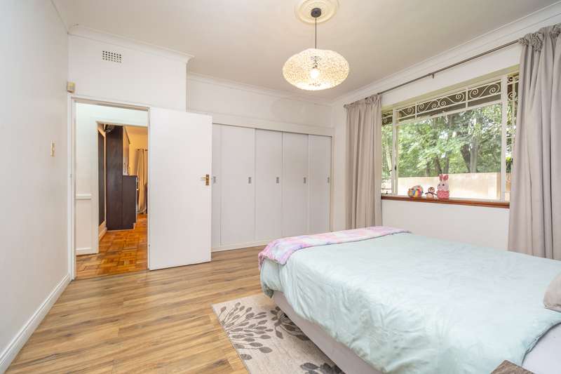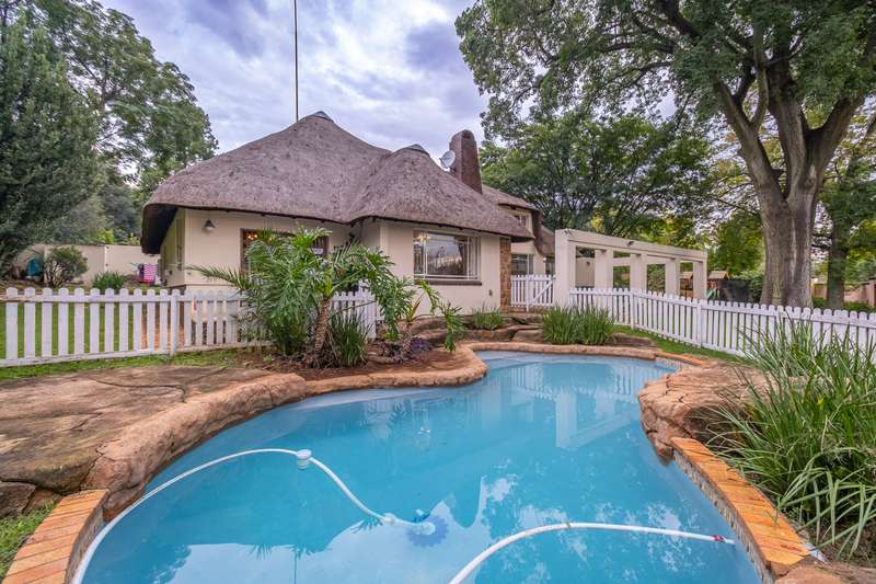 This inviting 2772sqm property is a hidden gem, offering endless potential for a new family to craft a dream home. Located on a corner stand, the home is structurally sound with ample space and is waiting for your inspiration to bring it back to its stunning glory. Key Features: 3 Spacious Bedrooms (Downstairs), Possible 4th Bedroom, Study, or 5th Bedroom upstairs, 2 Bathrooms (Main bathroom with separate toilet, en-suite bathroom in second bedroom), Large Kitchen with breakfast nook, stove top, extractor fan, space for 3 appliances, double fridge, eye-level oven, Family Room with garden views, Private Dining Room that opens to the kitchen and overlooks the front garden, Main Bedroom opens onto a patio overlooking the garden and pool, Third Bedroom with full view of the pool. Upstairs, you’ll find a potential 4th bedroom and a study or 5th bedroom. The plans also include provisions for an additional bathroom should you decide to expand. Additional Features: Staff Accommodation/Bachelor Flat: Spacious, with a bathroom (shower, basin, toilet), kitchen, space for appliances, and sliding doors opening onto the front garden. Borehole for water supply. Electric Fence, linked to Beagle Watch. CCTV Cameras, Beams, and Irrigation System. Prepaid Electricity. Fountain in the front garden. Lush Garden with a canopy of magnificent trees and a long driveway. Rates & Taxes – R1999 Stand size 2772sqm This property offers a peaceful retreat with the potential to make it truly your own. The combination of space, privacy, and excellent security features makes this home a rare find. Don't miss out on the opportunity to create something spectacular. Contact us today to schedule a viewing!